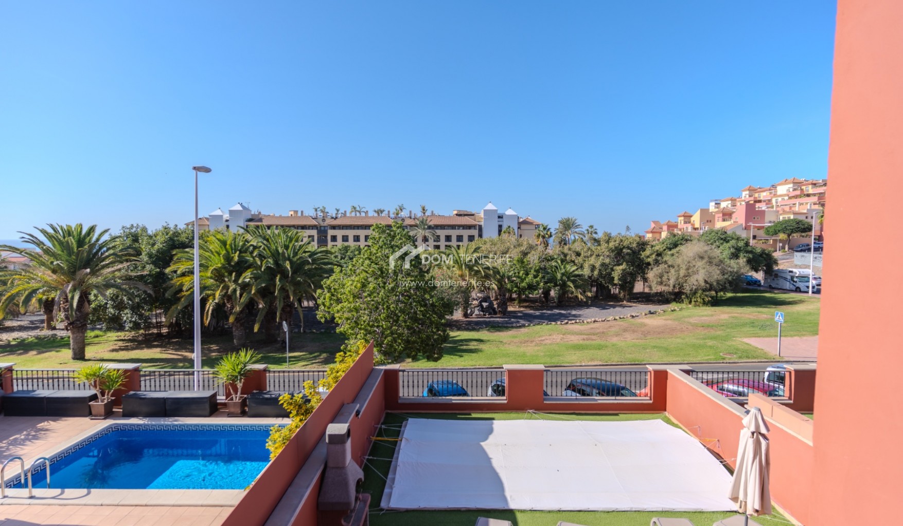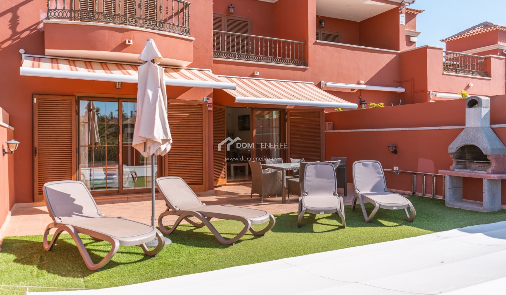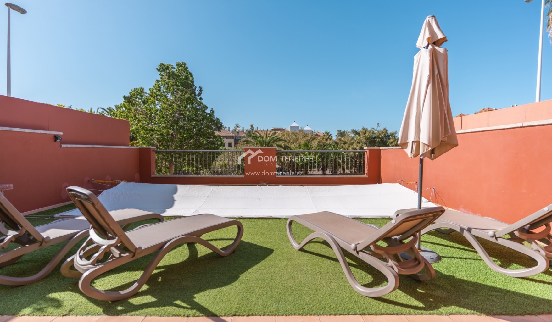 Private GaragenZum Verkauf steht eine elegante Familienvilla in der prestigeträchtigen Wohngegend El Duque, Costa Adeje, innerhalb der exklusiven Wohnanlage Villas del Duque, einer der begehrtesten Lagen im Süden Teneriffas. Mit einer gesamten Wohnfläche von 303 m² bietet diese großzügige Immobilie Komfort, Privatsphäre und eine erstklassige Lage nur 10 Gehminuten vom Playa del Duque, Einkaufszentren, Luxusgeschäften, Restaurants und allen wichtigen Dienstleistungen entfernt, in ruhiger Umgebung mit gepflegten Grünanlagen und zwei Gemeinschaftspools, davon einer beheizt. Die Villa erstreckt sich über drei Ebenen und verfügt über ein 77 m² großes Untergeschoss mit privater Garage für zwei bis drei Fahrzeuge, Abstellraum und zusätzlichem Stauraum sowie direktem Zugang zum Wohnbereich. Im Erdgeschoss befinden sich Eingangsbereich mit Einbauschränken, separate voll ausgestattete Küche mit Hauswirtschaftsraum, Wohn-Essbereich, Badezimmer mit Dusche und ein Schlafzimmer, mit direktem Zugang zu einer großen sonnigen Terrasse mit privatem Pool, Grillbereich und freiem Blick auf den Park. Im Obergeschoss liegen zwei weitere Schlafzimmer mit Einbauschränken, zwei Badezimmer davon eines en suite sowie private Terrassen, wobei das Hauptschlafzimmer Park- und Teilmeerblick bietet. Eine ideale Immobilie als Hauptwohnsitz, Zweitwohnsitz oder hochwertige Investition in Costa Adeje. DOM Tenerife Real Estate – Buy safely.