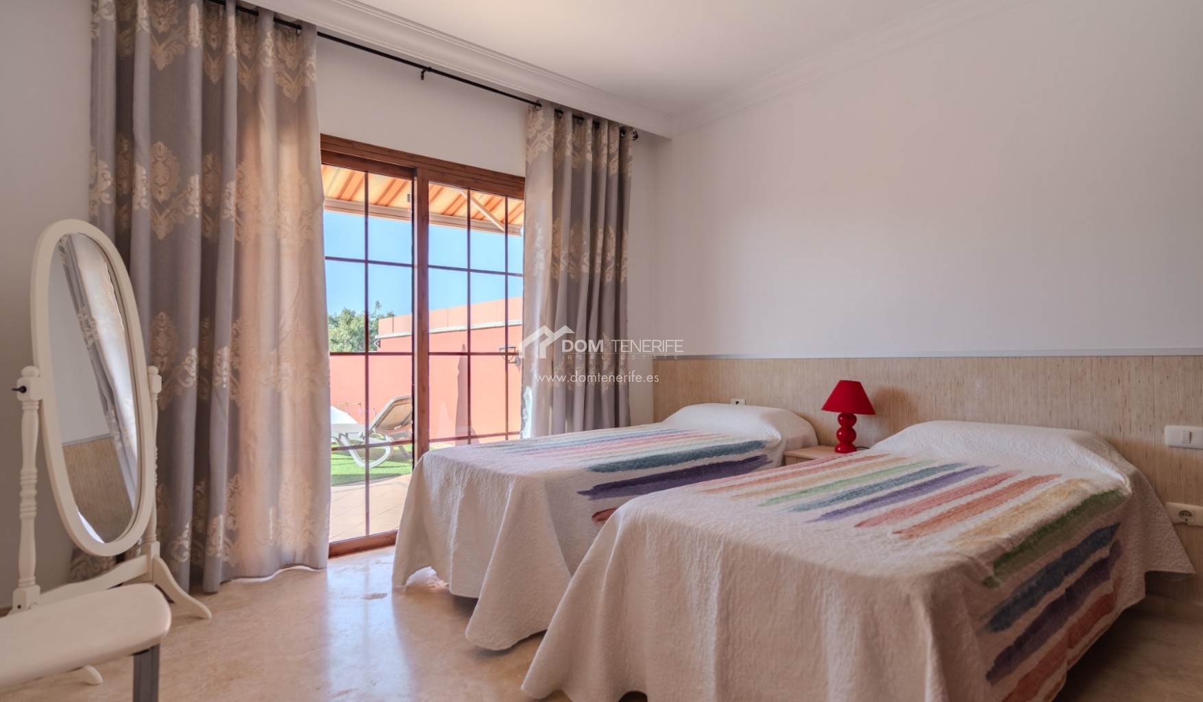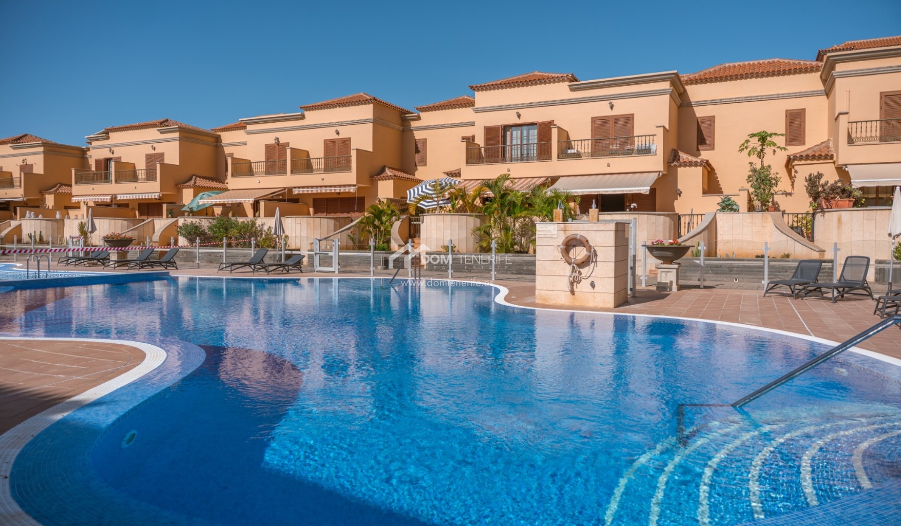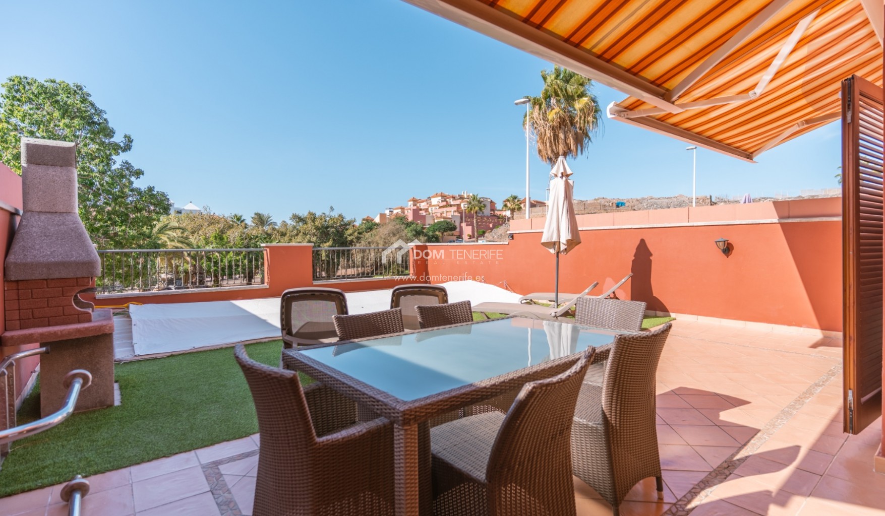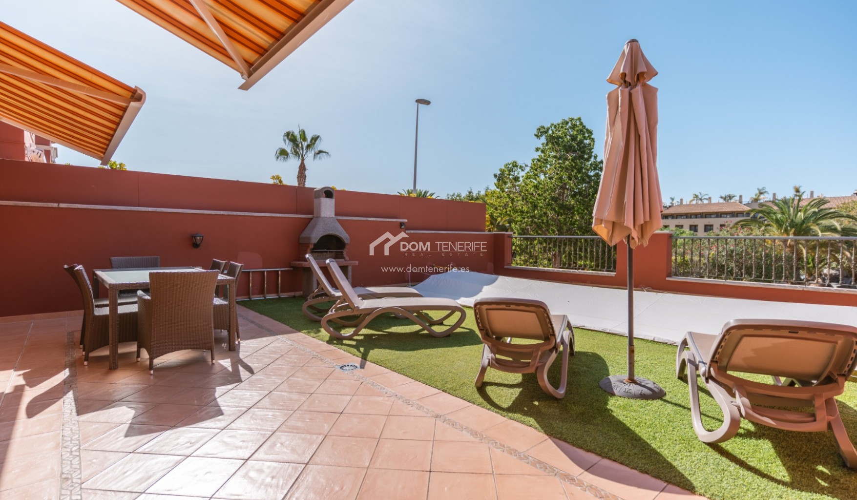 Private GaragenZum Verkauf steht eine elegante Familienvilla in der prestigeträchtigen Wohngegend El Duque, Costa Adeje, innerhalb der exklusiven Wohnanlage Villas del Duque, einer der begehrtesten Lagen im Süden Teneriffas. Mit einer gesamten Wohnfläche von 303 m² bietet diese großzügige Immobilie Komfort, Privatsphäre und eine erstklassige Lage nur 10 Gehminuten vom Playa del Duque, Einkaufszentren, Luxusgeschäften, Restaurants und allen wichtigen Dienstleistungen entfernt, in ruhiger Umgebung mit gepflegten Grünanlagen und zwei Gemeinschaftspools, davon einer beheizt. Die Villa erstreckt sich über drei Ebenen und verfügt über ein 77 m² großes Untergeschoss mit privater Garage für zwei bis drei Fahrzeuge, Abstellraum und zusätzlichem Stauraum sowie direktem Zugang zum Wohnbereich. Im Erdgeschoss befinden sich Eingangsbereich mit Einbauschränken, separate voll ausgestattete Küche mit Hauswirtschaftsraum, Wohn-Essbereich, Badezimmer mit Dusche und ein Schlafzimmer, mit direktem Zugang zu einer großen sonnigen Terrasse mit privatem Pool, Grillbereich und freiem Blick auf den Park. Im Obergeschoss liegen zwei weitere Schlafzimmer mit Einbauschränken, zwei Badezimmer davon eines en suite sowie private Terrassen, wobei das Hauptschlafzimmer Park- und Teilmeerblick bietet. Eine ideale Immobilie als Hauptwohnsitz, Zweitwohnsitz oder hochwertige Investition in Costa Adeje. DOM Tenerife Real Estate – Buy safely.