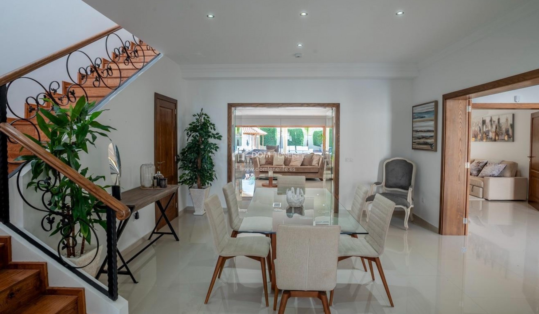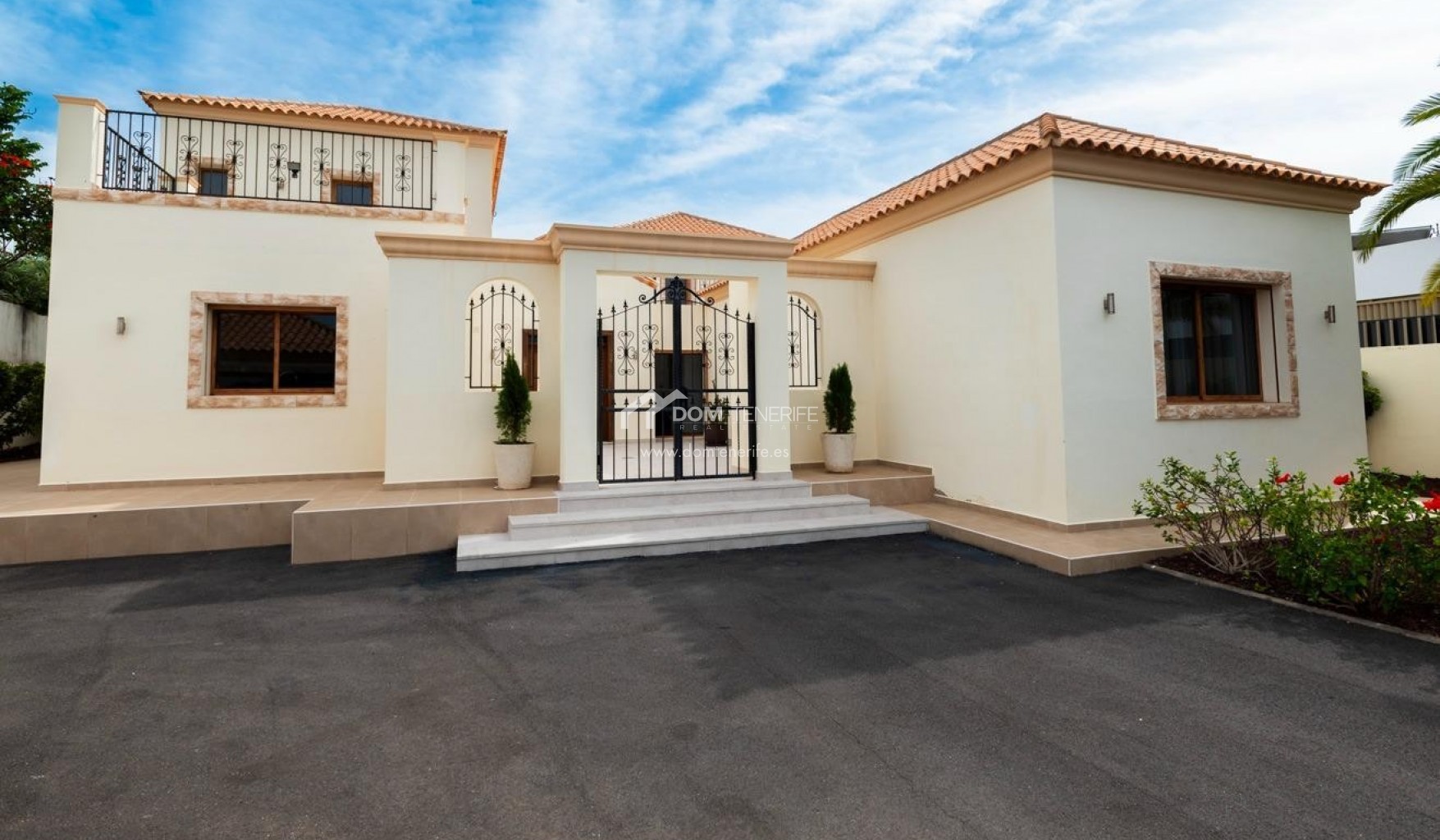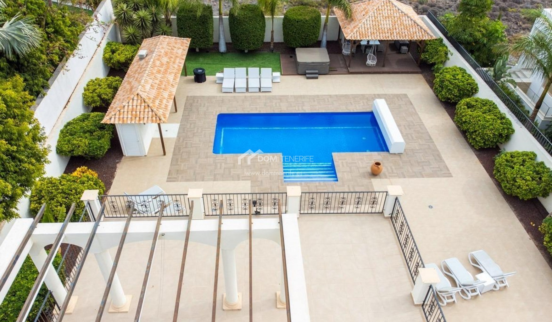 Private GaragenDom Tenerife Real Estate präsentiert ein wahrhaft traumhaftes Zuhause im Herzen von Südteneriffa. Wir freuen uns, Ihnen diese atemberaubende Luxusvilla im exklusiven Golfgebiet La Caleta in Costa Adeje anbieten zu können. Genießen Sie den spektakulären Panoramablick auf das Meer, die Schlucht Barranco del Inglés und die majestätische Felsformation Roque del Conde. Entdecken Sie dieses prächtige Anwesen auf einem ca. 2.500 m² großen Grundstück, wo Privatsphäre, Großzügigkeit und Komfort perfekt zu einem einzigartigen Ambiente verschmelzen. Die Villa erstreckt sich über zwei Etagen und verfügt über ein helles und geräumiges Wohn-Esszimmer, ideal für unvergessliche Momente, sowie eine moderne, voll ausgestattete separate Küche – ein Paradies für Feinschmecker. Vier elegante Schlafzimmer, alle mit eigenem Bad, bieten höchsten Komfort und absolute Privatsphäre. Die beeindruckende Master-Suite besticht durch ein großzügiges Ankleidezimmer und private Terrassen mit Panoramablick, die zum Genießen der Umgebung zu jeder Tageszeit einladen. Das Äußere ist schlichtweg außergewöhnlich: Ein sorgfältig angelegter Garten umgibt das gesamte Anwesen und wird durch einen großen Swimmingpool, einen Grillplatz, gemütliche Ruhezonen und einen entspannenden Whirlpool ergänzt – eine wahre private Oase. Die Villa liegt an der prestigeträchtigen Avenida de la Macaronesia und bietet eine hervorragende Anbindung an die Autobahn TF-1. La Caleta mit seinen Stränden, exklusiven Restaurants und internationalen Schulen ist nur wenige Minuten entfernt. Ein einzigartiges Anwesen, perfekt für alle, die Luxus, Exklusivität und eine hohe Lebensqualität auf Teneriffa suchen. Nutzen Sie diese Gelegenheit und machen Sie diese Villa zu Ihrem neuen Zuhause.