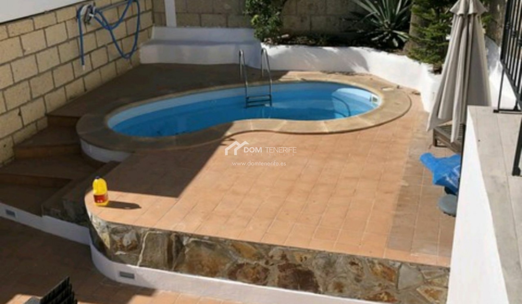 Private GaragenWillkommen in dieser charmanten Immobilie zum Verkauf, eine zweistöckige freistehende Villa im Dorf Chayofa, nur 5 Autominuten von Los Cristianos entfernt Das Haus hat ein Grundstück von 380 m2 und einen großen Außenbereich, 4 Schlafzimmer, 2 Bäder und 1 WC. Genießen Sie den privaten Pool auf dem Grundstück oder tauchen Sie ein in den Gemeinschaftspool, der auch beheizt ist! Die Villa verfügt außerdem über eine 42 m² große Garage, die sich ideal zum Abstellen Ihres Fahrzeugs eignet, sowie über einen Abstellraum für zusätzlichen Stauraum. Die Terrassen bieten Platz für Mahlzeiten im Freien oder zum Sonnenbaden. Diese Immobilie bietet ein erhebliches Potenzial für Erweiterungen und Renovierungen nach Ihren persönlichen Vorlieben. Es besteht die Möglichkeit, den größten privaten Pool zu bauen, da er über eine sehr großzügige Außenterrasse verfügt. Gelegen in einer ruhigen Wohngegend von Chayofa, ganz in der Nähe von allen Annehmlichkeiten. Ideal zum Wohnen, aber auch als Investition, da es sich in einem Gebiet mit hoher touristischer Nachfrage nach Miete befindet. DOM Teneriffa - sicher kaufen!