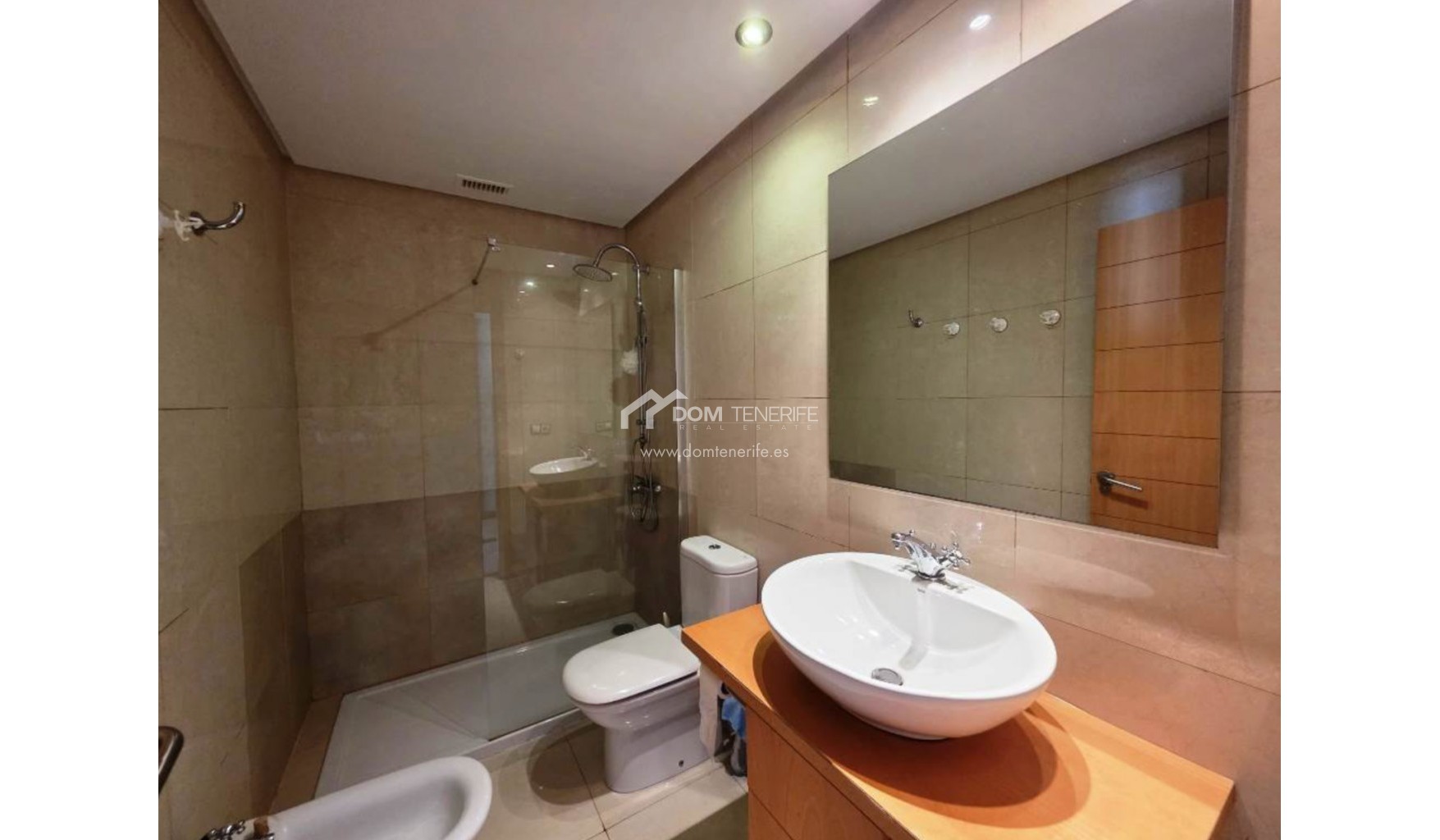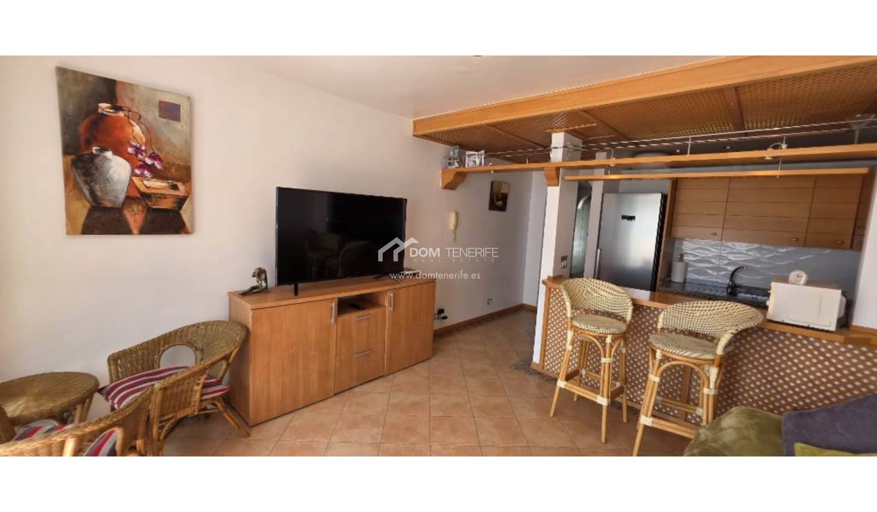GemeinschaftsparkplatzDOM Tenerife Real Estate präsentiert diese schöne 1-Zimmer-Wohnung im Erdgeschoss der exklusiven Anlage Adeje Paradise in Playa Paraíso. Die Immobilie mit einer Gesamtfläche von 79 m² zeichnet sich durch ihre Helligkeit und Geräumigkeit aus und bietet ein elegantes Wohnzimmer mit einer voll ausgestatteten offenen Küche, ein komfortables Doppelzimmer, einen Hauswirtschaftsraum mit Etagenbetten und ein modernes Badezimmer mit ebenerdiger Dusche. Von der großen Südterrasse aus genießt man einen schönen seitlichen Blick auf das Meer und den Pool. Die Wohnung erstreckt sich über eine Etage ohne Treppen und verfügt außerdem über einen privaten Garagenplatz und einen Abstellraum. Die Anlage verfügt über mehrere Swimmingpools, einen beheizten Gemeinschaftspool, einen 24-Stunden-Sicherheitsdienst und ein Bar-Restaurant. Eine ideale Option sowohl für das ganze Jahr als auch als Ferienresidenz oder rentable Investition im Süden Teneriffas. Eine Besichtigung wird empfohlen, um alle Vorzüge zu würdigen. DOM Tenerife - buy safely!