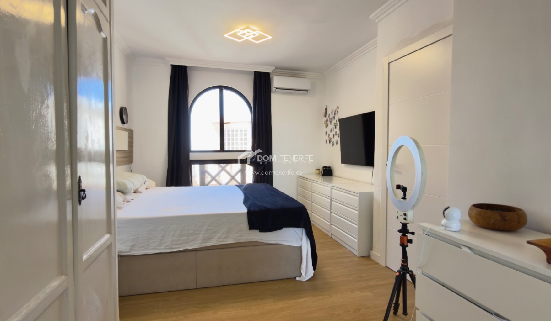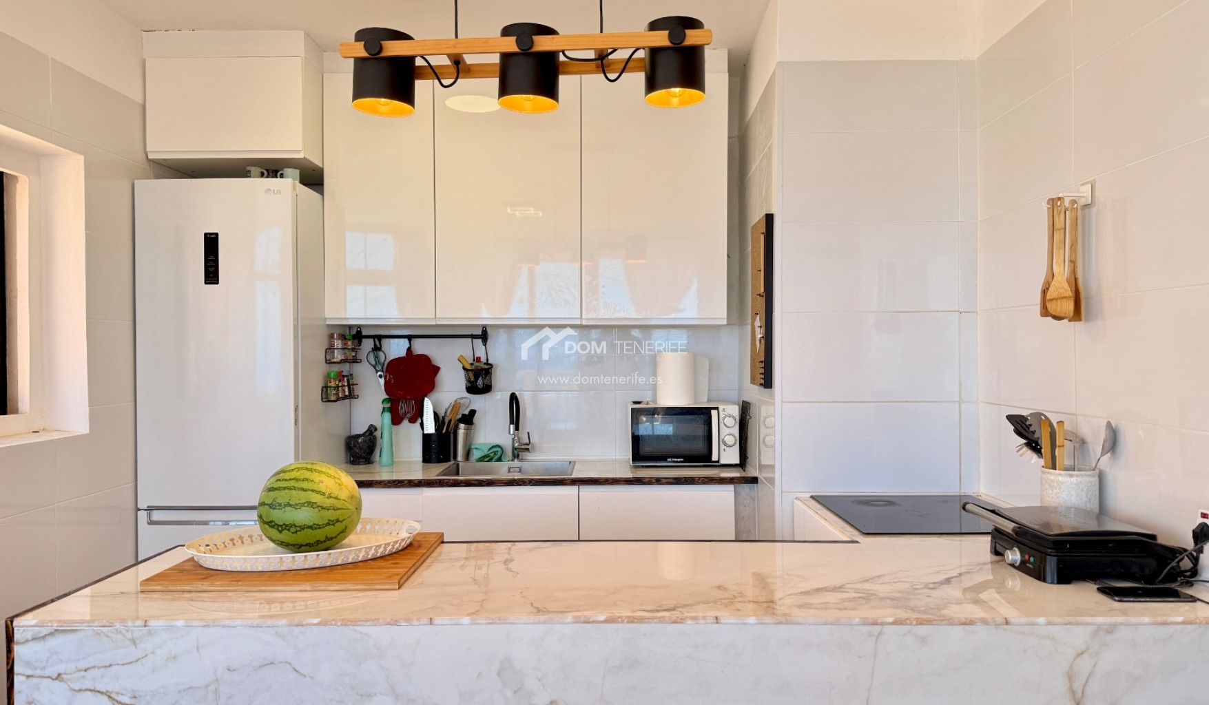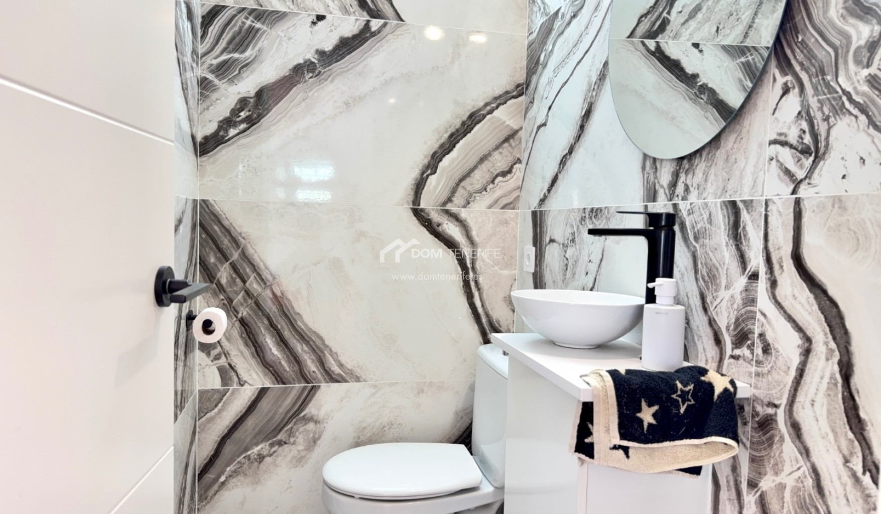 Private GaragenLuxus-Reihenhaus mit beeindruckendem Meerblick in der besten Lage im Süden Teneriffas. Diese außergewöhnliche Immobilie umfasst 130 m², davon 80 m² Wohnfläche und 50 m² Terrassen und Balkone. Die flexible Aufteilung ermöglicht die Nutzung als Einzelresidenz oder als zwei unabhängige Einheiten, die über eine private Außentreppe zugänglich sind. Das Erdgeschoss bietet zwei großzügige Schlafzimmer mit eigenen Bädern und großen Fenstern, die die Räume mit Tageslicht durchfluten, sowie direkten Zugang zu einer geräumigen Terrasse mit Blick auf die Küste. Die obere Etage verfügt über eine moderne Küche, ein helles Wohnzimmer mit Balkonzugang, ein Gäste-WC und einen Hauswirtschaftsraum mit Waschmaschine. Die Villa wurde kürzlich mit hochwertigen Materialien und Liebe zum Detail renoviert und verbindet Komfort, Eleganz und Privatsphäre. Ideal gelegen, nur wenige Gehminuten vom Siam Mall und Siam Park, wenige Minuten von den exklusivsten Stränden der Region und 15 Minuten vom Flughafen Teneriffa Süd entfernt. Die Gemeinschaft erlaubt eine Ferienvermietungslizenz (VV), wodurch die Immobilie sowohl als Privatresidenz als auch als Investition geeignet ist. Gemeinschaft: 120 €, IBI: 300 €.