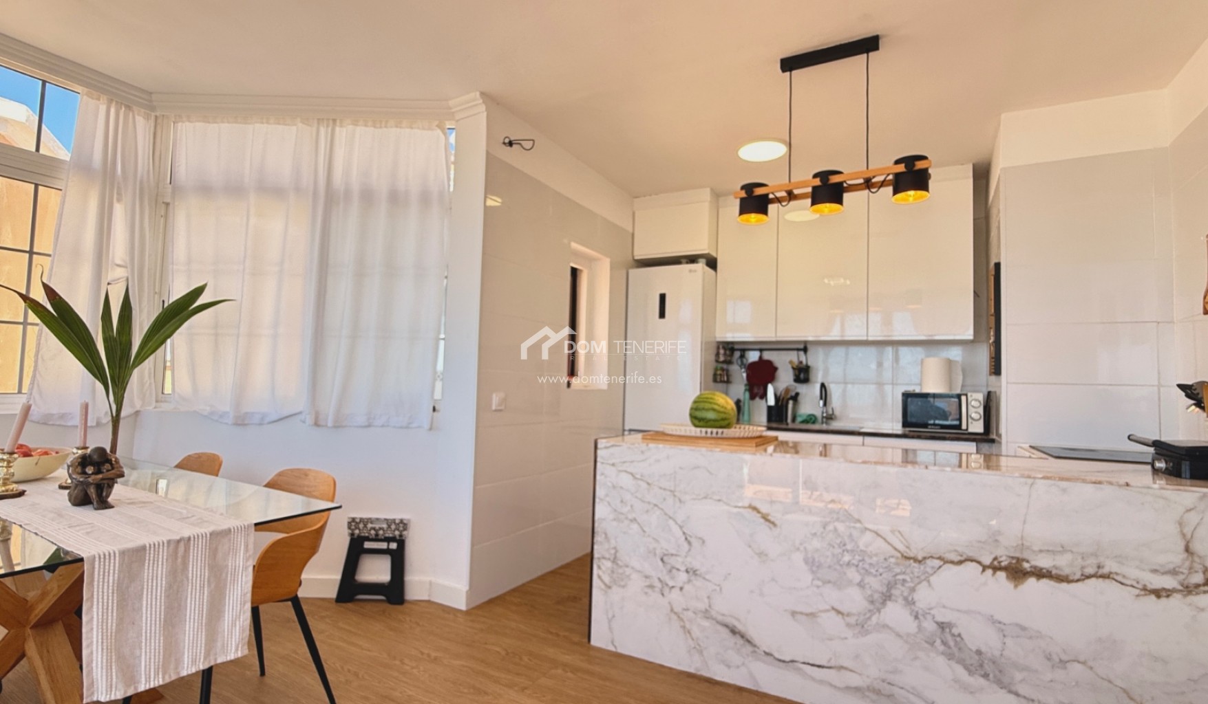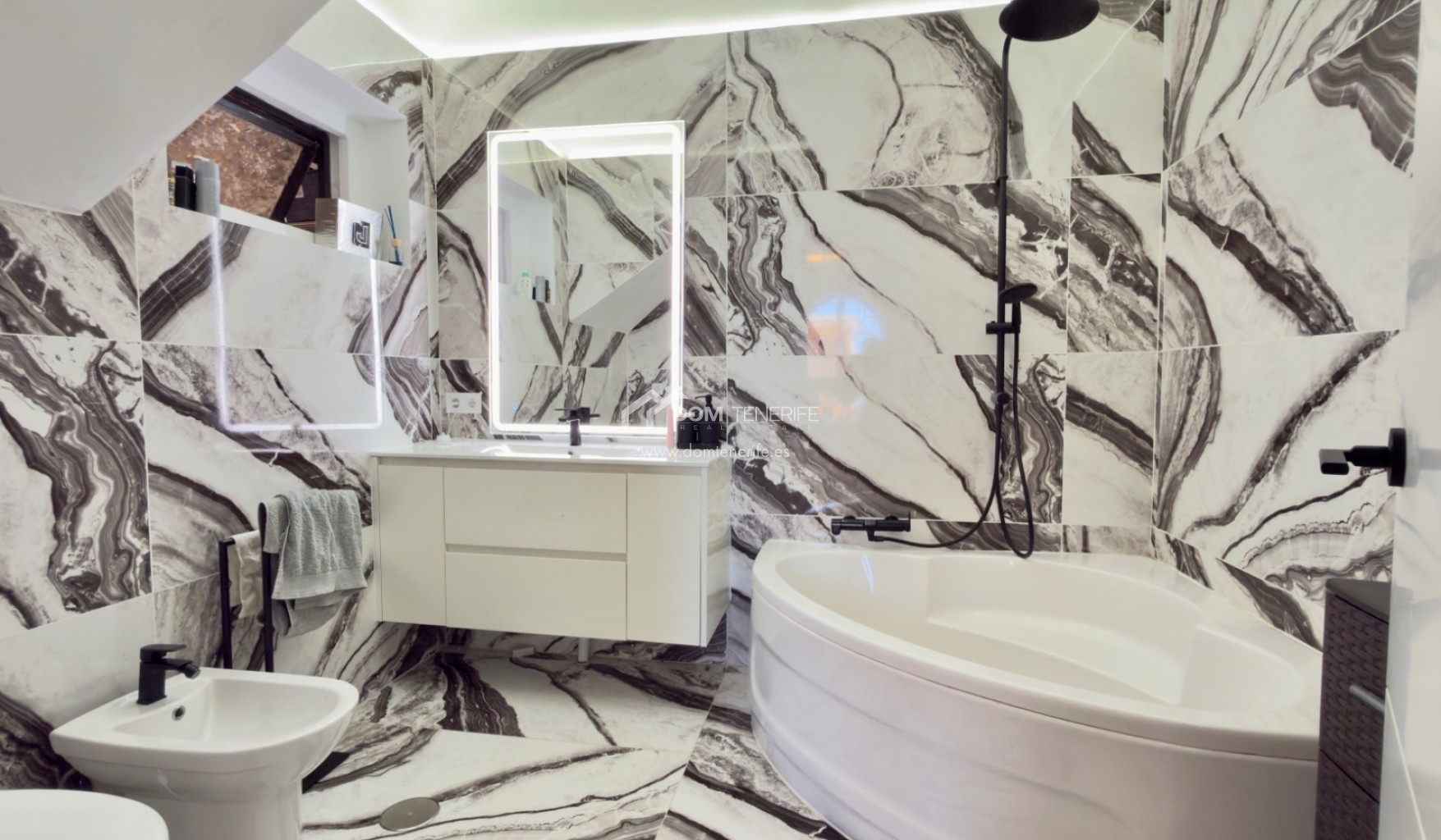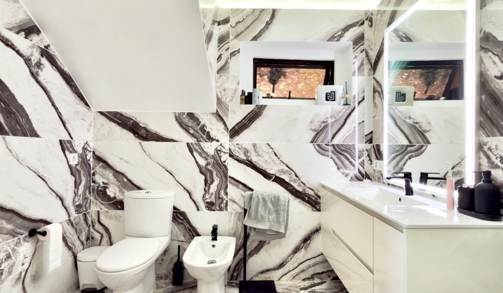 Private GaragenLuxus-Reihenhaus mit beeindruckendem Meerblick in der besten Lage im Süden Teneriffas. Diese außergewöhnliche Immobilie umfasst 130 m², davon 80 m² Wohnfläche und 50 m² Terrassen und Balkone. Die flexible Aufteilung ermöglicht die Nutzung als Einzelresidenz oder als zwei unabhängige Einheiten, die über eine private Außentreppe zugänglich sind. Das Erdgeschoss bietet zwei großzügige Schlafzimmer mit eigenen Bädern und großen Fenstern, die die Räume mit Tageslicht durchfluten, sowie direkten Zugang zu einer geräumigen Terrasse mit Blick auf die Küste. Die obere Etage verfügt über eine moderne Küche, ein helles Wohnzimmer mit Balkonzugang, ein Gäste-WC und einen Hauswirtschaftsraum mit Waschmaschine. Die Villa wurde kürzlich mit hochwertigen Materialien und Liebe zum Detail renoviert und verbindet Komfort, Eleganz und Privatsphäre. Ideal gelegen, nur wenige Gehminuten vom Siam Mall und Siam Park, wenige Minuten von den exklusivsten Stränden der Region und 15 Minuten vom Flughafen Teneriffa Süd entfernt. Die Gemeinschaft erlaubt eine Ferienvermietungslizenz (VV), wodurch die Immobilie sowohl als Privatresidenz als auch als Investition geeignet ist. Gemeinschaft: 120 €, IBI: 300 €.