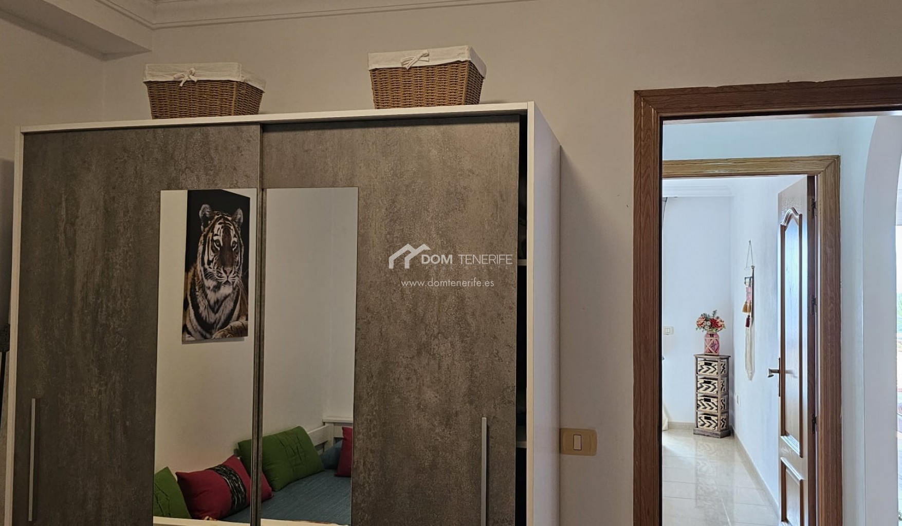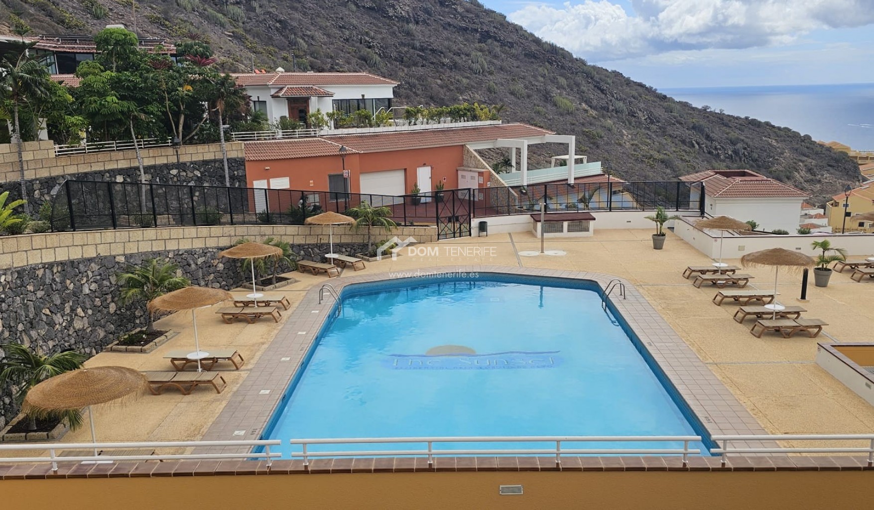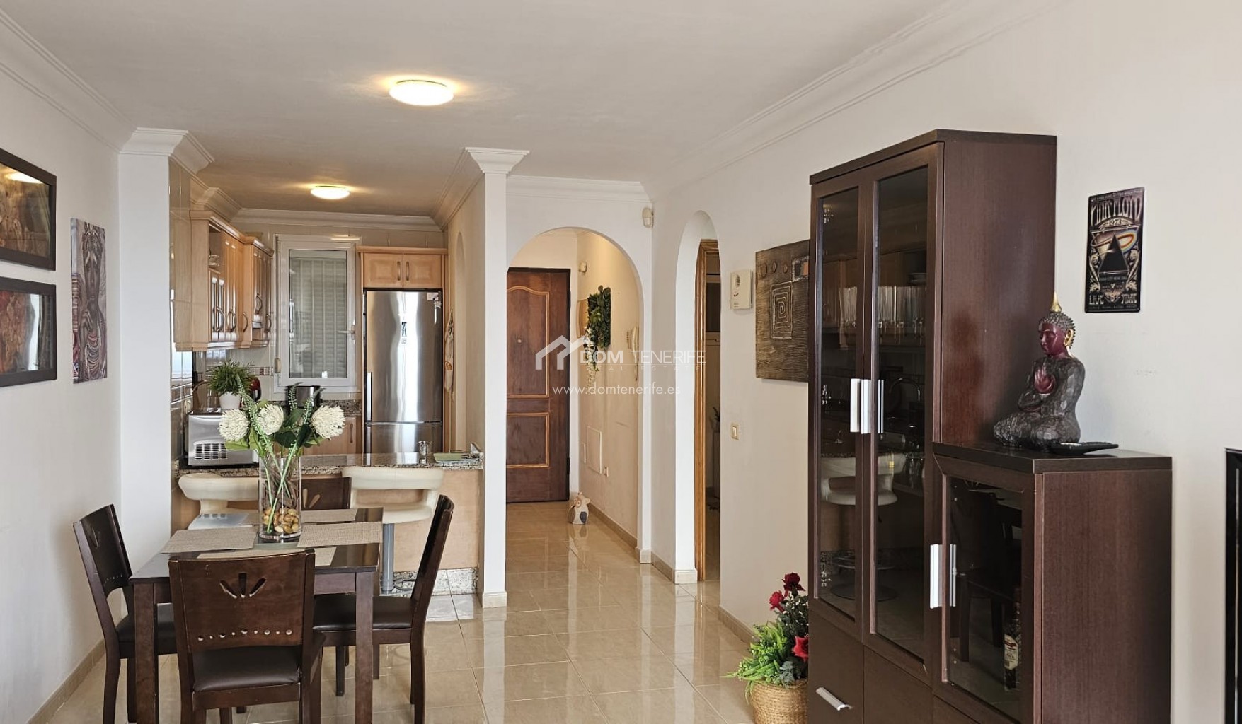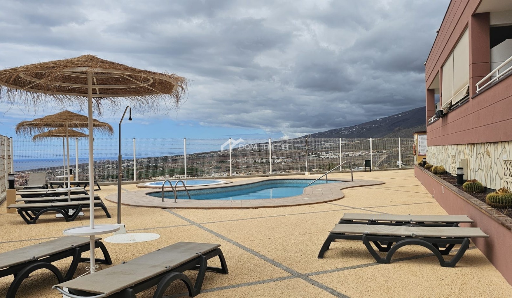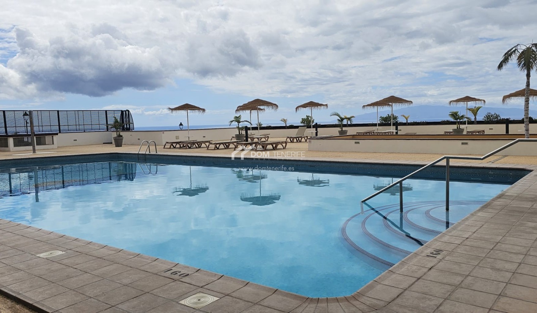 Private GaragenDom Tenerife Inmobiliaria präsentiert Ihnen diese helle Wohnung in der exklusiven Wohnanlage „The Sunset“ in Roque del Conde, nur wenige Schritte vom berühmten Strand Playa del Duque entfernt. Die makellos gepflegte und ruhige Anlage verfügt über drei Gemeinschaftspools, von denen einer beheizt ist und einen atemberaubenden Panoramablick auf das Meer bietet. Die Eckwohnung ist optimal geschnitten und verfügt über zwei Schlafzimmer mit Einbauschränken. Das Hauptschlafzimmer hat direkten Zugang zur großen Terrasse und verfügt über ein eigenes Bad mit Dusche. Die voll ausgestattete amerikanische Küche fügt sich funktional in den Raum ein. Vom geräumigen und hellen Wohn-Esszimmer aus gelangt man auf die herrliche Terrasse, von der aus man einen spektakulären Blick auf das Meer, die Insel La Gomera und die Berge genießen kann. Die Immobilie hat eine bebaute Fläche von 82 m² und eine Terrasse von 24 m². Als Mehrwert gehören eine 20 m² große geschlossene Garage im Untergeschoss des Gebäudes und ein 10 m² großer Abstellraum dazu. Die Wohnung ist teilweise renoviert und wird möbliert und dekoriert verkauft. Eine einmalige Gelegenheit, die Ruhe, den Komfort und die beste Aussicht im Süden Teneriffas zu genießen!