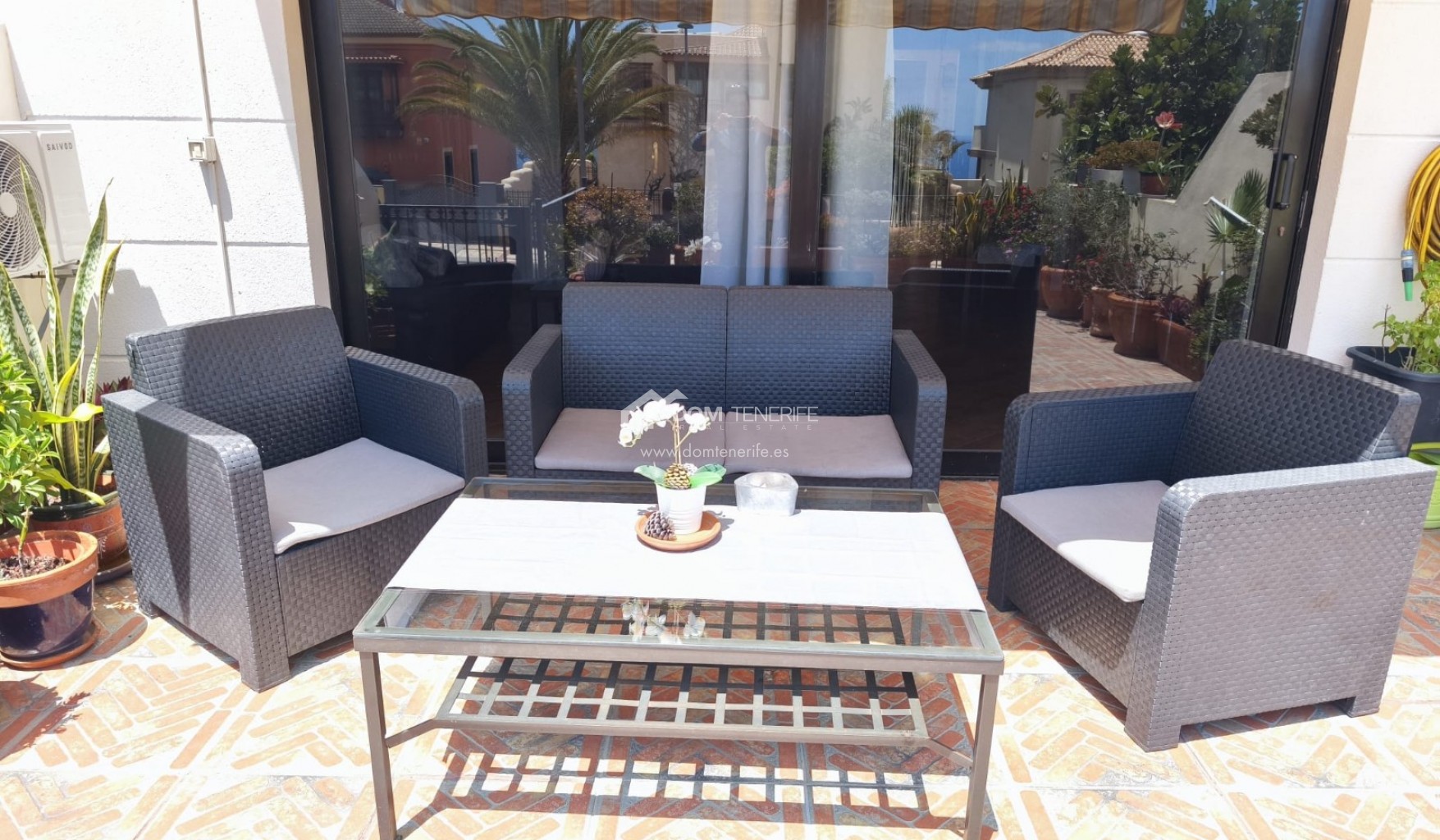 Privater ParkplatzDom Tenerife Real Estate freut sich, Ihnen dieses prächtige Stadthaus in der renommierten Wohnanlage „Terrazas del Galeón“ in Adeje präsentieren zu können. Eine ideale Immobilie für Familien, die Komfort und Lebensqualität suchen, sowie für Investoren, die an einer begehrten Lage interessiert sind. Nur wenige Schritte von Schulen, dem Einkaufszentrum „El Galeon“, einem Supermarkt, einem Gesundheitszentrum, dem Nexsport Club Adeje, einem Postamt und allen wichtigen Dienstleistungen entfernt, bietet dieses Haus Komfort, Funktionalität und eine ausgezeichnete Lebensqualität in einer der begehrtesten Gegenden im Süden Teneriffas. Das Anwesen erstreckt sich über zwei Etagen und ist perfekt konzipiert, um jeden Raum optimal zu nutzen. Es hat einen direkten Zugang von der Straße und zwei private Parkplätze direkt vor dem Haus, was für großen Komfort sorgt. Im Erdgeschoss befinden sich ein geräumiges und helles Wohn-/Esszimmer, eine voll ausgestattete separate Küche, eine Waschküche, ein Badezimmer und ein Flur mit Treppe, die in die obere Etage führt. Es verfügt außerdem über eine vordere Terrasse, auf der Sie den ganzen Tag lang frische Luft und Sonne genießen können, und eine geräumige, überdachte hintere Terrasse mit Grillplatz, perfekt für Familientreffen, Mahlzeiten im Freien und entspannende Momente. Im Obergeschoss befinden sich drei komfortable und helle Schlafzimmer, ein komplettes Badezimmer und eine von zwei der Schlafzimmer aus zugängliche Terrasse mit schöner Aussicht und friedlicher und gemütlicher Atmosphäre. Dieses 2002 erbaute Haus befindet sich im Komplex „Terrazas del Galeón“, der für seine familiäre Atmosphäre, Ruhe und hervorragende Instandhaltung bekannt ist. Es ist ein idealer Ort für alle, die Wert auf Qualität, Privatsphäre und die Nähe zu allen Annehmlichkeiten legen. Dank seiner privilegierten Lage, Geräumigkeit und des sorgfältigen Stils stellt dieses Anwesen eine einzigartige Gelegenheit dar, das Haus Ihrer Träume zu erwerben oder eine sichere Investition in einer der besten Wohngegenden im Süden Teneriffas zu tätigen.