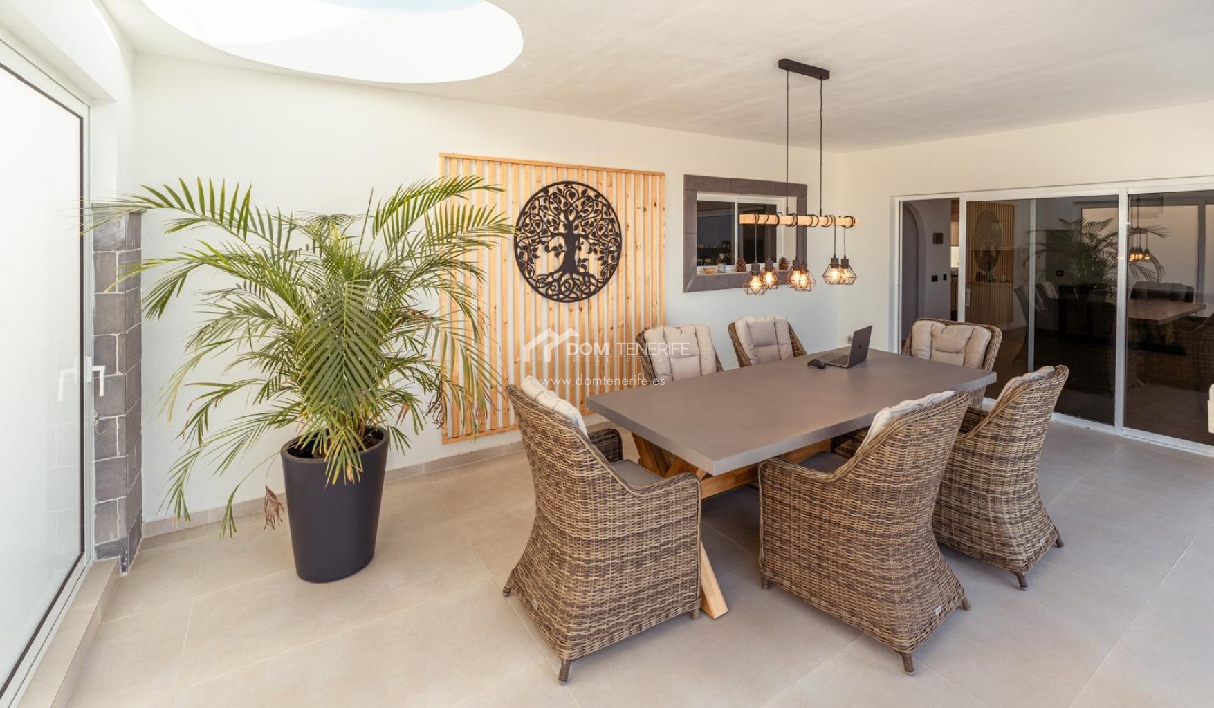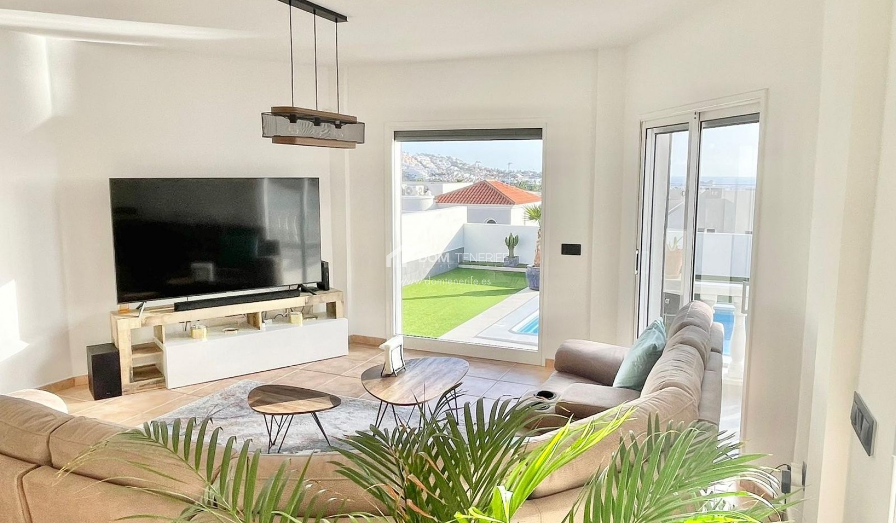 Private GaragenDom Tenerife freut sich, Ihnen eine fantastische Familienvilla mit 5 Schlafzimmern und privatem beheiztem Pool in der prestigeträchtigen Wohngegend El Madroñal an der Costa Adeje auf Teneriffa präsentieren zu dürfen, einer der exklusivsten und sichersten Wohngegenden der Insel. Diese elegante dreistöckige Villa auf einem 560 m² großen Grundstück wurde für alle entworfen, die Wert auf Luxus, Privatsphäre und Komfort legen. Sie bietet großzügige Wohnbereiche und ein modernes Design mit viel Tageslicht. Im eleganten Esszimmer mit Meerblick können Sie die schönsten Sonnenuntergänge der Insel bei einem Cocktail mit Familie und Freunden genießen. Das Anwesen verfügt über eine geräumige offene Küche und ein Wohnzimmer, in dem große Glasfenster den Raum mit Licht durchfluten und eine warme und einladende Atmosphäre schaffen. Im Außenbereich lädt der private beheizte Pool zum Entspannen ein, umgeben von einer sorgfältig gestalteten Terrasse und einem Garten – ideal, um die Sonne Teneriffas zu genießen oder Kinder im Freien spielen zu lassen. Die fünf Schlafzimmer bieten viel Platz und Komfort, während die vier Badezimmer mit moderner Ausstattung Eleganz und Funktionalität vereinen. Das Hauptschlafzimmer im dritten Stock verfügt über ein eigenes Bad und eine große private Terrasse mit atemberaubendem Meerblick – perfekt, um die beleuchteten Abende und die romantische Atmosphäre zu genießen. Die erste Etage verfügt über einen separaten Eingang und kann daher als Gästeunterkunft oder als Mietobjekt genutzt werden, ohne dass die Privatsphäre der restlichen Villa beeinträchtigt wird. Zum Anwesen gehört außerdem eine private Garage mit zusätzlichem Lager- und Waschraum. In idealer Lage, nur wenige Schritte von der renommierten Costa Adeje International School, den Duke Shops und dem Einkaufszentrum X-Sur entfernt und umgeben von Cafés, Gourmetrestaurants und allen Arten von Dienstleistungen, vereint diese Villa Ruhe, Komfort und die Nähe zu den schönsten Stränden, einschließlich der spektakulären Bahía del Duque, die nur fünf Autominuten entfernt ist. Ob als Dauerwohnsitz oder als exklusive Ferieninvestition – diese Immobilie bietet eine einmalige Gelegenheit, eine private Villa in einer der begehrtesten Gegenden im Süden Teneriffas zu erwerben. Kontaktieren Sie uns noch heute, um einen privaten Besichtigungstermin zu vereinbaren und den authentischen Lebensstil Teneriffas zu entdecken. Lassen Sie uns diese Immobilie gemeinsam besichtigen: Sie könnte die perfekte Investition oder das ideale neue Zuhause für Ihre Familie sein.