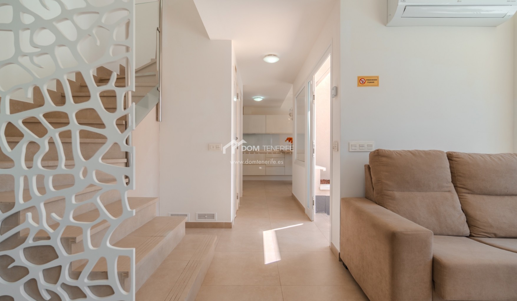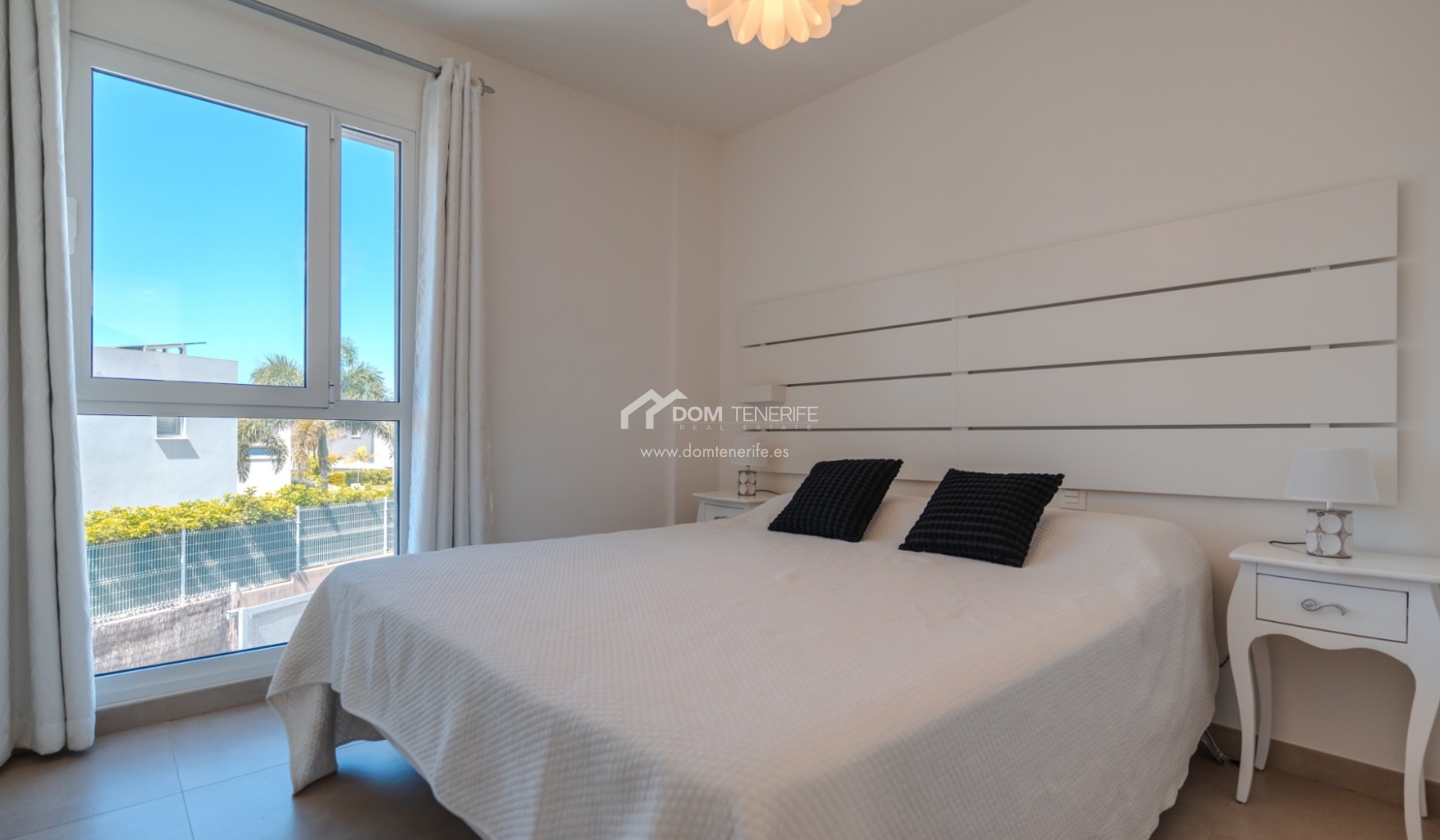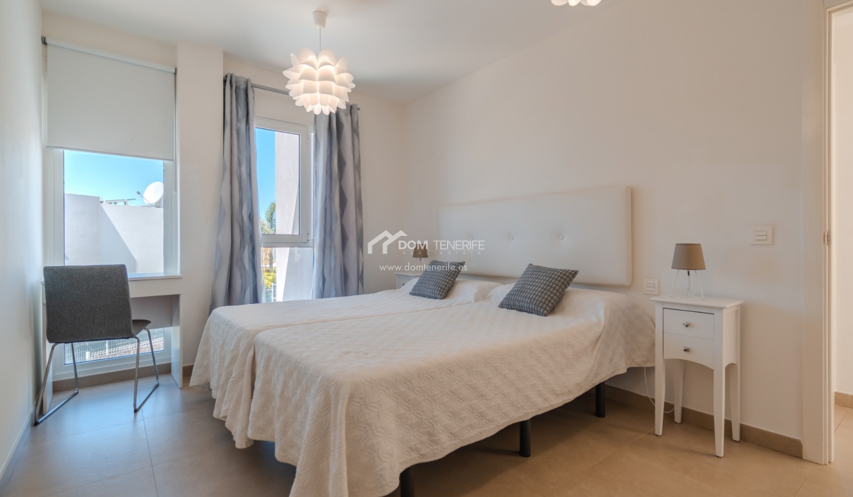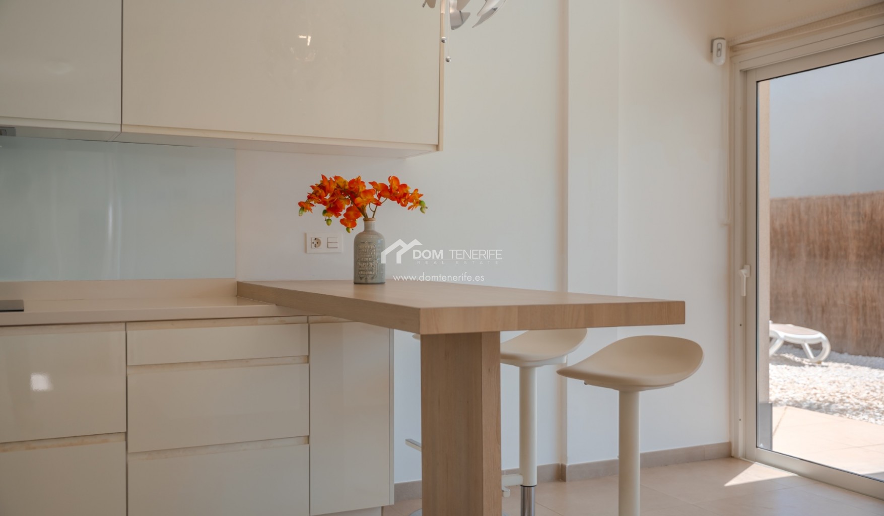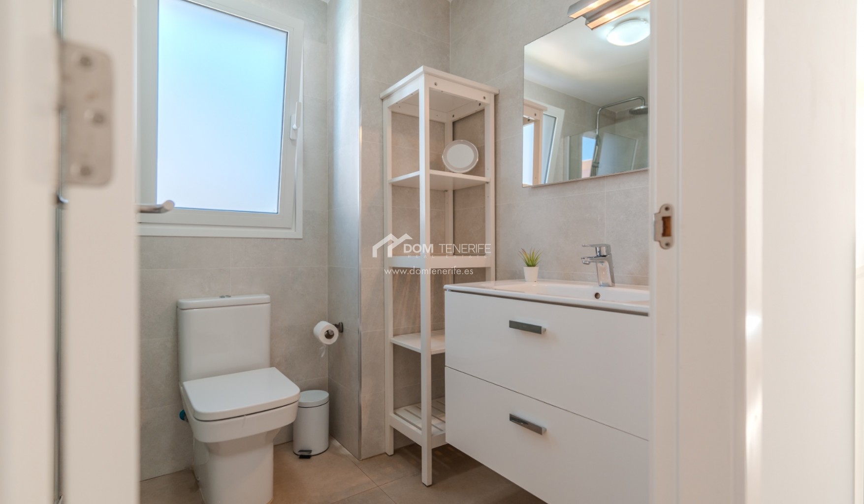 Moderne und helle Villa zum Verkauf in der privaten Wohnanlage „Nirvana Paraíso” in Playa Paraíso, erbaut auf einem Grundstück von 386,85 m² mit einer Gesamtfläche von 146,85 m² (104,22 m² nutzbar). Diese Immobilie erstreckt sich über zwei Etagen und bietet eine hervorragende Kombination aus Komfort, zeitgemäßem Design und einer privilegierten Lage im Süden Teneriffas. Im Erdgeschoss befinden sich ein geräumiges Wohn-Esszimmer, eine voll ausgestattete Küche, eine Toilette und ein Abstellraum. Im Obergeschoss befinden sich drei Schlafzimmer mit Einbauschränken, zwei Badezimmer (eines davon en suite) und zusätzlicher Stauraum. Das Hauptschlafzimmer hat Zugang zu einer privaten Terrasse mit kleinem Meerblick. Die Villa verfügt über eine Klimaanlage im gesamten Haus und Sonnenkollektoren für Warmwasser. Im Außenbereich umgeben große Terrassen den beheizten Pool und den Garten. Auf der Rückseite befindet sich ein Abstell-/Hauswirtschaftsraum, und auf der Vorderseite gibt es Platz zum Parken von mindestens zwei Fahrzeugen. Die Immobilie liegt gegenüber dem Einkaufszentrum Las Rosas, nur wenige Gehminuten von Geschäften, Restaurants und Bars entfernt und nur 10 Gehminuten vom Strand Las Galgas und dem Hard Rock Hotel Tenerife. Die Immobilie wird mit einer Ferienlizenz verkauft und ist somit eine ausgezeichnete Wahl sowohl als Hauptwohnsitz als auch als rentable Investition in einer der begehrtesten Gegenden im Süden Teneriffas. Gemeinschaftsgebühren: 41,43 €/Monat | Grundsteuer: 527,64 €/Jahr | Müllabfuhrgebühr: 34,25 €/Halbjahr. DOM Tenerife – kaufen Sie sicher!