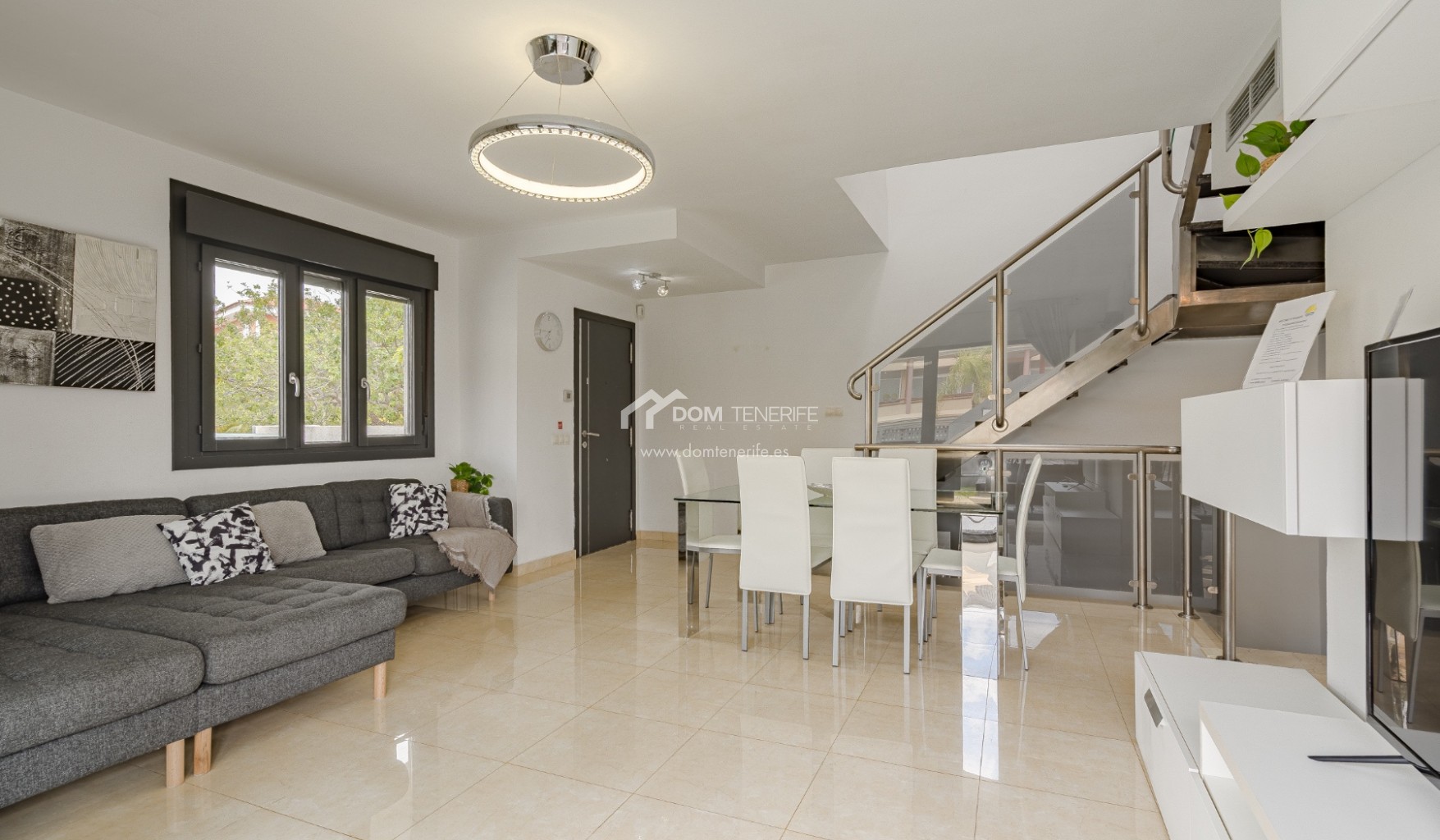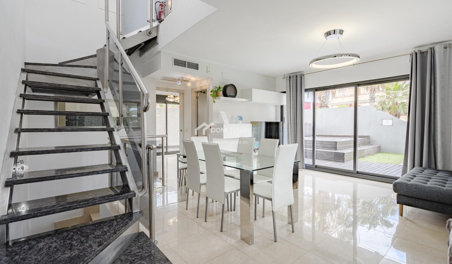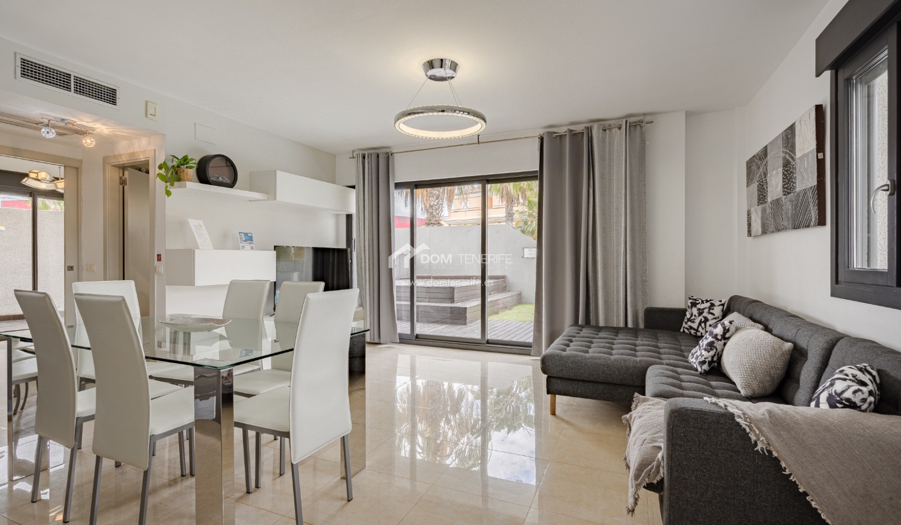 Private GaragenWir freuen uns, Ihnen dieses exklusive und charmante Reihenhaus im Herzen von Adeje, in der prestigeträchtigen Gegend von El Galeón, vorstellen zu dürfen. Ein Haus, das Eleganz, Komfort und Stil vereint und für diejenigen gedacht ist, die ein Zuhause mit Seele suchen. Diese Immobilie wurde mit exquisitem Geschmack komplett renoviert, wobei hochwertige Materialien verwendet und moderne Designermöbel verwendet wurden, um eine gemütliche und raffinierte Atmosphäre zu schaffen. Es verfügt über drei geräumige Schlafzimmer, jedes mit eigenem Bad und privatem Balkon, wo jedes Eckchen von natürlichem Licht durchflutet wird. Wenn Sie durch den separaten Eingang eintreten, empfängt Sie ein geräumiges und helles Wohnzimmer, ideal, um unvergessliche Momente mit der Familie zu genießen, neben einer voll ausgestatteten separaten Küche und einer Gästetoilette. Im Außenbereich laden ein gepflegter Garten und ein privater Pool zum Entspannen, Sonnenbaden und zur Ruhe ein. Darüber hinaus verfügt das Haus über eine private Garage für zwei Autos. Der Komplex erlaubt keine Ferienwohnungslizenzen (VV) und garantiert so eine ruhige Wohnumgebung, in der die Ruhe Teil des Alltags ist. Nur wenige Schritte entfernt befindet sich das Einkaufszentrum El Galeón mit seinen Geschäften, Restaurants und allen Dienstleistungen, die das Leben angenehmer machen. Ein perfekter Ort, an dem jedes Detail Wohlbefinden vermittelt und das Leben zu einem täglichen Vergnügen wird. IBI 513,82€, comunidad 60€