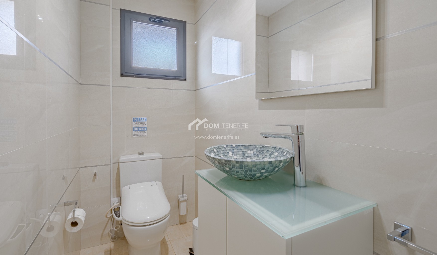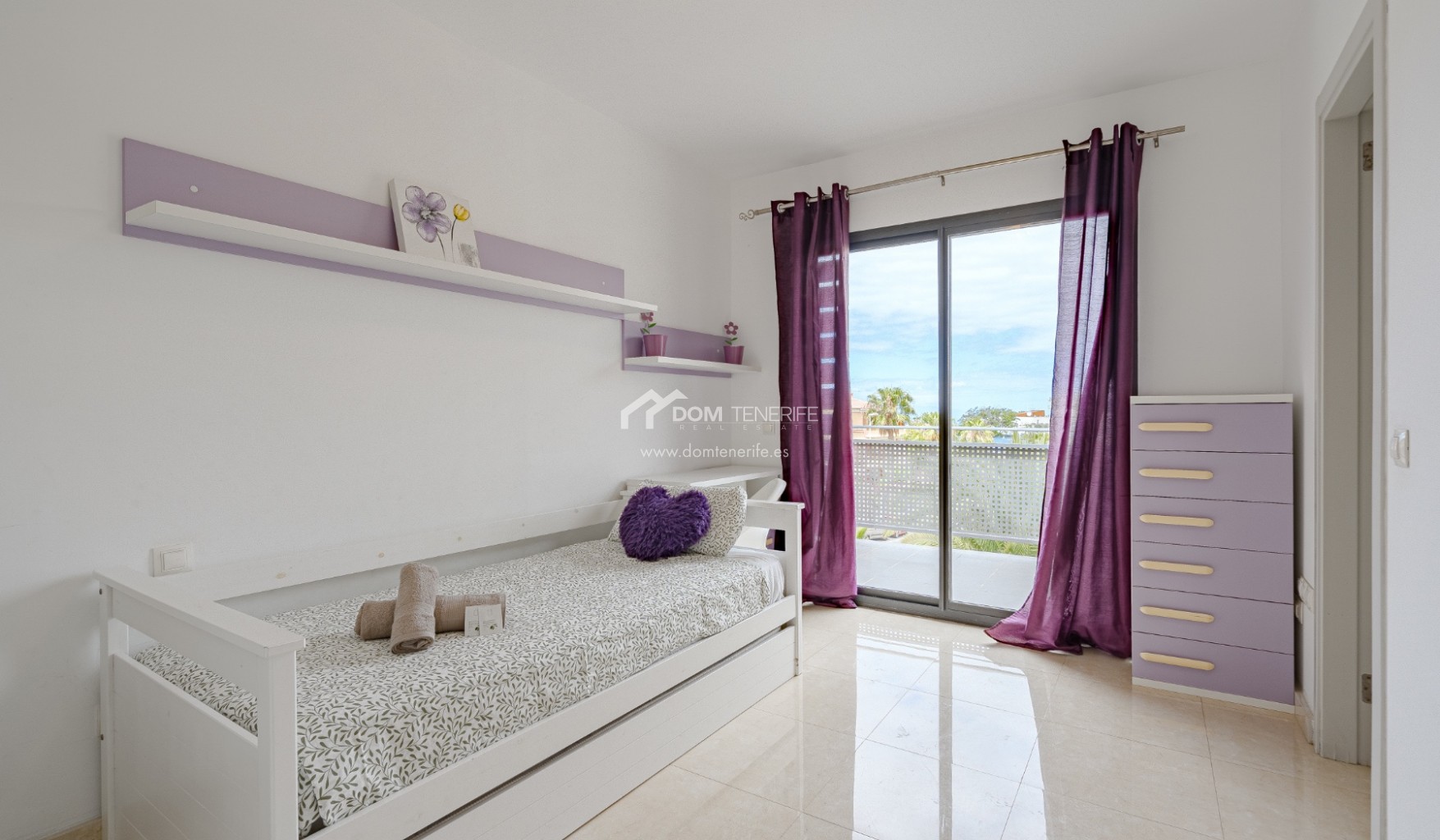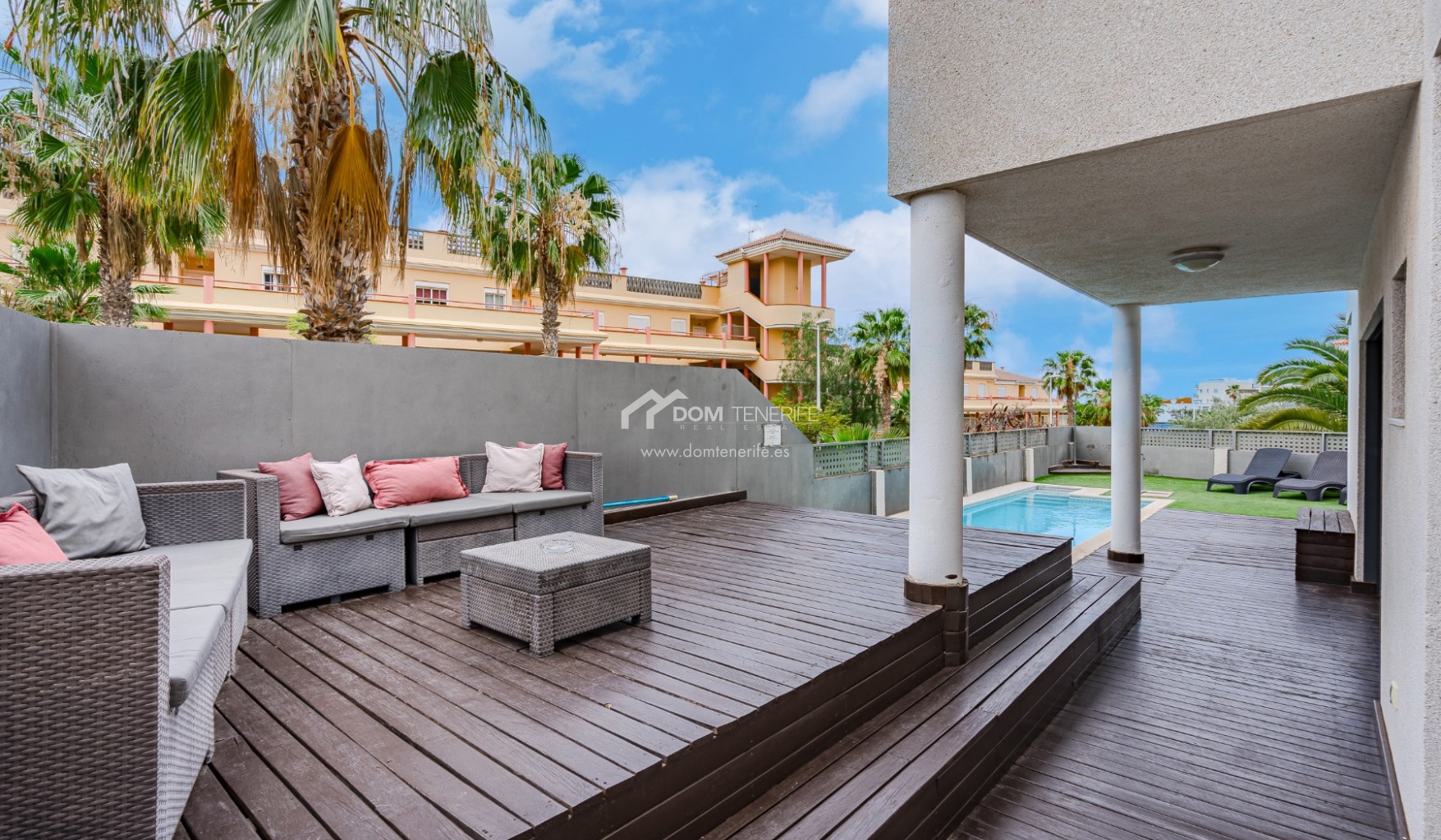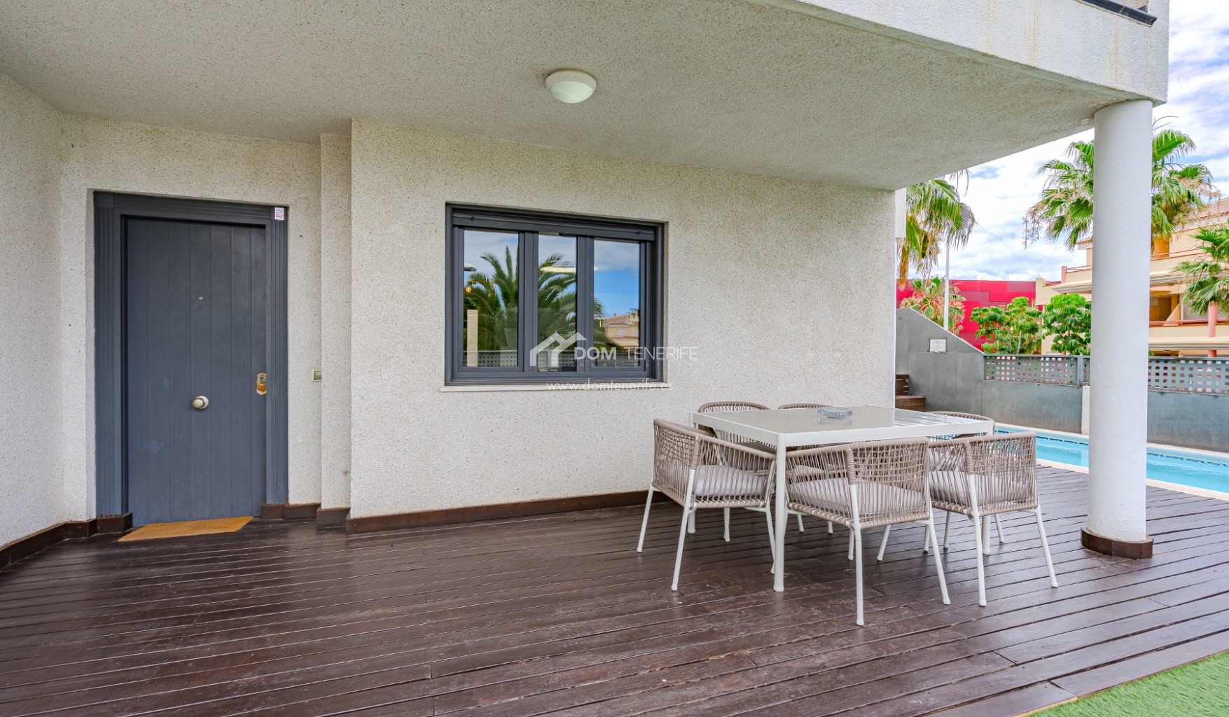 Private GaragenWir freuen uns, Ihnen dieses exklusive und charmante Reihenhaus im Herzen von Adeje, in der prestigeträchtigen Gegend von El Galeón, vorstellen zu dürfen. Ein Haus, das Eleganz, Komfort und Stil vereint und für diejenigen gedacht ist, die ein Zuhause mit Seele suchen. Diese Immobilie wurde mit exquisitem Geschmack komplett renoviert, wobei hochwertige Materialien verwendet und moderne Designermöbel verwendet wurden, um eine gemütliche und raffinierte Atmosphäre zu schaffen. Es verfügt über drei geräumige Schlafzimmer, jedes mit eigenem Bad und privatem Balkon, wo jedes Eckchen von natürlichem Licht durchflutet wird. Wenn Sie durch den separaten Eingang eintreten, empfängt Sie ein geräumiges und helles Wohnzimmer, ideal, um unvergessliche Momente mit der Familie zu genießen, neben einer voll ausgestatteten separaten Küche und einer Gästetoilette. Im Außenbereich laden ein gepflegter Garten und ein privater Pool zum Entspannen, Sonnenbaden und zur Ruhe ein. Darüber hinaus verfügt das Haus über eine private Garage für zwei Autos. Der Komplex erlaubt keine Ferienwohnungslizenzen (VV) und garantiert so eine ruhige Wohnumgebung, in der die Ruhe Teil des Alltags ist. Nur wenige Schritte entfernt befindet sich das Einkaufszentrum El Galeón mit seinen Geschäften, Restaurants und allen Dienstleistungen, die das Leben angenehmer machen. Ein perfekter Ort, an dem jedes Detail Wohlbefinden vermittelt und das Leben zu einem täglichen Vergnügen wird. IBI 513,82€, comunidad 60€