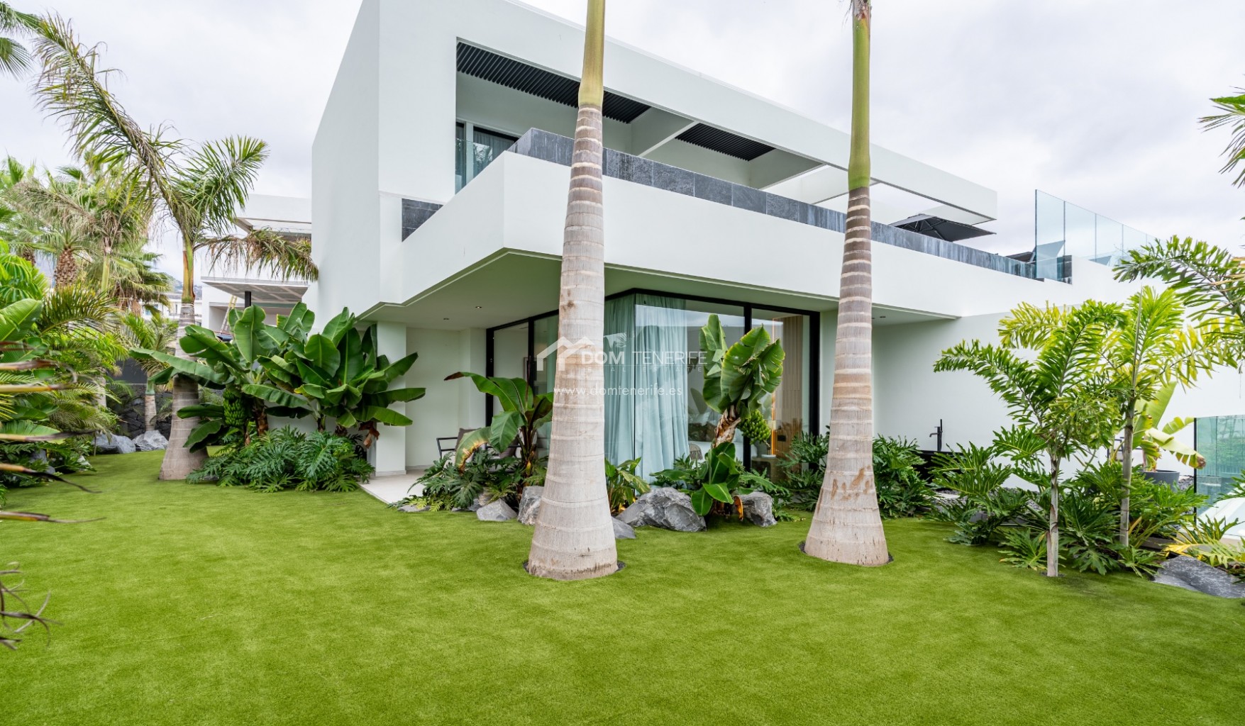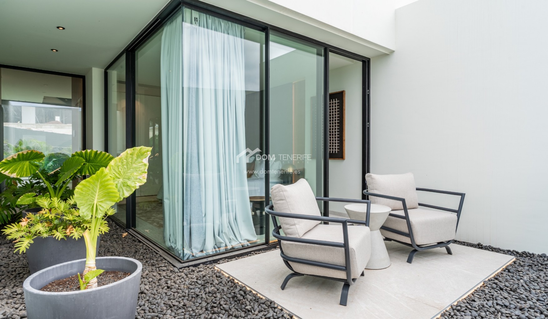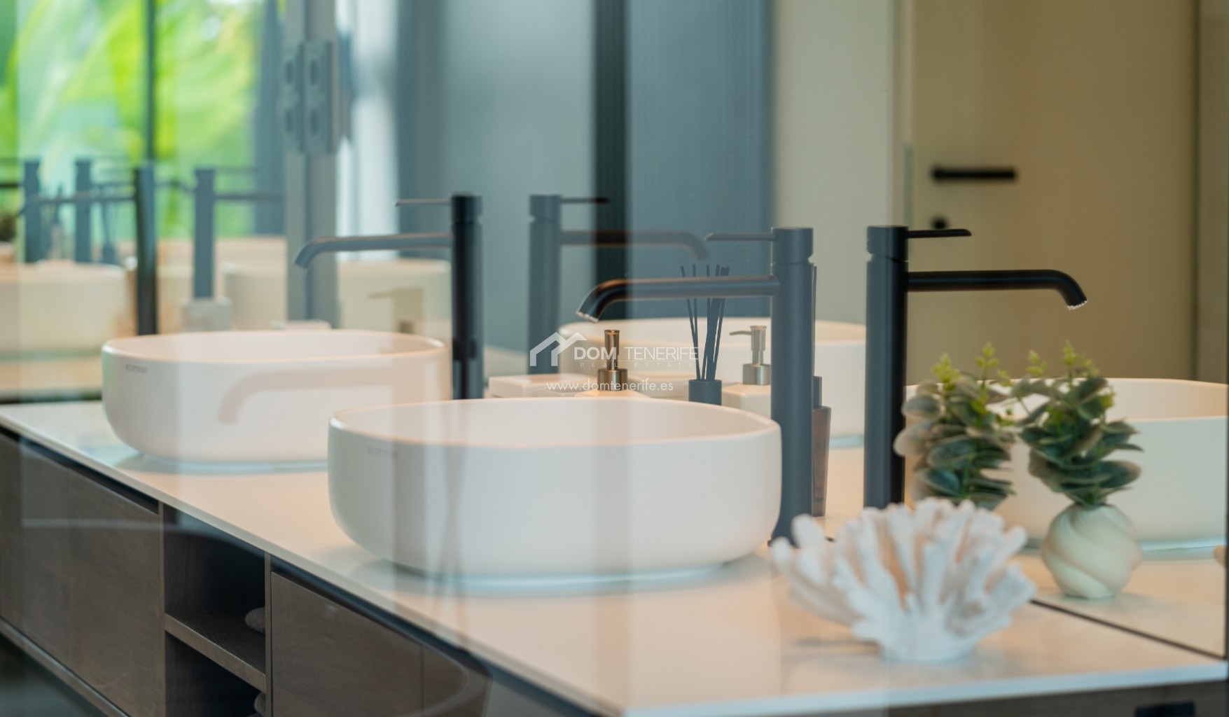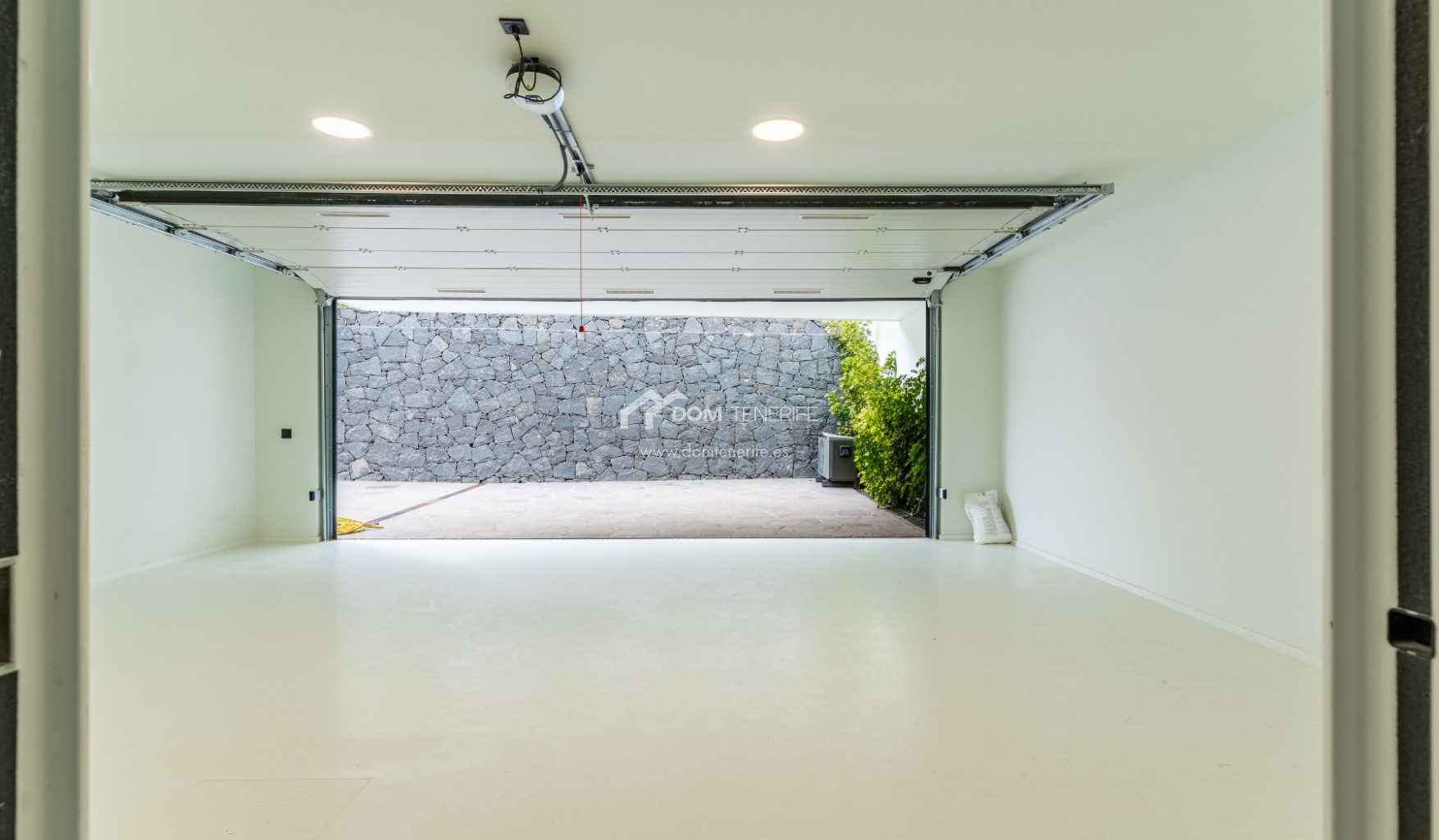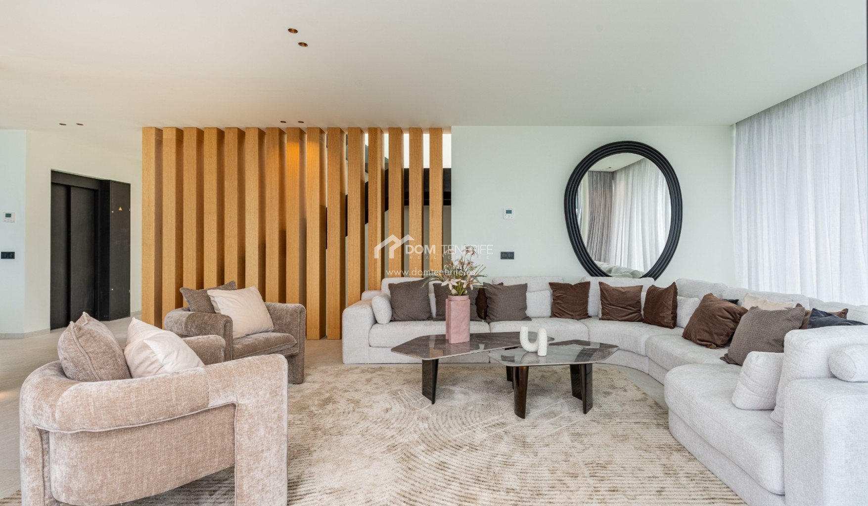 Private GaragenDiese beeindruckende Villa, entworfen vom renommierten Architekten Leonardo Omar, ist ein wahres Juwel der zeitgenössischen Architektur. Komplett fertiggestellt und elegant eingerichtet, wurde jedes Detail sorgfältig ausgewählt, um eine Atmosphäre von Luxus, Komfort und modernem Design zu schaffen. Mit einer bebauten Fläche von 430 m² auf einem Grundstück von 772 m² verfügt das Anwesen über vier geräumige Schlafzimmer, alle mit eigenem Bad, Einbauschränken und direktem Zugang zu einem üppigen tropischen Garten, der selbst ein Kunstwerk ist. Designermöbel, Dekorationsgegenstände und hochwertige Oberflächen schaffen ein harmonisches und raffiniertes Ambiente. Der Haupteingang im Erdgeschoss führt in eine elegante Eingangshalle, die mit drei Schlafzimmern mit Blick auf den Garten verbunden ist, alle mit eigenem Bad, einige davon mit Außenbadewannen, die ein einzigartiges Entspannungserlebnis bieten. Eine moderne Treppe und ein privater Aufzug führen in das Obergeschoss, wo sich das Herzstück des Hauses befindet: ein geräumiges und helles Wohnzimmer, das mit dem Esszimmer und der Designerküche mit hochwertigen Geräten verbunden ist. Hinter Glaswänden verbirgt sich ein eleganter, klimatisierter Weinkeller, perfekt für Weinliebhaber. Der Wohnbereich öffnet sich zu einer großen Terrasse mit Infinity-Pool und Panoramablick auf das Resort Abama und den Atlantik. Auf dieser Ebene ergänzt eine Außenküche mit Grill und Spüle den Raum und schafft die ideale Atmosphäre für Abendessen im Freien und unvergessliche Zusammenkünfte. Im Untergeschoss bietet die Villa eine geräumige Garage, einen Waschraum und ein zusätzliches Badezimmer. Darüber hinaus verfügt sie über ein separates, voll ausgestattetes Gästeapartment mit eigener Küche, das die Privatsphäre seiner Bewohner gewährleistet. Diese Immobilie befindet sich im renommierten Abama Resort und verbindet auf perfekte Weise Luxus, Privatsphäre und zeitgenössisches Design. Sie bietet einen exklusiven Lebensstil in einer der privilegiertesten Umgebungen im Süden Teneriffas. | Gemeinschaftsgebühren: 202 €/Quartal | Grundsteuer: 1.686 €/Jahr.