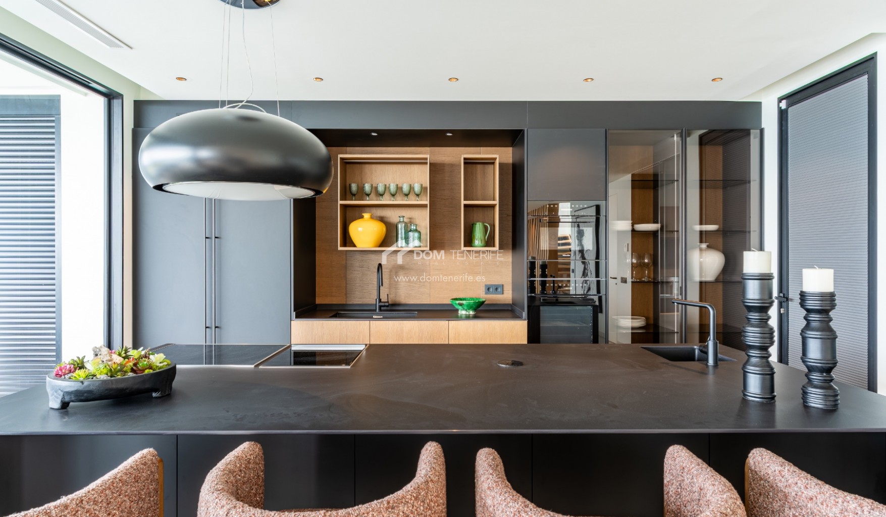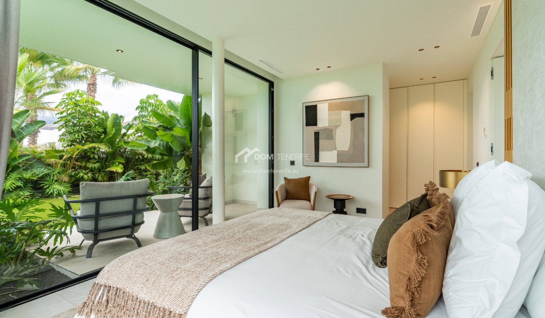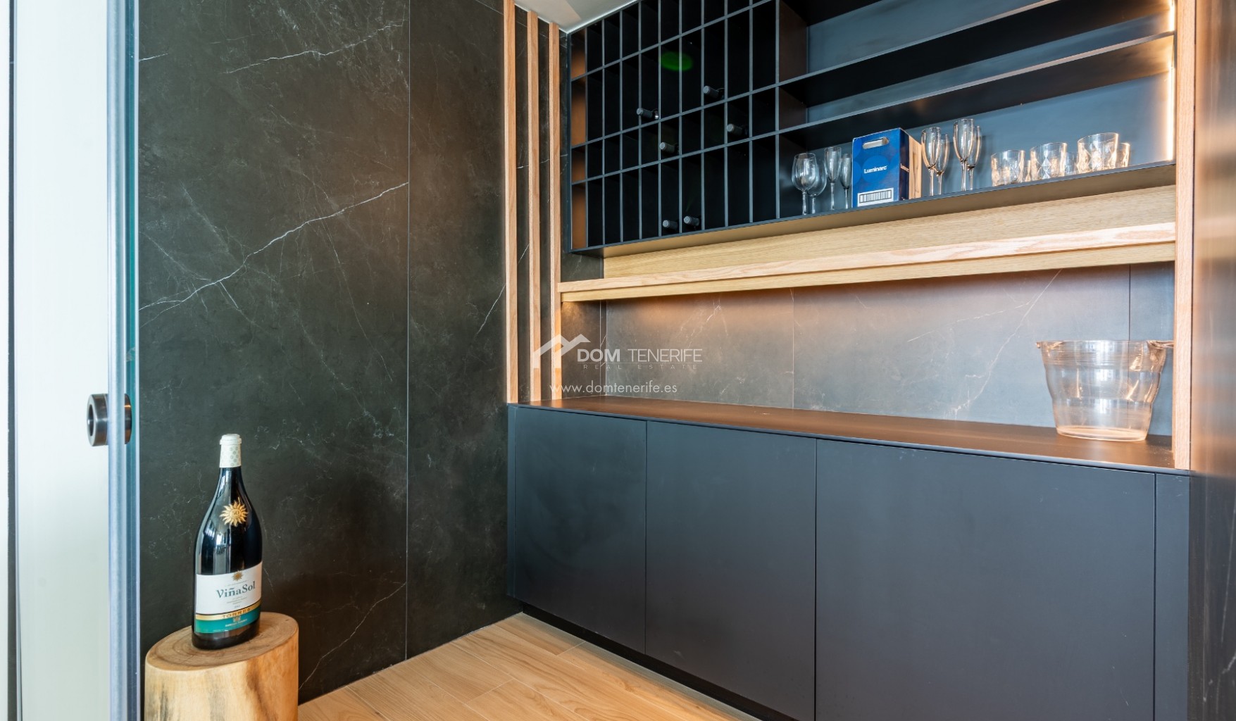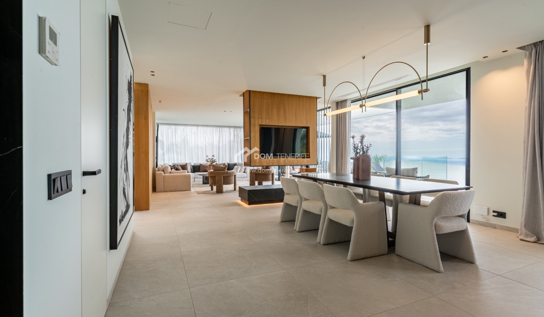 Private GaragenDiese beeindruckende Villa, entworfen vom renommierten Architekten Leonardo Omar, ist ein wahres Juwel der zeitgenössischen Architektur. Komplett fertiggestellt und elegant eingerichtet, wurde jedes Detail sorgfältig ausgewählt, um eine Atmosphäre von Luxus, Komfort und modernem Design zu schaffen. Mit einer bebauten Fläche von 430 m² auf einem Grundstück von 772 m² verfügt das Anwesen über vier geräumige Schlafzimmer, alle mit eigenem Bad, Einbauschränken und direktem Zugang zu einem üppigen tropischen Garten, der selbst ein Kunstwerk ist. Designermöbel, Dekorationsgegenstände und hochwertige Oberflächen schaffen ein harmonisches und raffiniertes Ambiente. Der Haupteingang im Erdgeschoss führt in eine elegante Eingangshalle, die mit drei Schlafzimmern mit Blick auf den Garten verbunden ist, alle mit eigenem Bad, einige davon mit Außenbadewannen, die ein einzigartiges Entspannungserlebnis bieten. Eine moderne Treppe und ein privater Aufzug führen in das Obergeschoss, wo sich das Herzstück des Hauses befindet: ein geräumiges und helles Wohnzimmer, das mit dem Esszimmer und der Designerküche mit hochwertigen Geräten verbunden ist. Hinter Glaswänden verbirgt sich ein eleganter, klimatisierter Weinkeller, perfekt für Weinliebhaber. Der Wohnbereich öffnet sich zu einer großen Terrasse mit Infinity-Pool und Panoramablick auf das Resort Abama und den Atlantik. Auf dieser Ebene ergänzt eine Außenküche mit Grill und Spüle den Raum und schafft die ideale Atmosphäre für Abendessen im Freien und unvergessliche Zusammenkünfte. Im Untergeschoss bietet die Villa eine geräumige Garage, einen Waschraum und ein zusätzliches Badezimmer. Darüber hinaus verfügt sie über ein separates, voll ausgestattetes Gästeapartment mit eigener Küche, das die Privatsphäre seiner Bewohner gewährleistet. Diese Immobilie befindet sich im renommierten Abama Resort und verbindet auf perfekte Weise Luxus, Privatsphäre und zeitgenössisches Design. Sie bietet einen exklusiven Lebensstil in einer der privilegiertesten Umgebungen im Süden Teneriffas. | Gemeinschaftsgebühren: 202 €/Quartal | Grundsteuer: 1.686 €/Jahr.