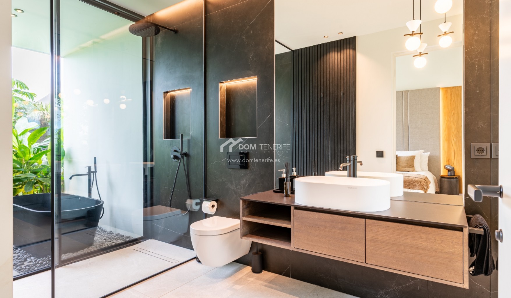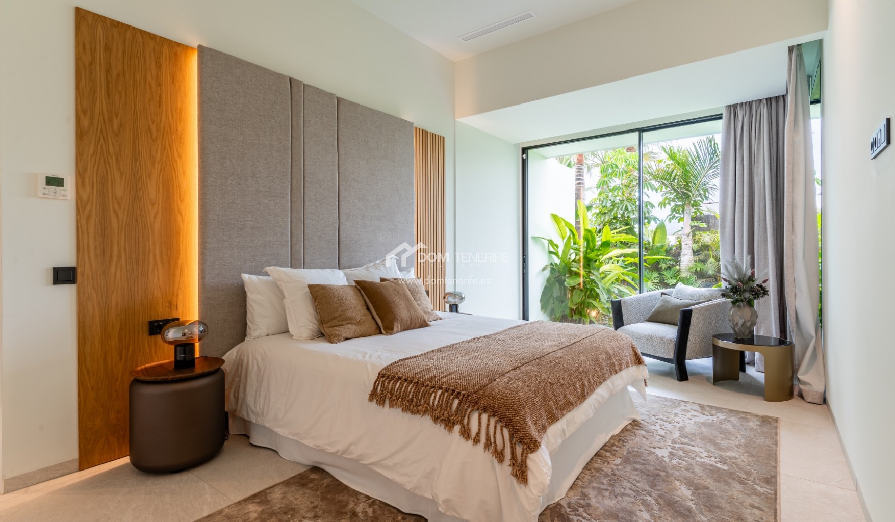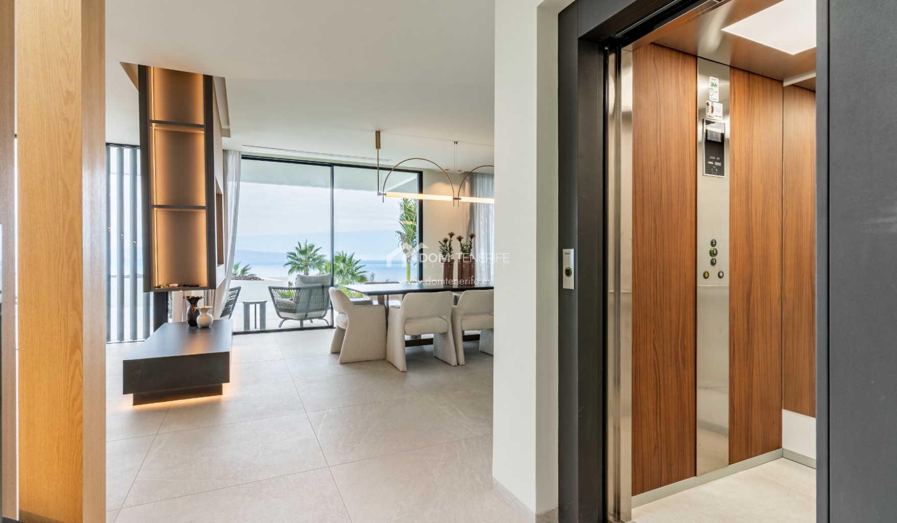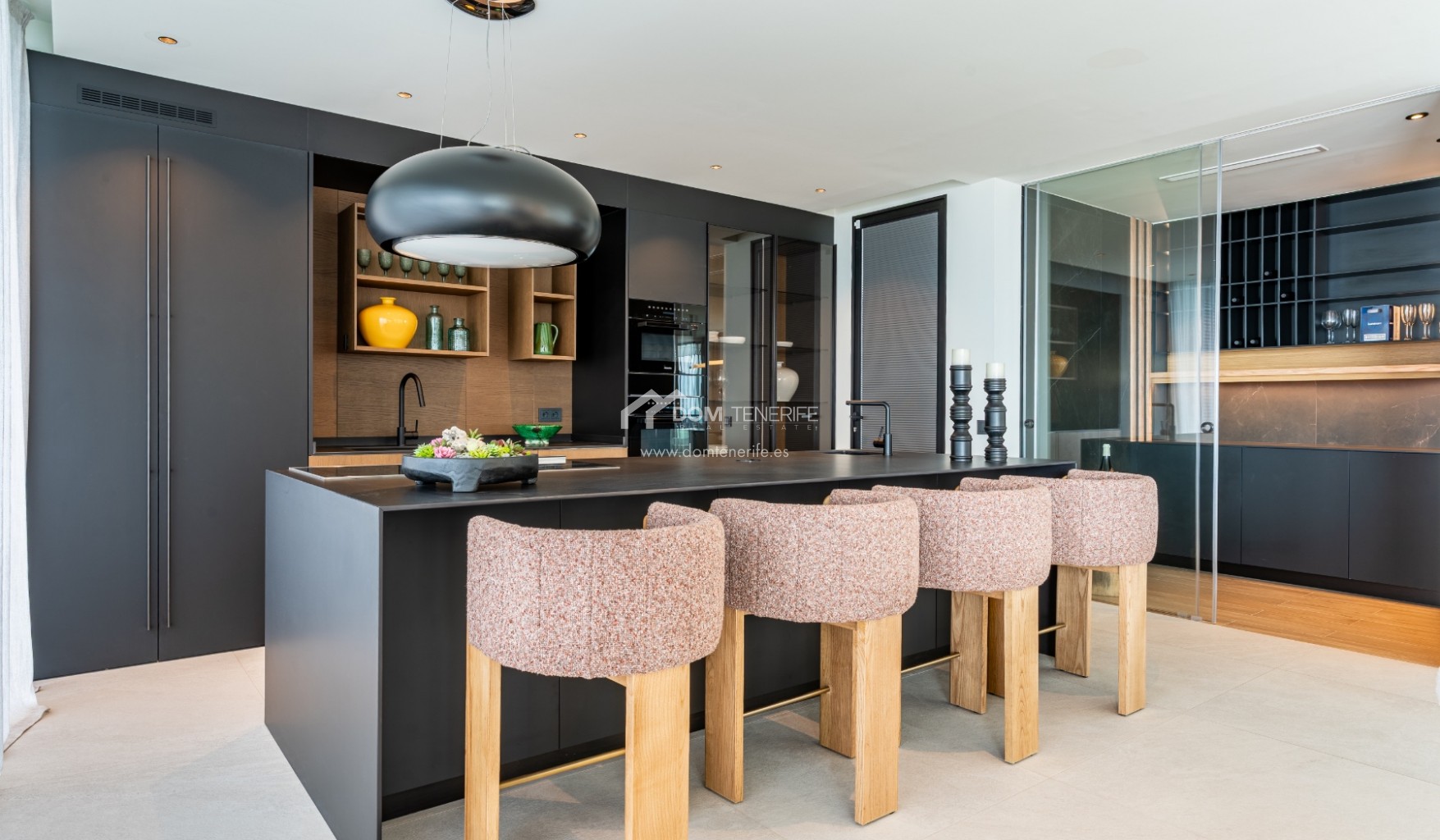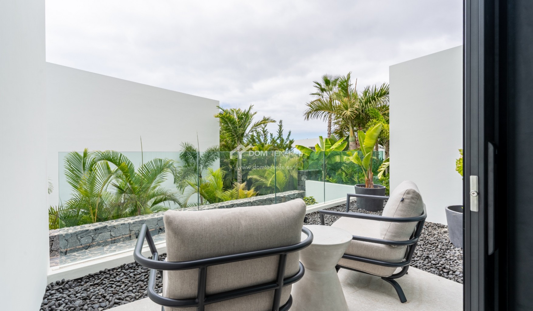 Private GaragenDiese beeindruckende Villa, entworfen vom renommierten Architekten Leonardo Omar, ist ein wahres Juwel der zeitgenössischen Architektur. Komplett fertiggestellt und elegant eingerichtet, wurde jedes Detail sorgfältig ausgewählt, um eine Atmosphäre von Luxus, Komfort und modernem Design zu schaffen. Mit einer bebauten Fläche von 430 m² auf einem Grundstück von 772 m² verfügt das Anwesen über vier geräumige Schlafzimmer, alle mit eigenem Bad, Einbauschränken und direktem Zugang zu einem üppigen tropischen Garten, der selbst ein Kunstwerk ist. Designermöbel, Dekorationsgegenstände und hochwertige Oberflächen schaffen ein harmonisches und raffiniertes Ambiente. Der Haupteingang im Erdgeschoss führt in eine elegante Eingangshalle, die mit drei Schlafzimmern mit Blick auf den Garten verbunden ist, alle mit eigenem Bad, einige davon mit Außenbadewannen, die ein einzigartiges Entspannungserlebnis bieten. Eine moderne Treppe und ein privater Aufzug führen in das Obergeschoss, wo sich das Herzstück des Hauses befindet: ein geräumiges und helles Wohnzimmer, das mit dem Esszimmer und der Designerküche mit hochwertigen Geräten verbunden ist. Hinter Glaswänden verbirgt sich ein eleganter, klimatisierter Weinkeller, perfekt für Weinliebhaber. Der Wohnbereich öffnet sich zu einer großen Terrasse mit Infinity-Pool und Panoramablick auf das Resort Abama und den Atlantik. Auf dieser Ebene ergänzt eine Außenküche mit Grill und Spüle den Raum und schafft die ideale Atmosphäre für Abendessen im Freien und unvergessliche Zusammenkünfte. Im Untergeschoss bietet die Villa eine geräumige Garage, einen Waschraum und ein zusätzliches Badezimmer. Darüber hinaus verfügt sie über ein separates, voll ausgestattetes Gästeapartment mit eigener Küche, das die Privatsphäre seiner Bewohner gewährleistet. Diese Immobilie befindet sich im renommierten Abama Resort und verbindet auf perfekte Weise Luxus, Privatsphäre und zeitgenössisches Design. Sie bietet einen exklusiven Lebensstil in einer der privilegiertesten Umgebungen im Süden Teneriffas. | Gemeinschaftsgebühren: 202 €/Quartal | Grundsteuer: 1.686 €/Jahr.