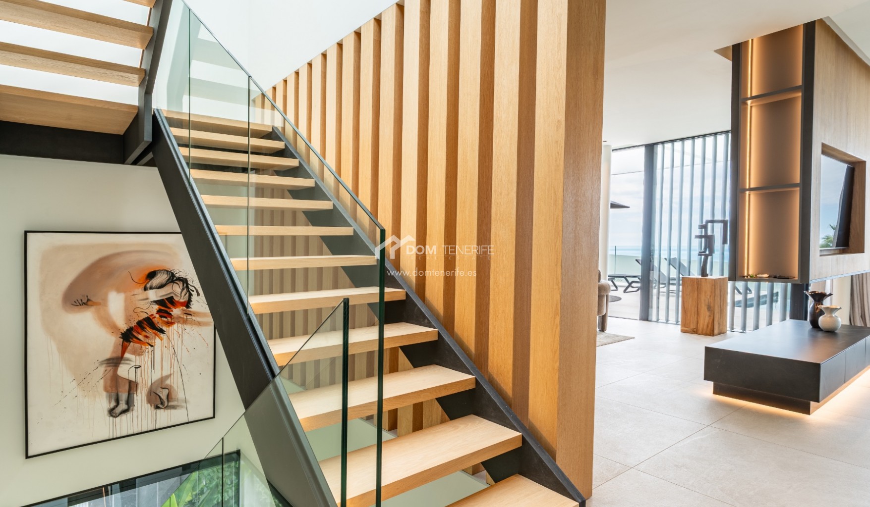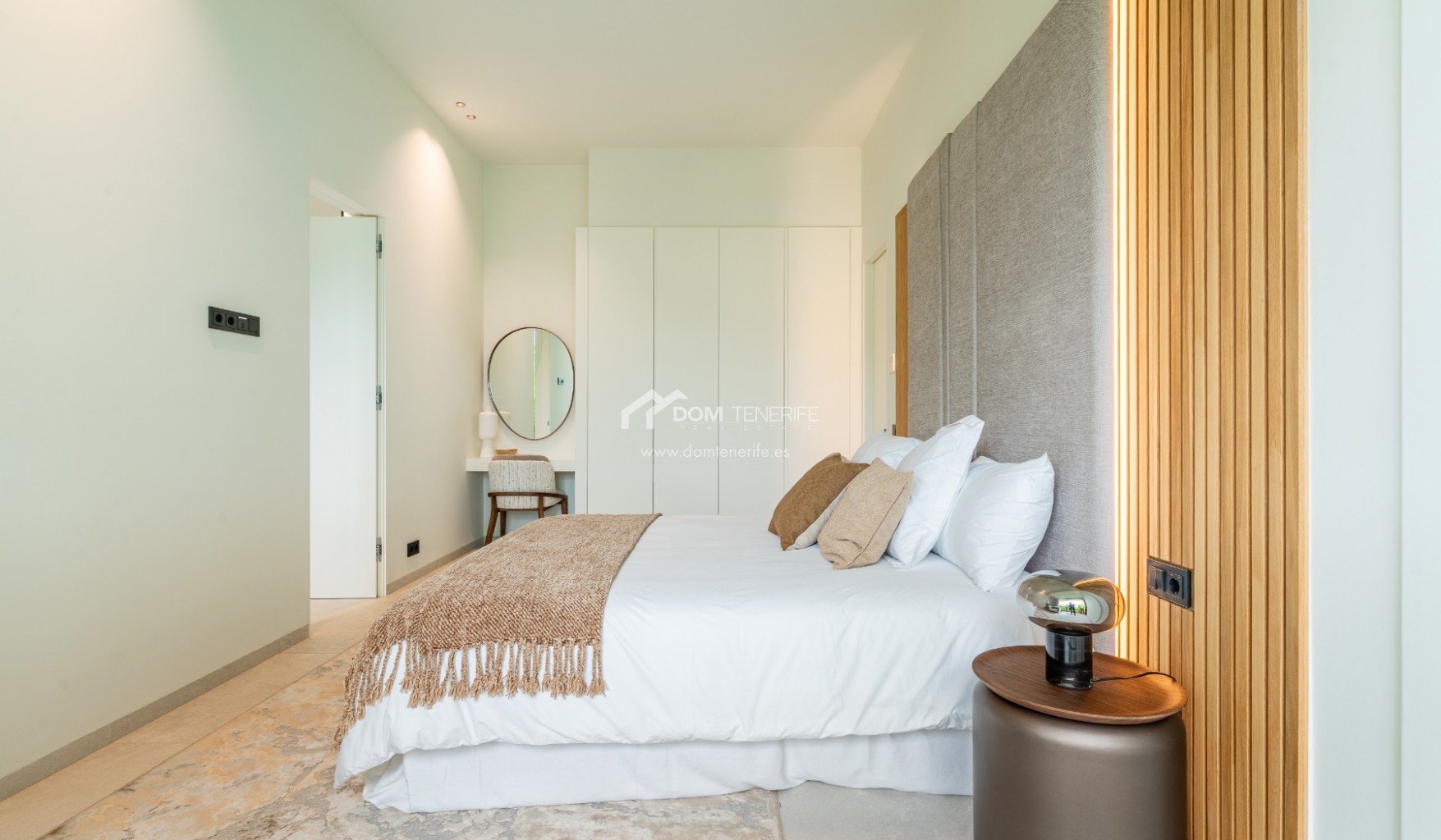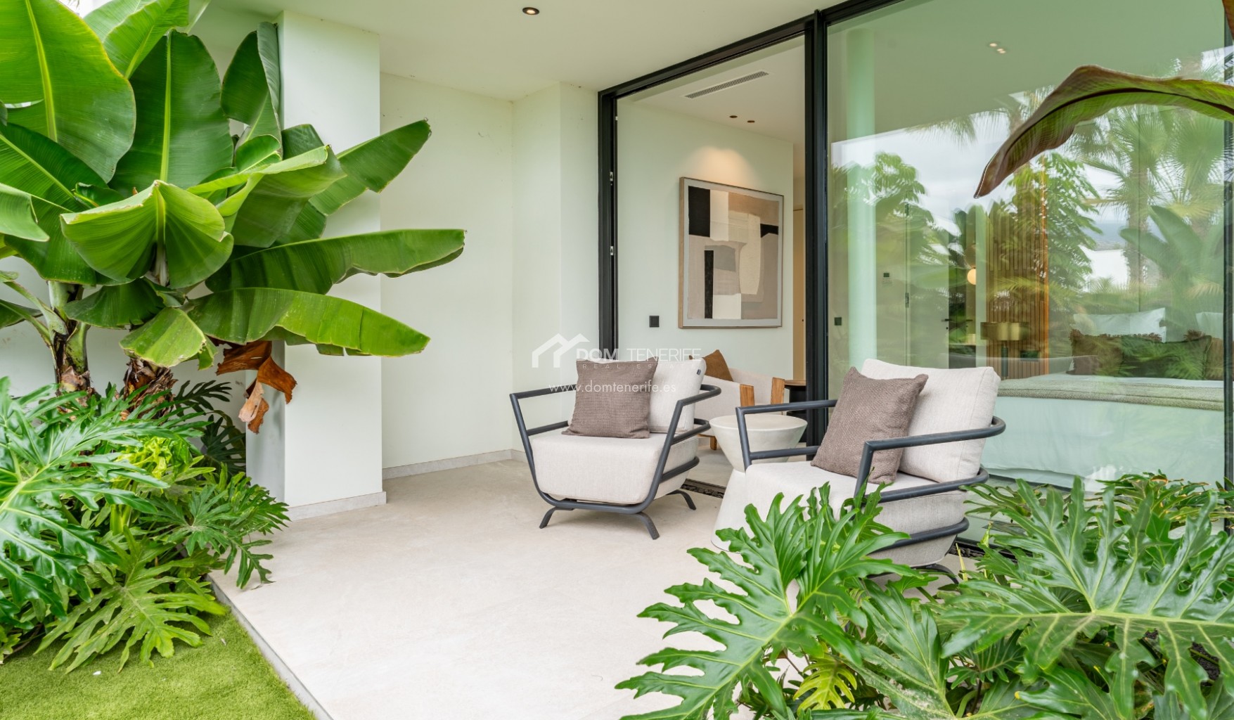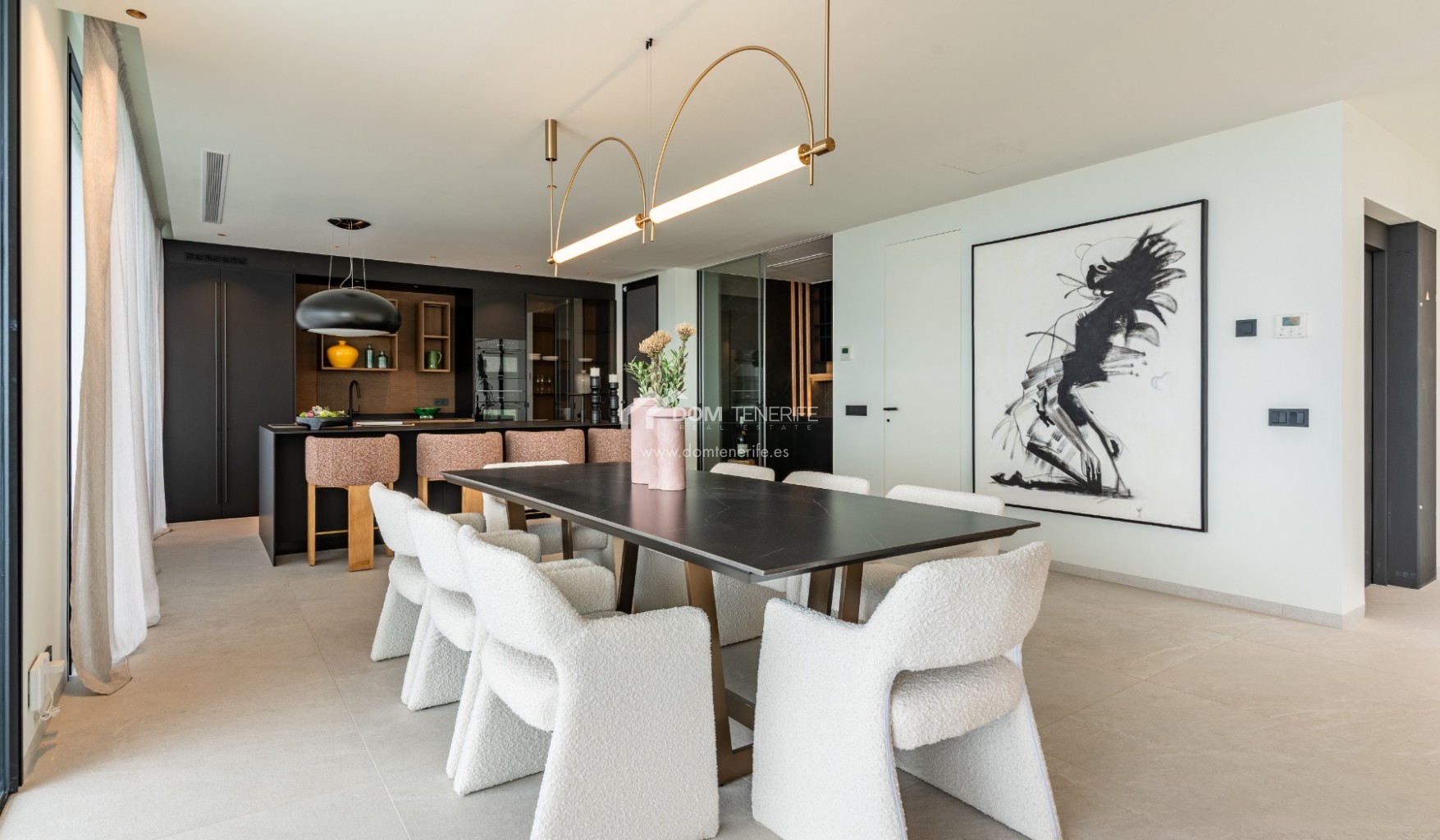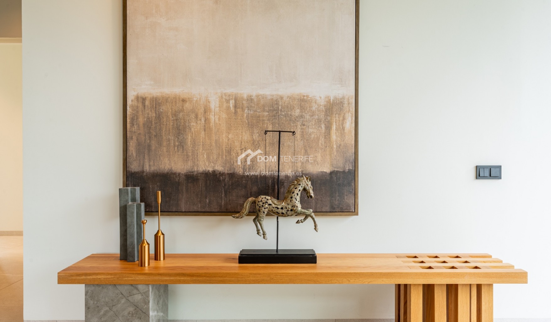 Private GaragenDiese beeindruckende Villa, entworfen vom renommierten Architekten Leonardo Omar, ist ein wahres Juwel der zeitgenössischen Architektur. Komplett fertiggestellt und elegant eingerichtet, wurde jedes Detail sorgfältig ausgewählt, um eine Atmosphäre von Luxus, Komfort und modernem Design zu schaffen. Mit einer bebauten Fläche von 430 m² auf einem Grundstück von 772 m² verfügt das Anwesen über vier geräumige Schlafzimmer, alle mit eigenem Bad, Einbauschränken und direktem Zugang zu einem üppigen tropischen Garten, der selbst ein Kunstwerk ist. Designermöbel, Dekorationsgegenstände und hochwertige Oberflächen schaffen ein harmonisches und raffiniertes Ambiente. Der Haupteingang im Erdgeschoss führt in eine elegante Eingangshalle, die mit drei Schlafzimmern mit Blick auf den Garten verbunden ist, alle mit eigenem Bad, einige davon mit Außenbadewannen, die ein einzigartiges Entspannungserlebnis bieten. Eine moderne Treppe und ein privater Aufzug führen in das Obergeschoss, wo sich das Herzstück des Hauses befindet: ein geräumiges und helles Wohnzimmer, das mit dem Esszimmer und der Designerküche mit hochwertigen Geräten verbunden ist. Hinter Glaswänden verbirgt sich ein eleganter, klimatisierter Weinkeller, perfekt für Weinliebhaber. Der Wohnbereich öffnet sich zu einer großen Terrasse mit Infinity-Pool und Panoramablick auf das Resort Abama und den Atlantik. Auf dieser Ebene ergänzt eine Außenküche mit Grill und Spüle den Raum und schafft die ideale Atmosphäre für Abendessen im Freien und unvergessliche Zusammenkünfte. Im Untergeschoss bietet die Villa eine geräumige Garage, einen Waschraum und ein zusätzliches Badezimmer. Darüber hinaus verfügt sie über ein separates, voll ausgestattetes Gästeapartment mit eigener Küche, das die Privatsphäre seiner Bewohner gewährleistet. Diese Immobilie befindet sich im renommierten Abama Resort und verbindet auf perfekte Weise Luxus, Privatsphäre und zeitgenössisches Design. Sie bietet einen exklusiven Lebensstil in einer der privilegiertesten Umgebungen im Süden Teneriffas. | Gemeinschaftsgebühren: 202 €/Quartal | Grundsteuer: 1.686 €/Jahr.