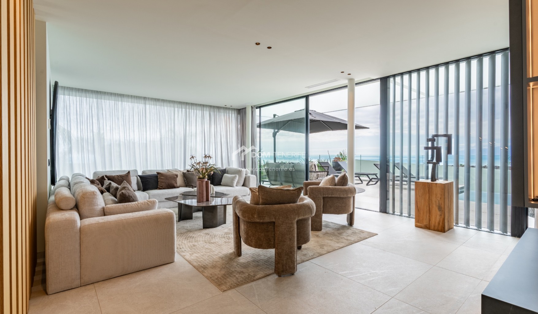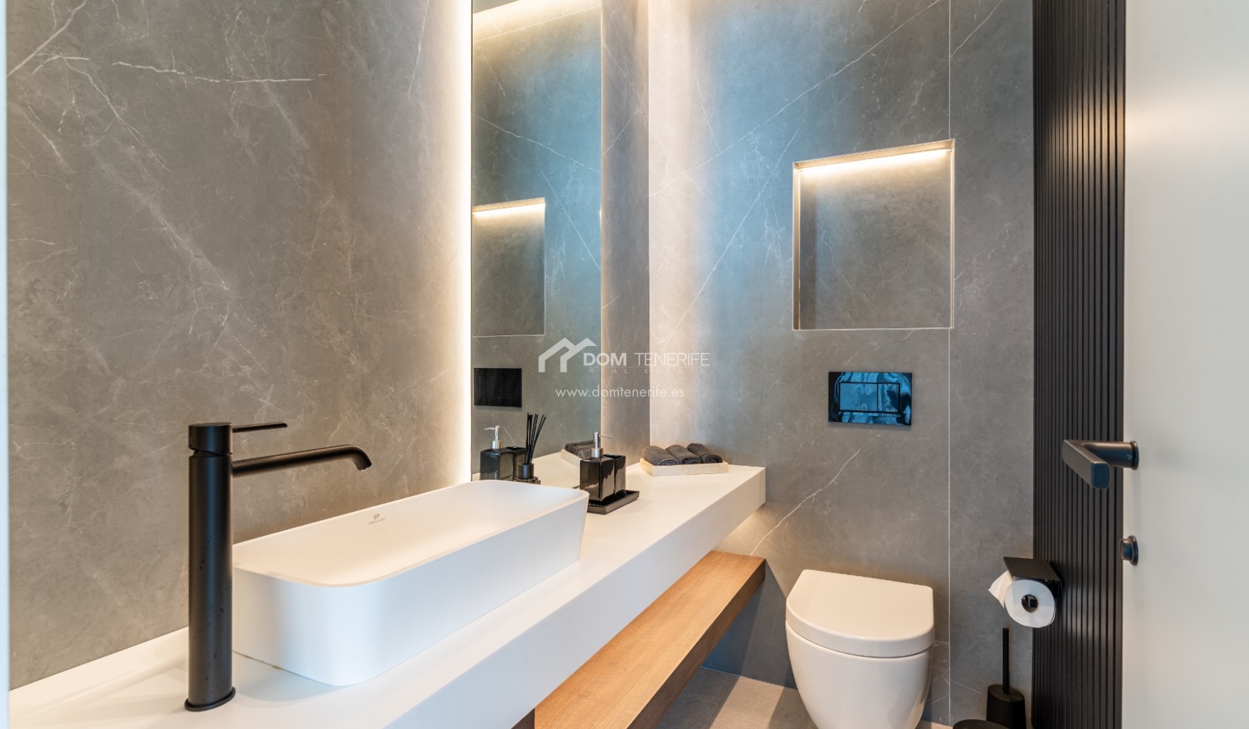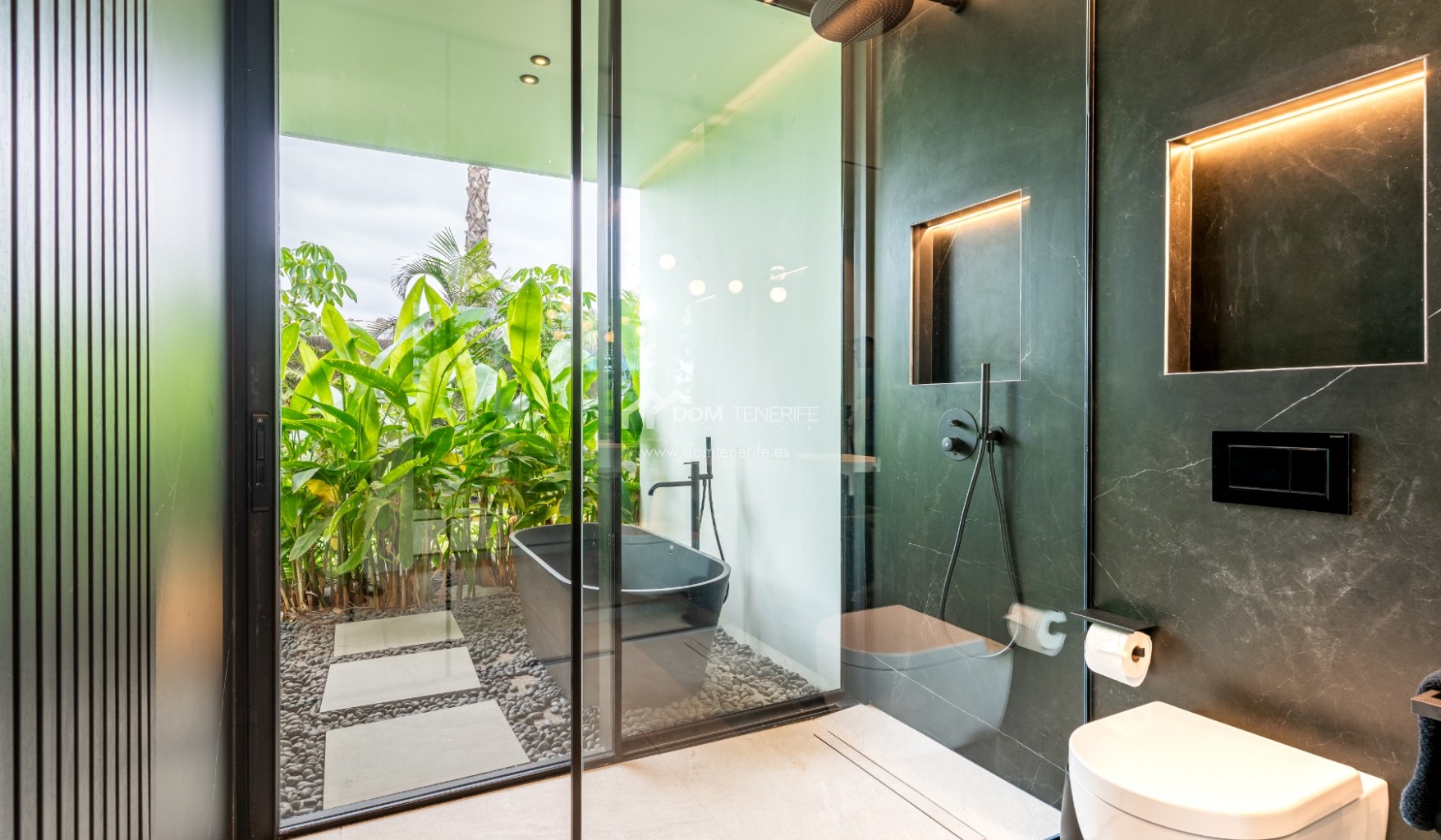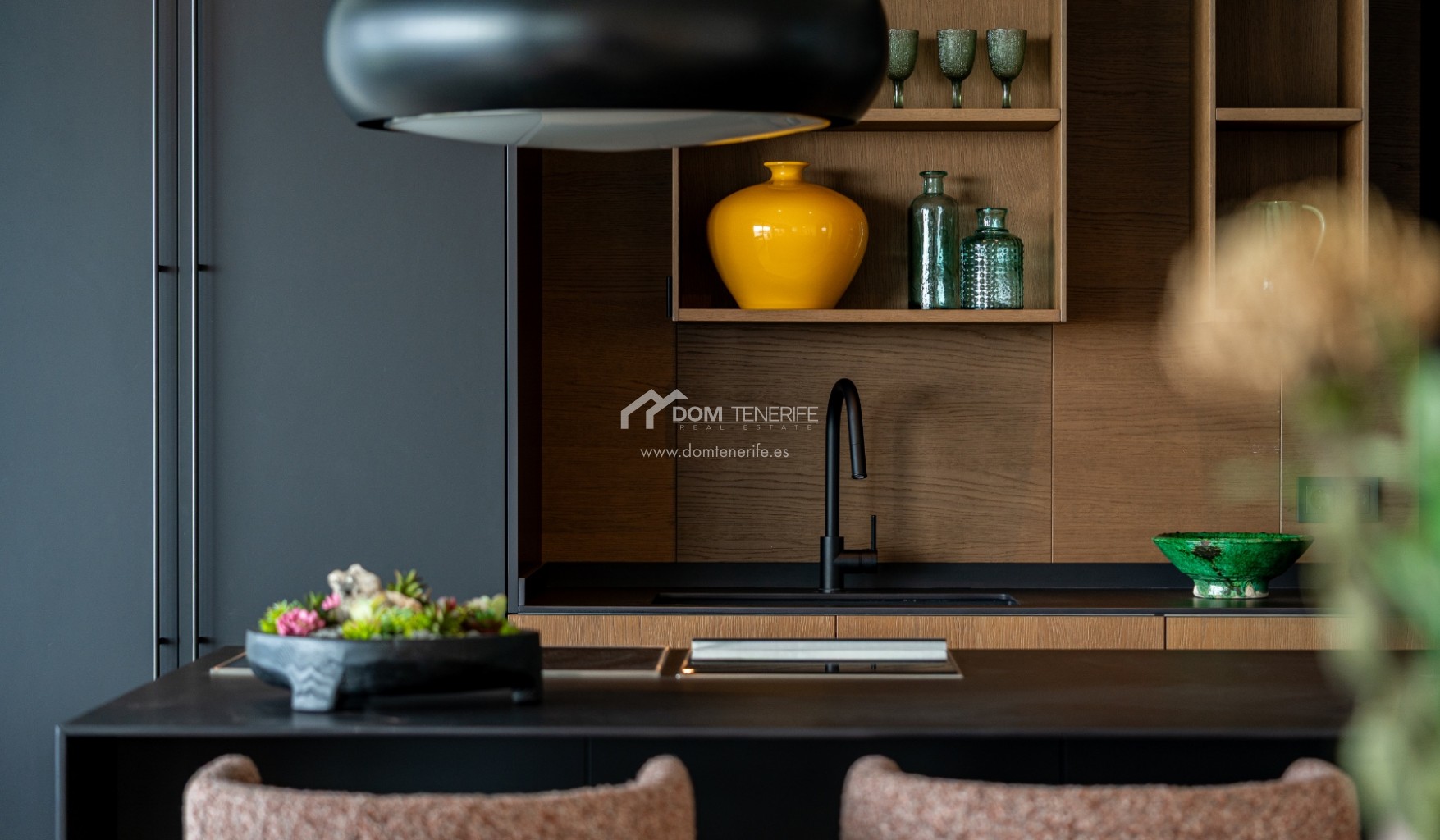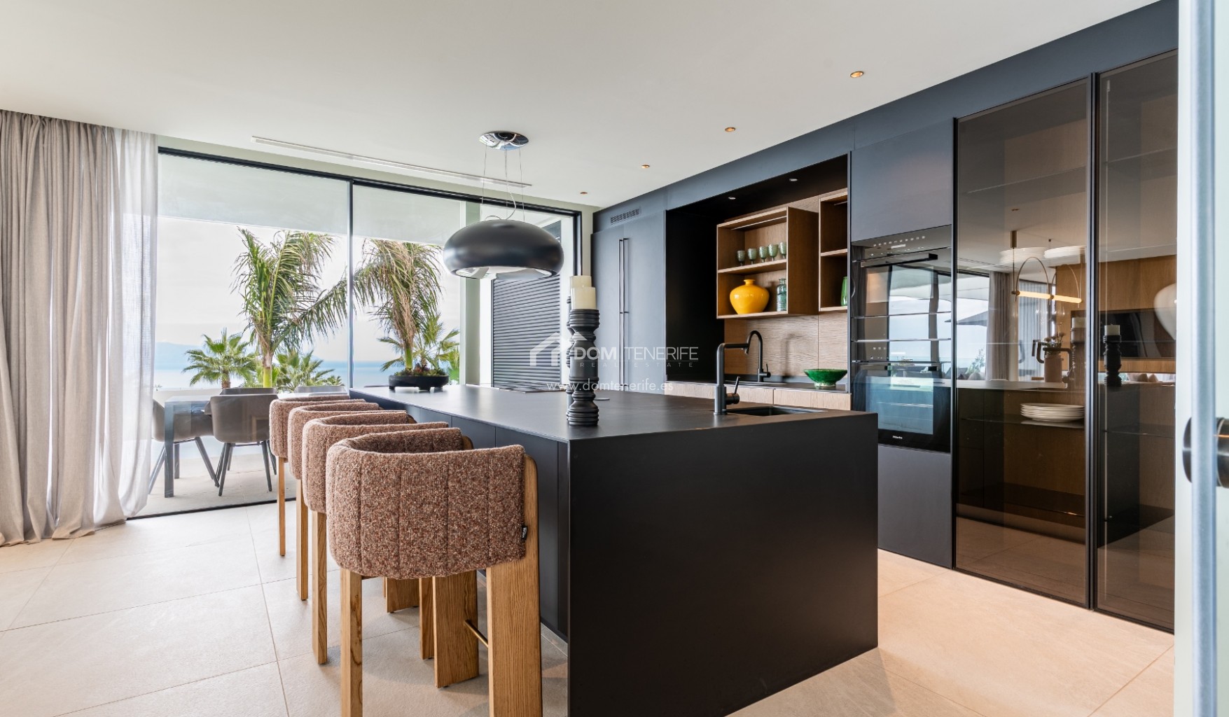 Private GaragenDiese beeindruckende Villa, entworfen vom renommierten Architekten Leonardo Omar, ist ein wahres Juwel der zeitgenössischen Architektur. Komplett fertiggestellt und elegant eingerichtet, wurde jedes Detail sorgfältig ausgewählt, um eine Atmosphäre von Luxus, Komfort und modernem Design zu schaffen. Mit einer bebauten Fläche von 430 m² auf einem Grundstück von 772 m² verfügt das Anwesen über vier geräumige Schlafzimmer, alle mit eigenem Bad, Einbauschränken und direktem Zugang zu einem üppigen tropischen Garten, der selbst ein Kunstwerk ist. Designermöbel, Dekorationsgegenstände und hochwertige Oberflächen schaffen ein harmonisches und raffiniertes Ambiente. Der Haupteingang im Erdgeschoss führt in eine elegante Eingangshalle, die mit drei Schlafzimmern mit Blick auf den Garten verbunden ist, alle mit eigenem Bad, einige davon mit Außenbadewannen, die ein einzigartiges Entspannungserlebnis bieten. Eine moderne Treppe und ein privater Aufzug führen in das Obergeschoss, wo sich das Herzstück des Hauses befindet: ein geräumiges und helles Wohnzimmer, das mit dem Esszimmer und der Designerküche mit hochwertigen Geräten verbunden ist. Hinter Glaswänden verbirgt sich ein eleganter, klimatisierter Weinkeller, perfekt für Weinliebhaber. Der Wohnbereich öffnet sich zu einer großen Terrasse mit Infinity-Pool und Panoramablick auf das Resort Abama und den Atlantik. Auf dieser Ebene ergänzt eine Außenküche mit Grill und Spüle den Raum und schafft die ideale Atmosphäre für Abendessen im Freien und unvergessliche Zusammenkünfte. Im Untergeschoss bietet die Villa eine geräumige Garage, einen Waschraum und ein zusätzliches Badezimmer. Darüber hinaus verfügt sie über ein separates, voll ausgestattetes Gästeapartment mit eigener Küche, das die Privatsphäre seiner Bewohner gewährleistet. Diese Immobilie befindet sich im renommierten Abama Resort und verbindet auf perfekte Weise Luxus, Privatsphäre und zeitgenössisches Design. Sie bietet einen exklusiven Lebensstil in einer der privilegiertesten Umgebungen im Süden Teneriffas. | Gemeinschaftsgebühren: 202 €/Quartal | Grundsteuer: 1.686 €/Jahr.
