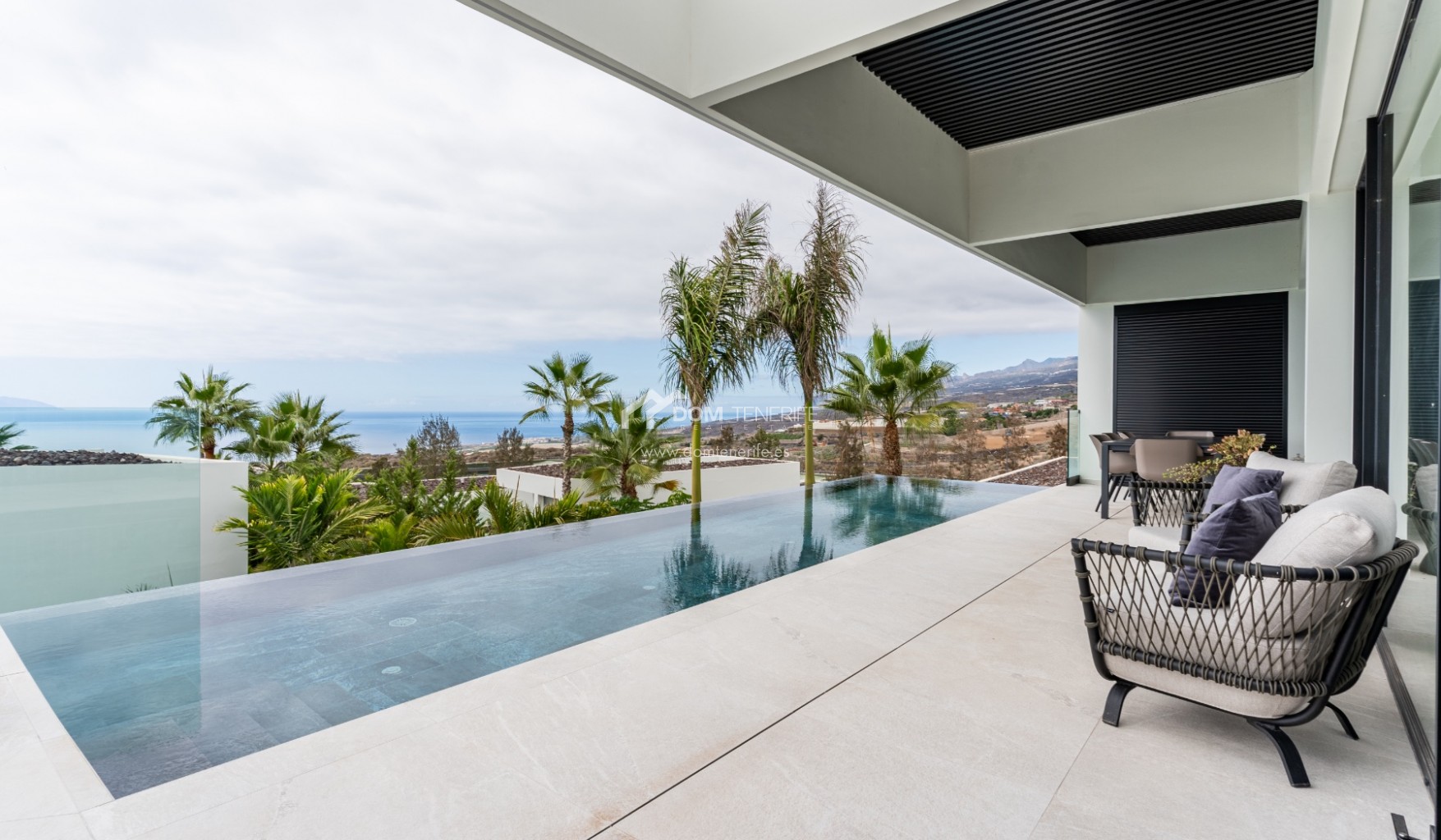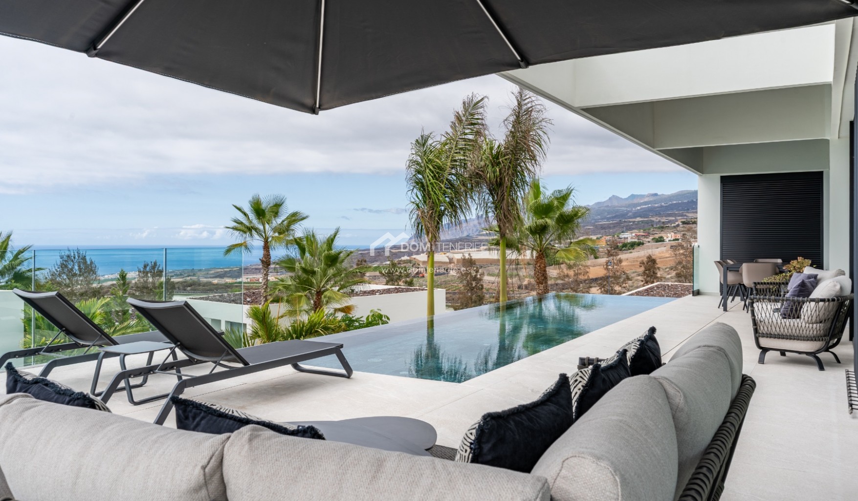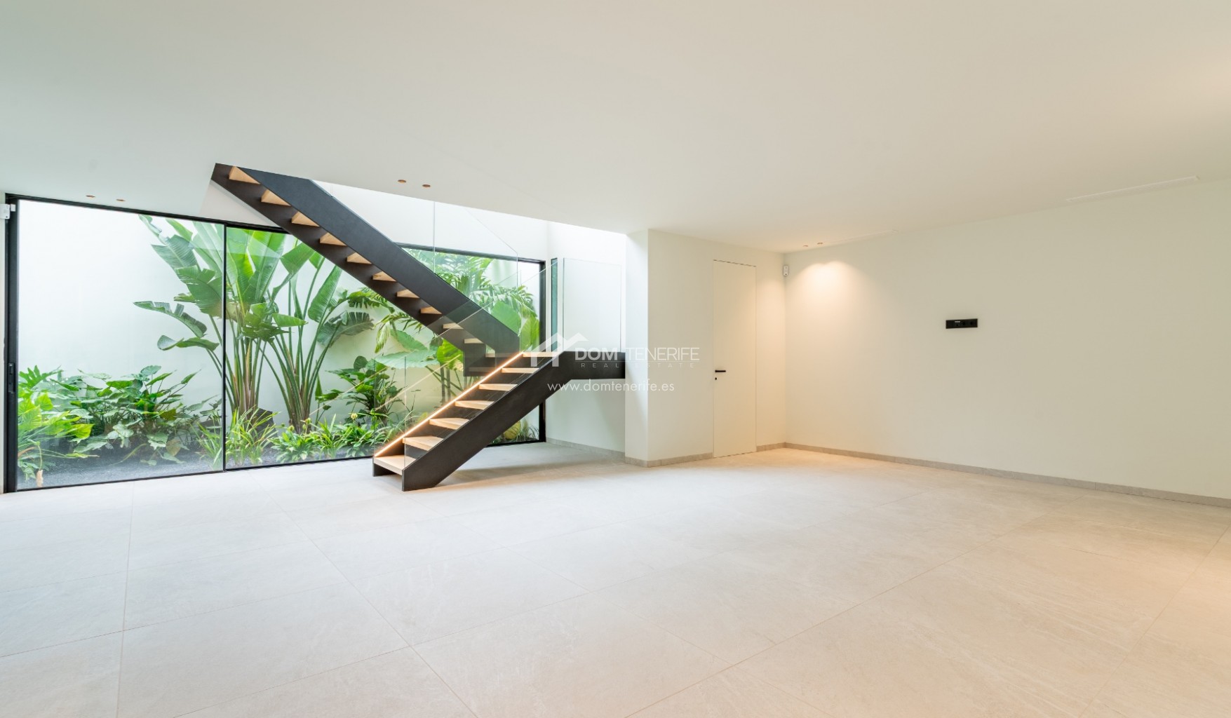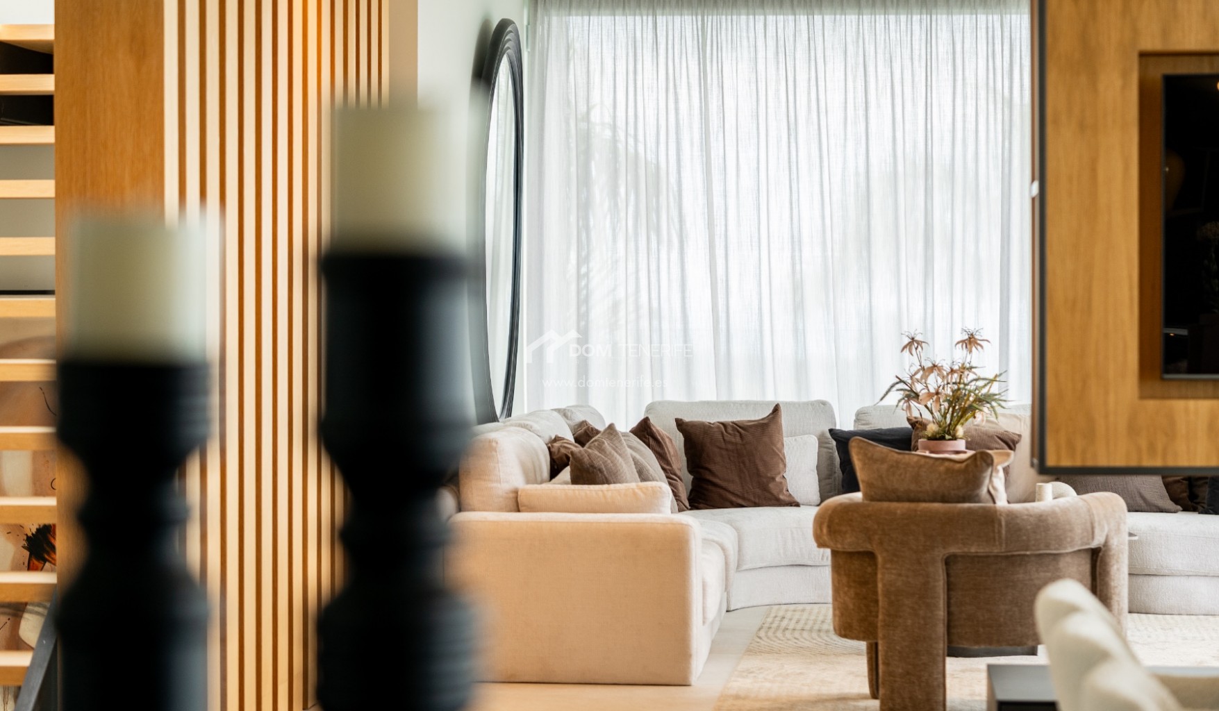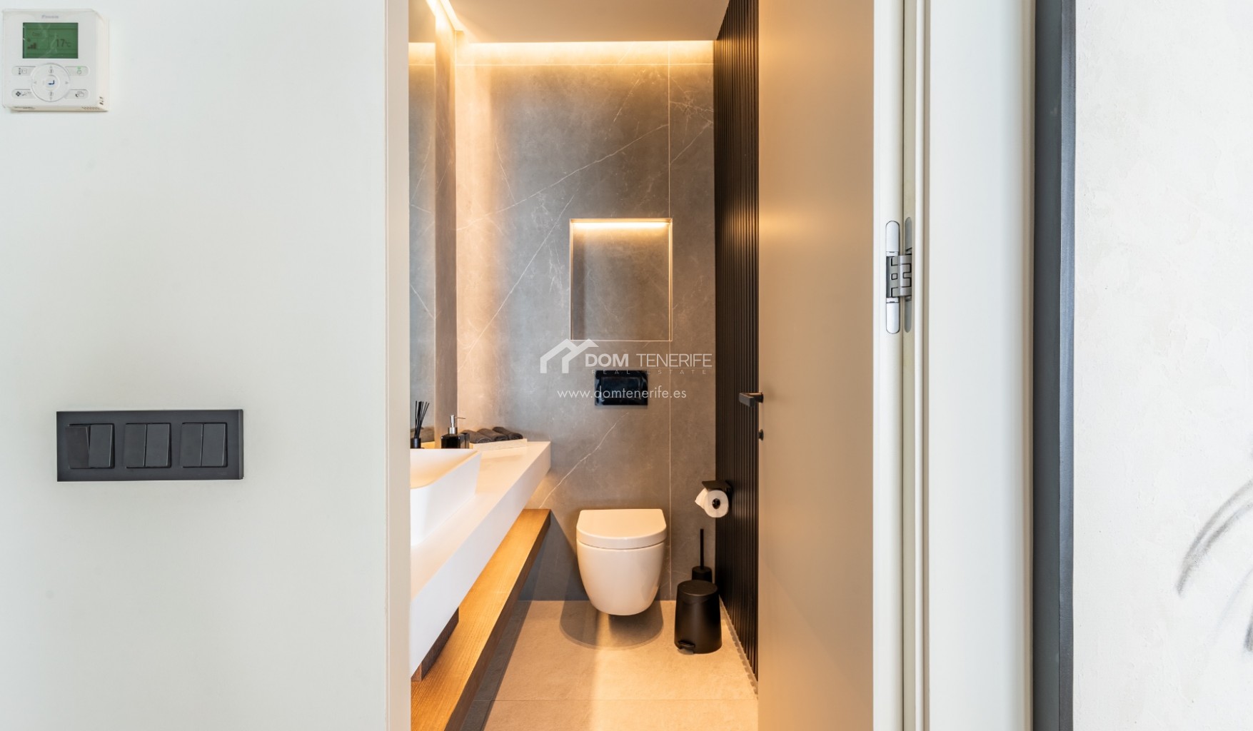 Private GaragenDiese beeindruckende Villa, entworfen vom renommierten Architekten Leonardo Omar, ist ein wahres Juwel der zeitgenössischen Architektur. Komplett fertiggestellt und elegant eingerichtet, wurde jedes Detail sorgfältig ausgewählt, um eine Atmosphäre von Luxus, Komfort und modernem Design zu schaffen. Mit einer bebauten Fläche von 430 m² auf einem Grundstück von 772 m² verfügt das Anwesen über vier geräumige Schlafzimmer, alle mit eigenem Bad, Einbauschränken und direktem Zugang zu einem üppigen tropischen Garten, der selbst ein Kunstwerk ist. Designermöbel, Dekorationsgegenstände und hochwertige Oberflächen schaffen ein harmonisches und raffiniertes Ambiente. Der Haupteingang im Erdgeschoss führt in eine elegante Eingangshalle, die mit drei Schlafzimmern mit Blick auf den Garten verbunden ist, alle mit eigenem Bad, einige davon mit Außenbadewannen, die ein einzigartiges Entspannungserlebnis bieten. Eine moderne Treppe und ein privater Aufzug führen in das Obergeschoss, wo sich das Herzstück des Hauses befindet: ein geräumiges und helles Wohnzimmer, das mit dem Esszimmer und der Designerküche mit hochwertigen Geräten verbunden ist. Hinter Glaswänden verbirgt sich ein eleganter, klimatisierter Weinkeller, perfekt für Weinliebhaber. Der Wohnbereich öffnet sich zu einer großen Terrasse mit Infinity-Pool und Panoramablick auf das Resort Abama und den Atlantik. Auf dieser Ebene ergänzt eine Außenküche mit Grill und Spüle den Raum und schafft die ideale Atmosphäre für Abendessen im Freien und unvergessliche Zusammenkünfte. Im Untergeschoss bietet die Villa eine geräumige Garage, einen Waschraum und ein zusätzliches Badezimmer. Darüber hinaus verfügt sie über ein separates, voll ausgestattetes Gästeapartment mit eigener Küche, das die Privatsphäre seiner Bewohner gewährleistet. Diese Immobilie befindet sich im renommierten Abama Resort und verbindet auf perfekte Weise Luxus, Privatsphäre und zeitgenössisches Design. Sie bietet einen exklusiven Lebensstil in einer der privilegiertesten Umgebungen im Süden Teneriffas. | Gemeinschaftsgebühren: 202 €/Quartal | Grundsteuer: 1.686 €/Jahr.