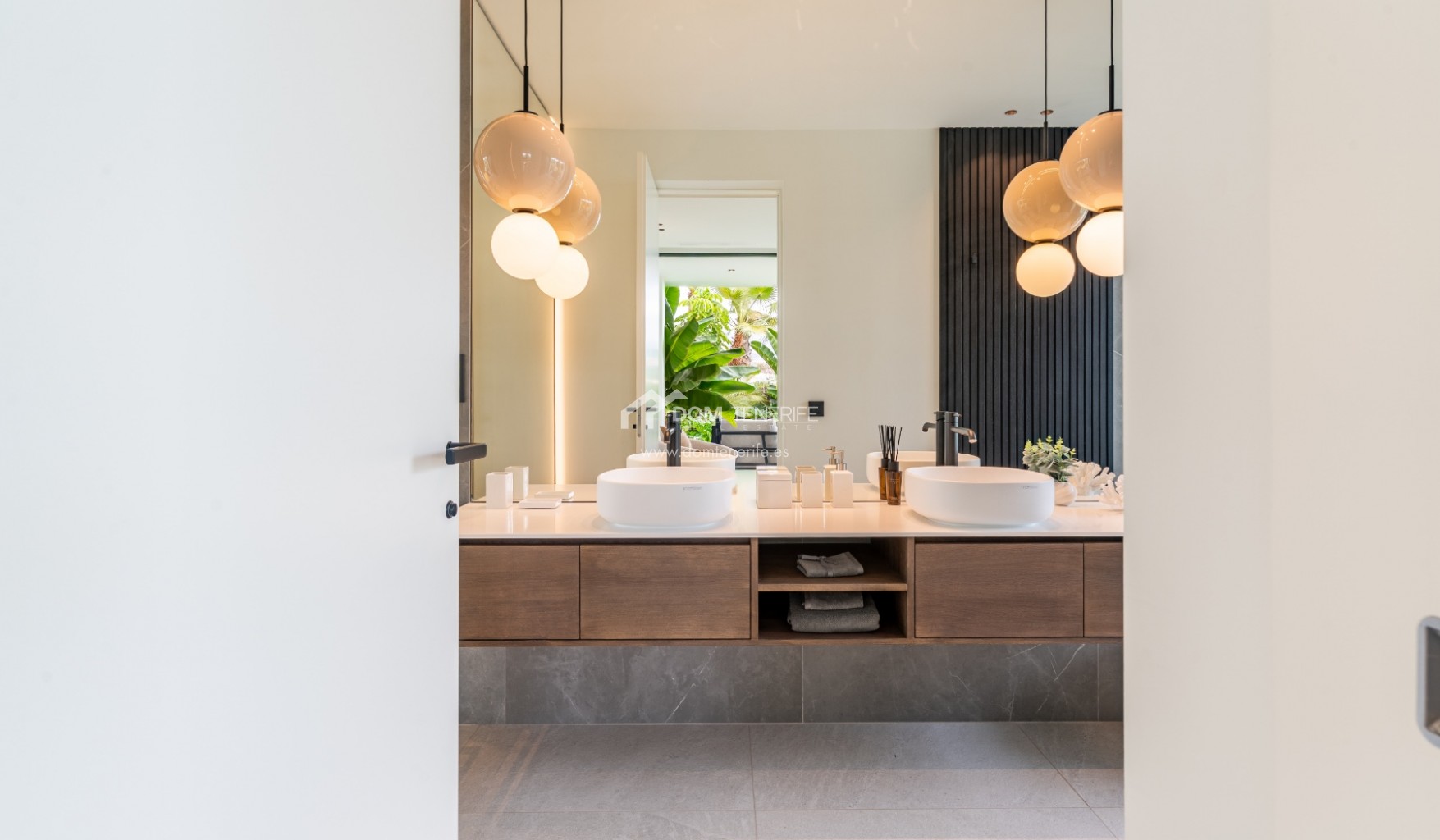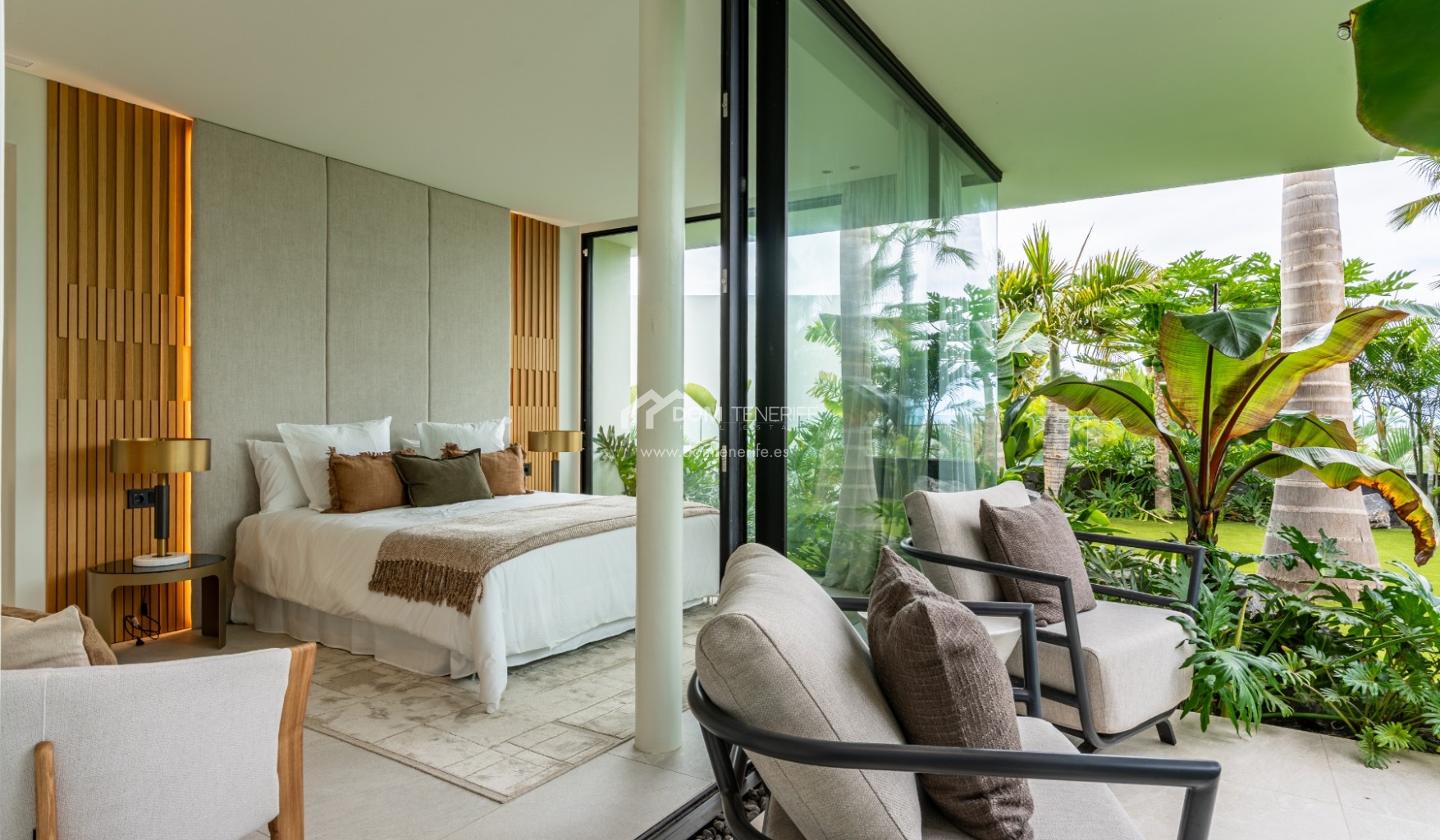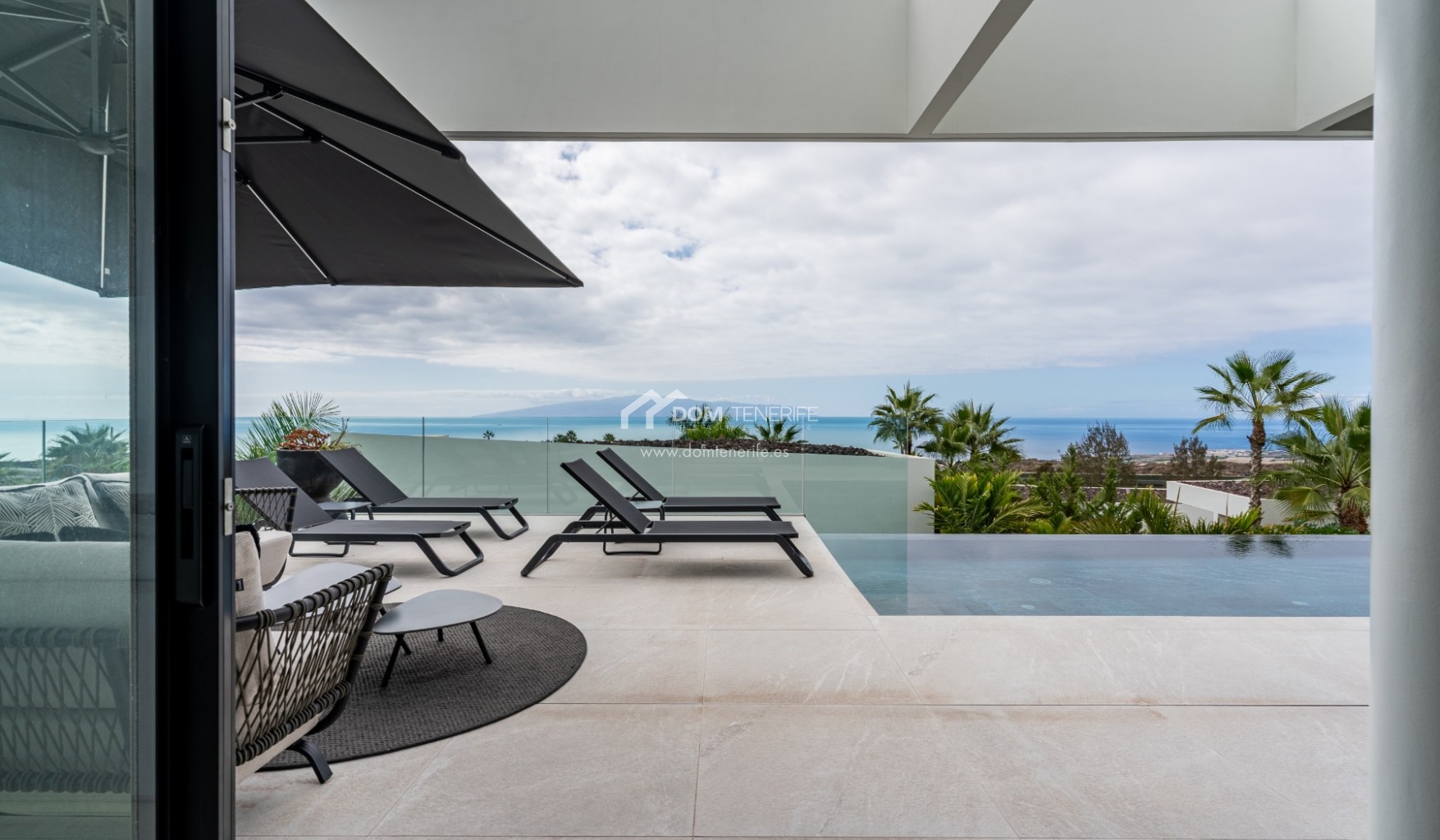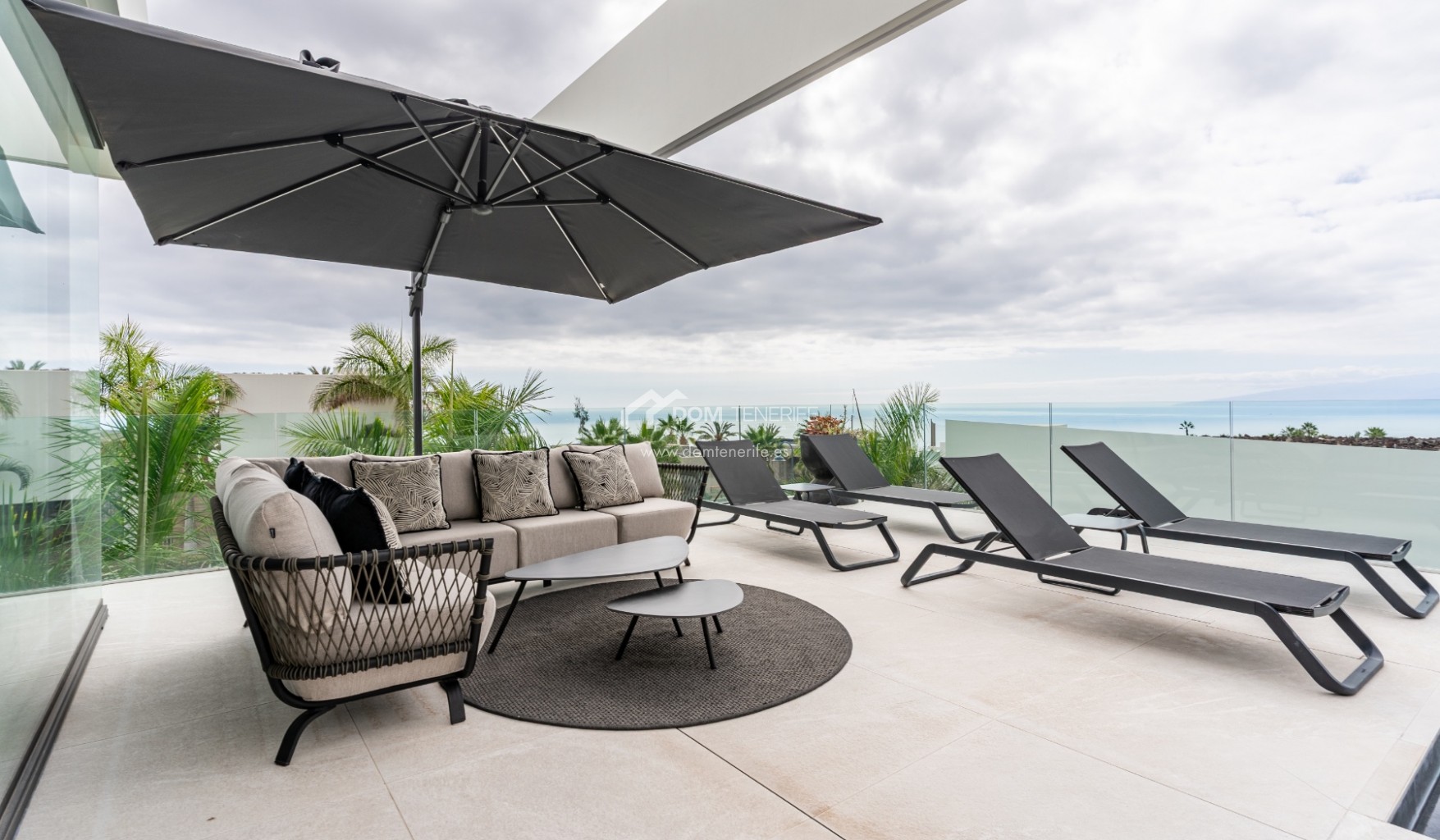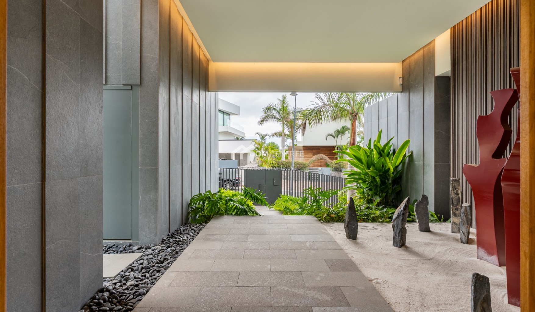 Private GaragenDiese beeindruckende Villa, entworfen vom renommierten Architekten Leonardo Omar, ist ein wahres Juwel der zeitgenössischen Architektur. Komplett fertiggestellt und elegant eingerichtet, wurde jedes Detail sorgfältig ausgewählt, um eine Atmosphäre von Luxus, Komfort und modernem Design zu schaffen. Mit einer bebauten Fläche von 430 m² auf einem Grundstück von 772 m² verfügt das Anwesen über vier geräumige Schlafzimmer, alle mit eigenem Bad, Einbauschränken und direktem Zugang zu einem üppigen tropischen Garten, der selbst ein Kunstwerk ist. Designermöbel, Dekorationsgegenstände und hochwertige Oberflächen schaffen ein harmonisches und raffiniertes Ambiente. Der Haupteingang im Erdgeschoss führt in eine elegante Eingangshalle, die mit drei Schlafzimmern mit Blick auf den Garten verbunden ist, alle mit eigenem Bad, einige davon mit Außenbadewannen, die ein einzigartiges Entspannungserlebnis bieten. Eine moderne Treppe und ein privater Aufzug führen in das Obergeschoss, wo sich das Herzstück des Hauses befindet: ein geräumiges und helles Wohnzimmer, das mit dem Esszimmer und der Designerküche mit hochwertigen Geräten verbunden ist. Hinter Glaswänden verbirgt sich ein eleganter, klimatisierter Weinkeller, perfekt für Weinliebhaber. Der Wohnbereich öffnet sich zu einer großen Terrasse mit Infinity-Pool und Panoramablick auf das Resort Abama und den Atlantik. Auf dieser Ebene ergänzt eine Außenküche mit Grill und Spüle den Raum und schafft die ideale Atmosphäre für Abendessen im Freien und unvergessliche Zusammenkünfte. Im Untergeschoss bietet die Villa eine geräumige Garage, einen Waschraum und ein zusätzliches Badezimmer. Darüber hinaus verfügt sie über ein separates, voll ausgestattetes Gästeapartment mit eigener Küche, das die Privatsphäre seiner Bewohner gewährleistet. Diese Immobilie befindet sich im renommierten Abama Resort und verbindet auf perfekte Weise Luxus, Privatsphäre und zeitgenössisches Design. Sie bietet einen exklusiven Lebensstil in einer der privilegiertesten Umgebungen im Süden Teneriffas. | Gemeinschaftsgebühren: 202 €/Quartal | Grundsteuer: 1.686 €/Jahr.