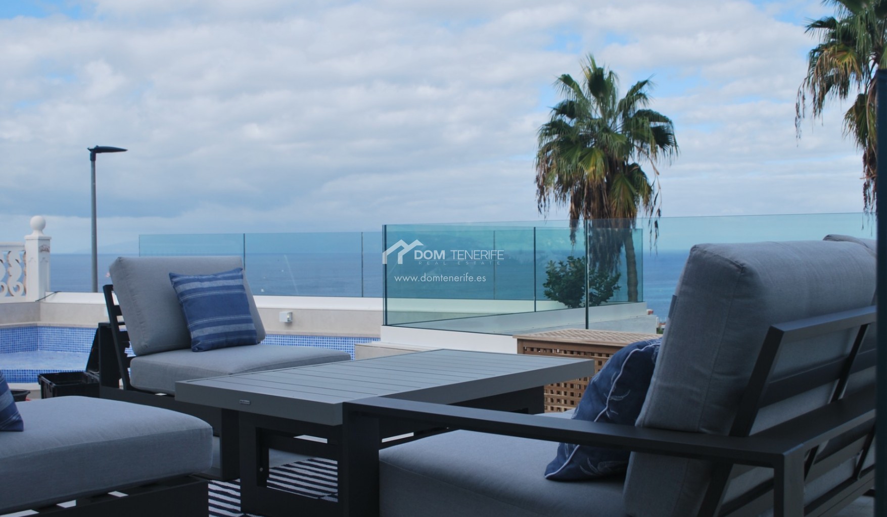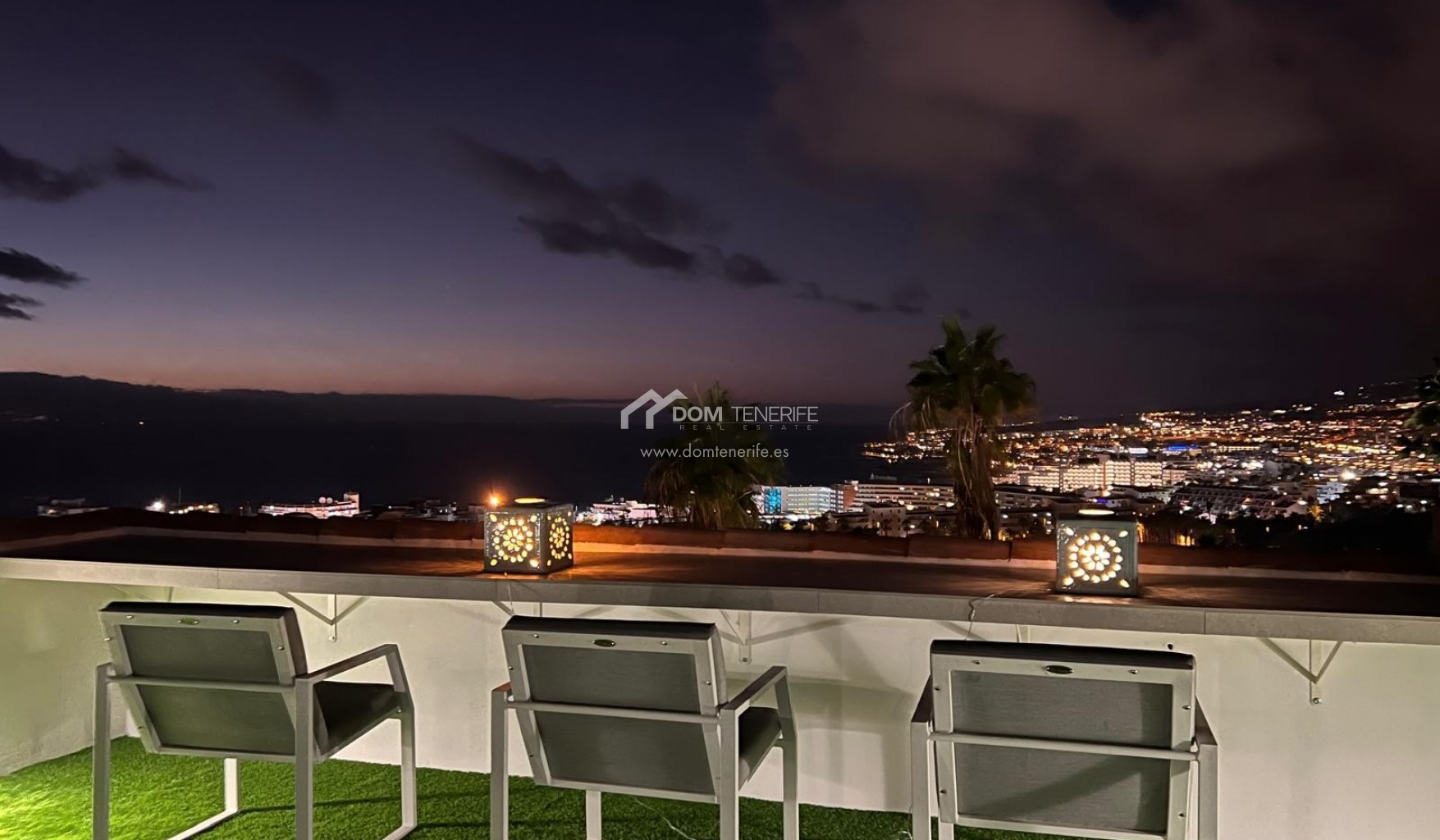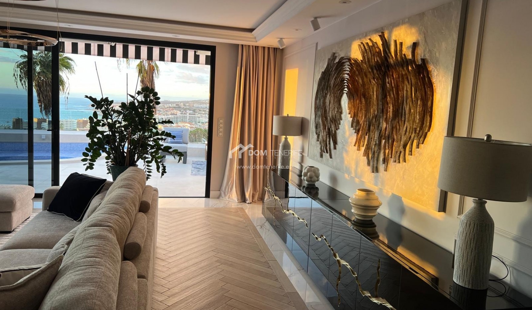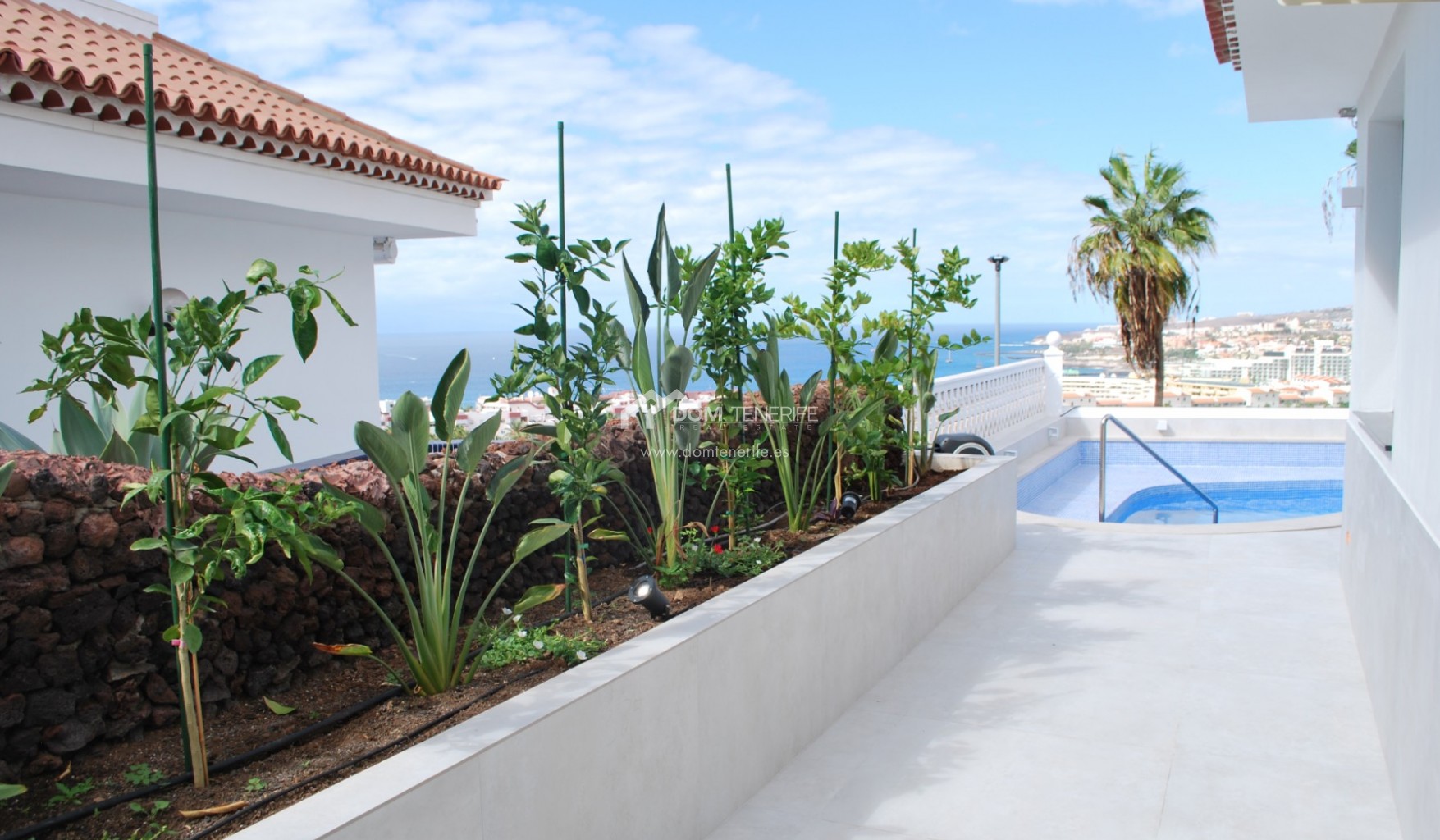 Private garageDOM TENERIFE – BUY WITH CONFIDENCE. This magnificent luxury villa is located in the exclusive area of San Eugenio Alto, in Costa Adeje, and offers unparalleled views of the ocean and the island of La Gomera. From the living room, master bedroom, terraces, and private pool, you can enjoy a unique landscape overlooking the coast and the sea that only a property like this can offer. The villa's strategic location allows you to contemplate spectacular sunsets, the deep blue of the ocean, and the twinkling lights of the city, creating the perfect setting to enjoy a life of luxury, comfort, and privacy. This exceptional detached villa, fully renovated and ready to move into, is distributed over two floors. At the entrance, you will find a garage and a complete studio ideal for guests. Ascending the staircase, we access the main house, which boasts a private pool, three bedrooms (one en suite), two full bathrooms, a guest toilet, an office/study, a fully equipped independent kitchen, and spacious terraces that surround the house, offering perfect spaces to relax and enjoy the breathtaking views and truly spectacular sunsets. The villa's terraces encircle the entire property and provide access to the pool. With luxurious finishes throughout and unbeatable views of the sea and La Gomera, this property represents a unique opportunity to acquire a true piece of paradise. As an added gem, the villa features a spectacular rooftop chill-out terrace with panoramic views of La Gomera, ideal for creating unforgettable moments. Don't miss the opportunity to make this exceptional property yours. Call me now to arrange a viewing.