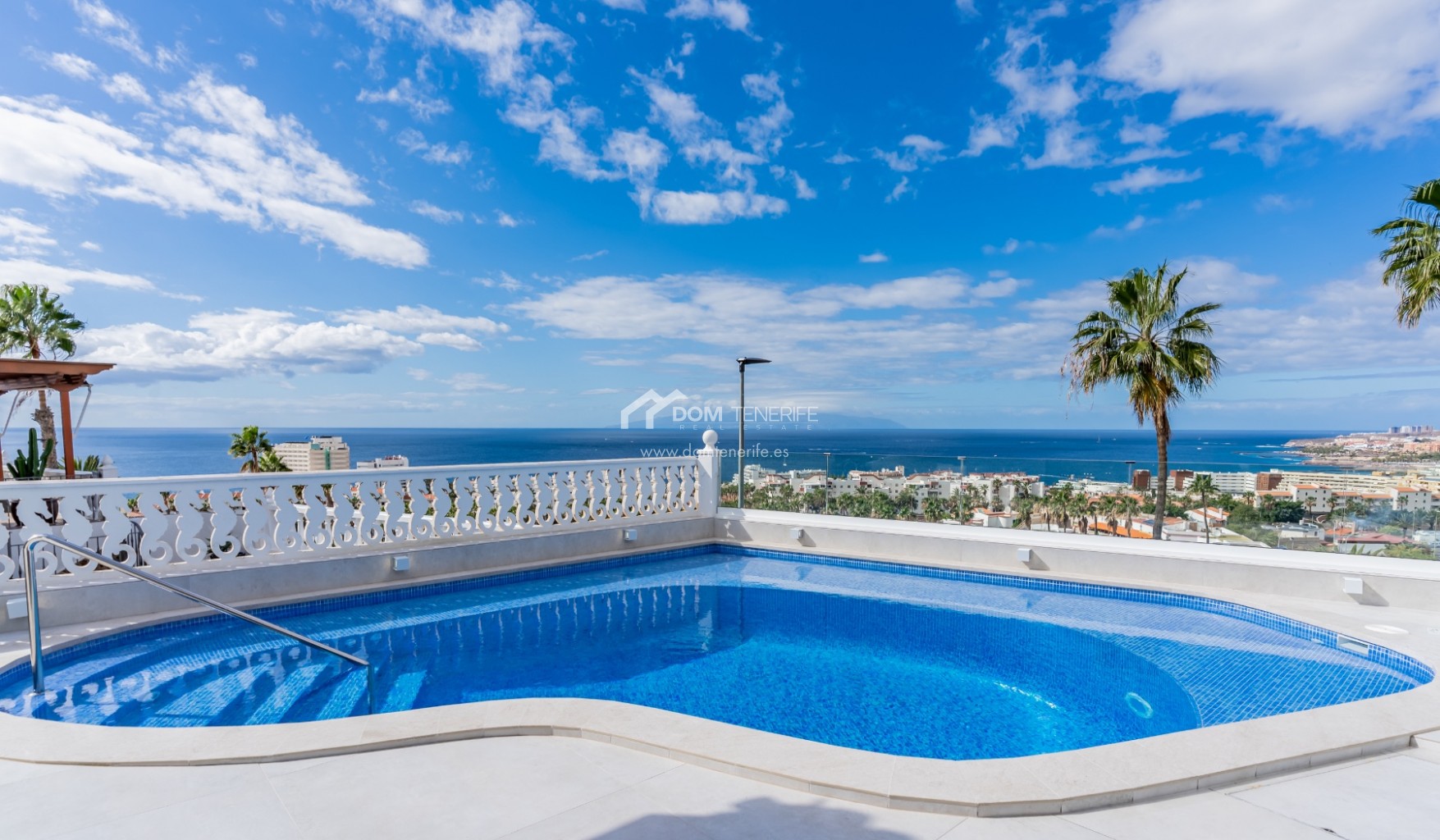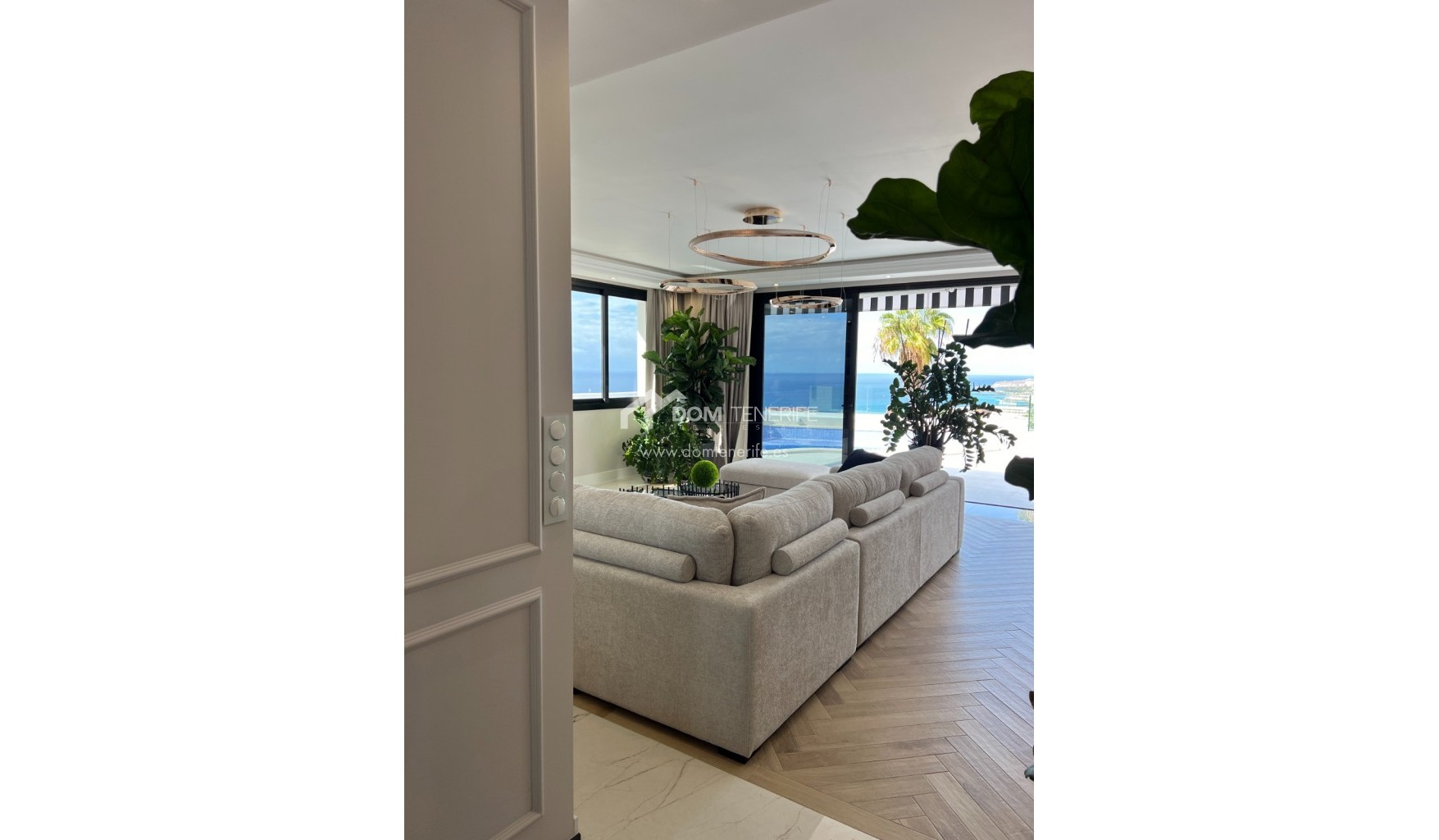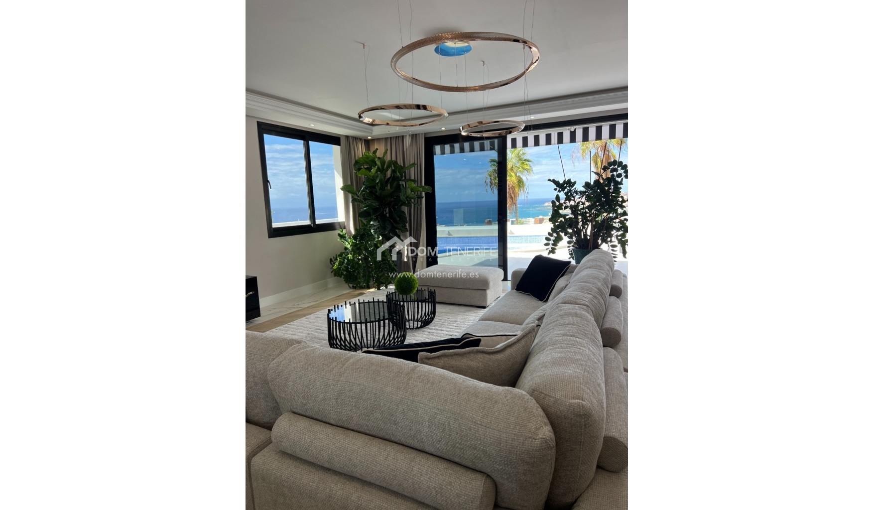 Private garageDOM TENERIFE – BUY WITH CONFIDENCE. This magnificent luxury villa is located in the exclusive area of San Eugenio Alto, in Costa Adeje, and offers unparalleled views of the ocean and the island of La Gomera. From the living room, master bedroom, terraces, and private pool, you can enjoy a unique landscape overlooking the coast and the sea that only a property like this can offer. The villa's strategic location allows you to contemplate spectacular sunsets, the deep blue of the ocean, and the twinkling lights of the city, creating the perfect setting to enjoy a life of luxury, comfort, and privacy. This exceptional detached villa, fully renovated and ready to move into, is distributed over two floors. At the entrance, you will find a garage and a complete studio ideal for guests. Ascending the staircase, we access the main house, which boasts a private pool, three bedrooms (one en suite), two full bathrooms, a guest toilet, an office/study, a fully equipped independent kitchen, and spacious terraces that surround the house, offering perfect spaces to relax and enjoy the breathtaking views and truly spectacular sunsets. The villa's terraces encircle the entire property and provide access to the pool. With luxurious finishes throughout and unbeatable views of the sea and La Gomera, this property represents a unique opportunity to acquire a true piece of paradise. As an added gem, the villa features a spectacular rooftop chill-out terrace with panoramic views of La Gomera, ideal for creating unforgettable moments. Don't miss the opportunity to make this exceptional property yours. Call me now to arrange a viewing.