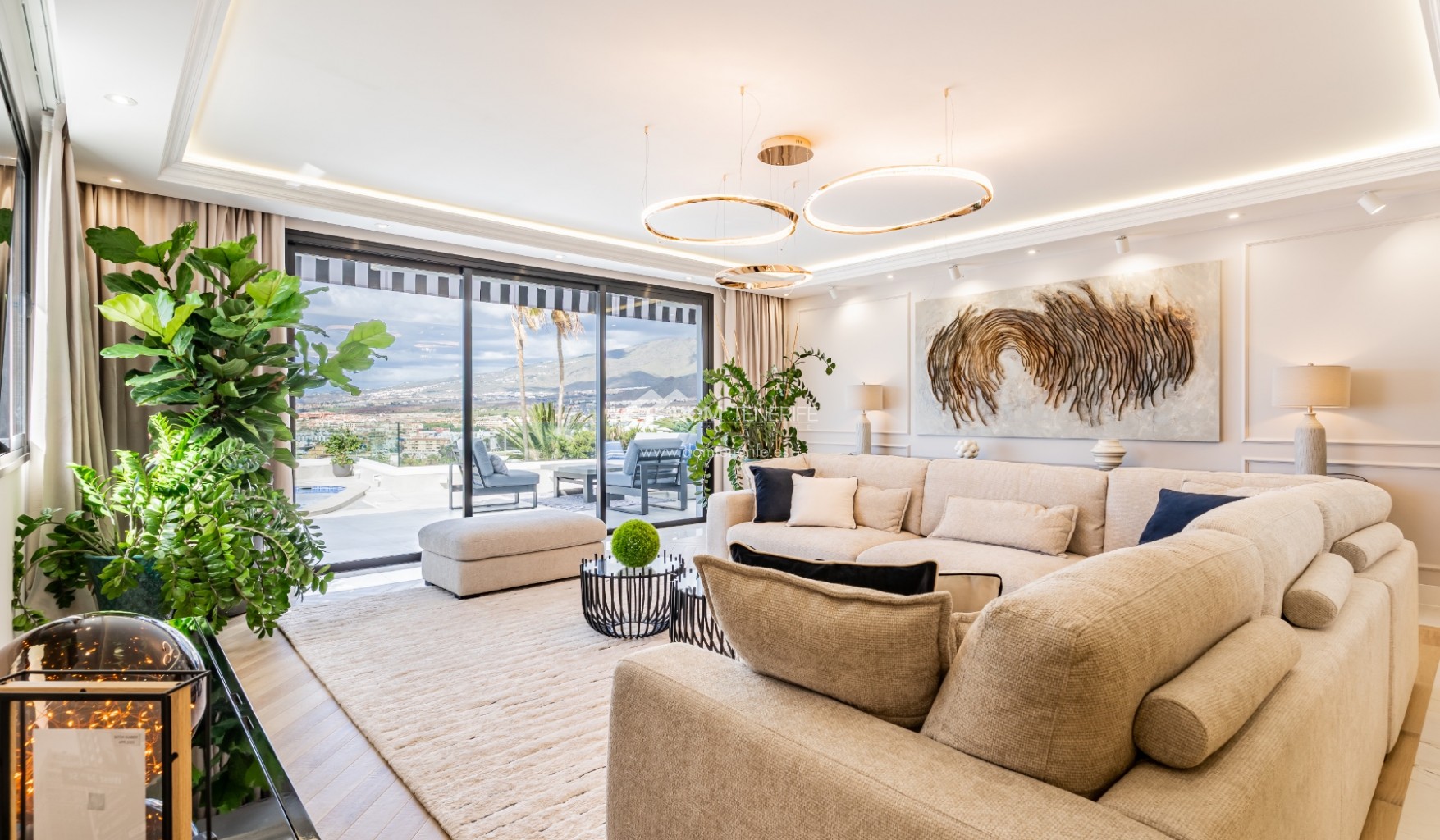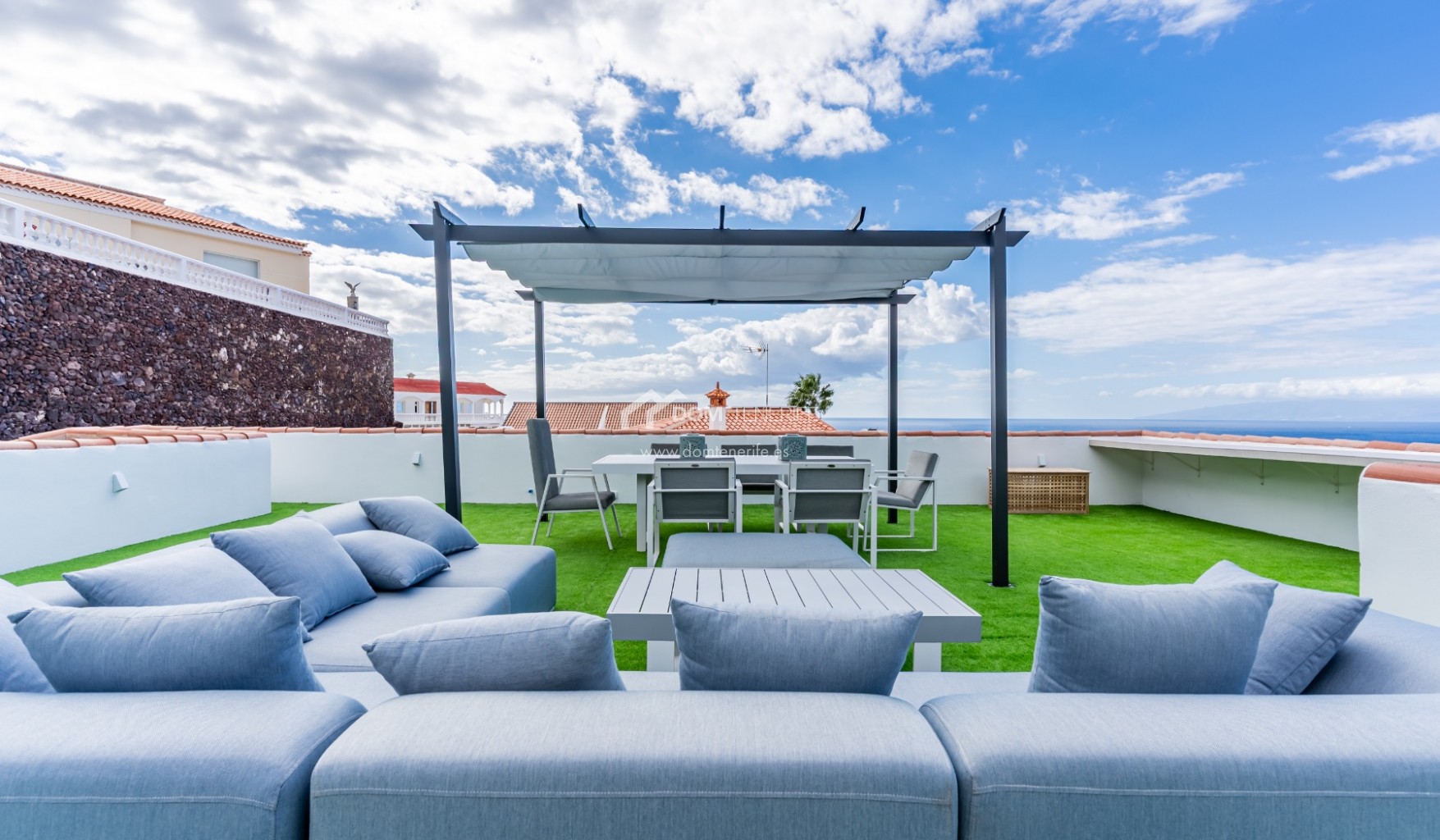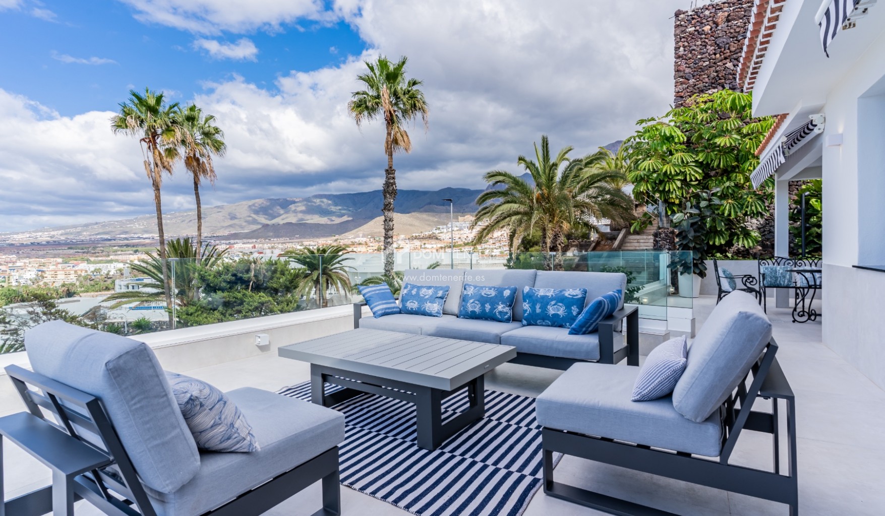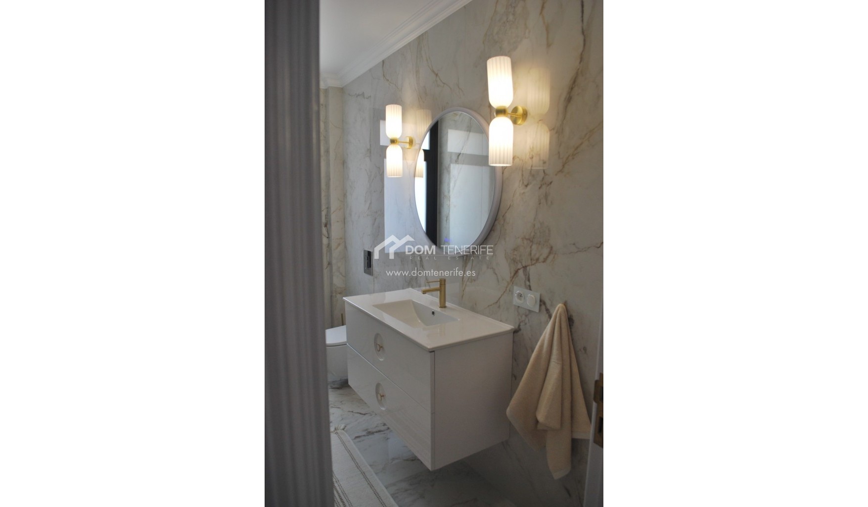 Private garageDOM TENERIFE – BUY WITH CONFIDENCE. This magnificent luxury villa is located in the exclusive area of San Eugenio Alto, in Costa Adeje, and offers unparalleled views of the ocean and the island of La Gomera. From the living room, master bedroom, terraces, and private pool, you can enjoy a unique landscape overlooking the coast and the sea that only a property like this can offer. The villa's strategic location allows you to contemplate spectacular sunsets, the deep blue of the ocean, and the twinkling lights of the city, creating the perfect setting to enjoy a life of luxury, comfort, and privacy. This exceptional detached villa, fully renovated and ready to move into, is distributed over two floors. At the entrance, you will find a garage and a complete studio ideal for guests. Ascending the staircase, we access the main house, which boasts a private pool, three bedrooms (one en suite), two full bathrooms, a guest toilet, an office/study, a fully equipped independent kitchen, and spacious terraces that surround the house, offering perfect spaces to relax and enjoy the breathtaking views and truly spectacular sunsets. The villa's terraces encircle the entire property and provide access to the pool. With luxurious finishes throughout and unbeatable views of the sea and La Gomera, this property represents a unique opportunity to acquire a true piece of paradise. As an added gem, the villa features a spectacular rooftop chill-out terrace with panoramic views of La Gomera, ideal for creating unforgettable moments. Don't miss the opportunity to make this exceptional property yours. Call me now to arrange a viewing.