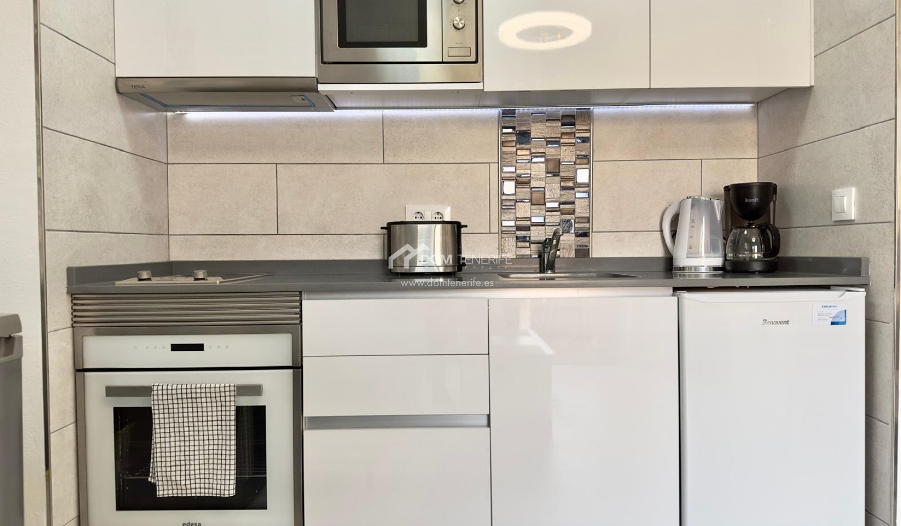 On the streetThis cozy long term apartment is located in the Compostela Beach Building, just 50 meters from Las Vistas Beach. It consists of one bedroom and one bathroom, a furnished and equipped kitchen with all necessary appliances and fitted closets for convenience. The location of the apartment is excellent, as it is located in the heart of the city center. The complex has a heated swimming pool, as well as large green areas where you can relax and enjoy the sun. From the balcony of the apartment you can enjoy views of the communal area. To ensure the tranquility of all residents, pets are not allowed. The rental price is 1600 € per month + bils. Don't miss the opportunity to live in this paradisiacal place!