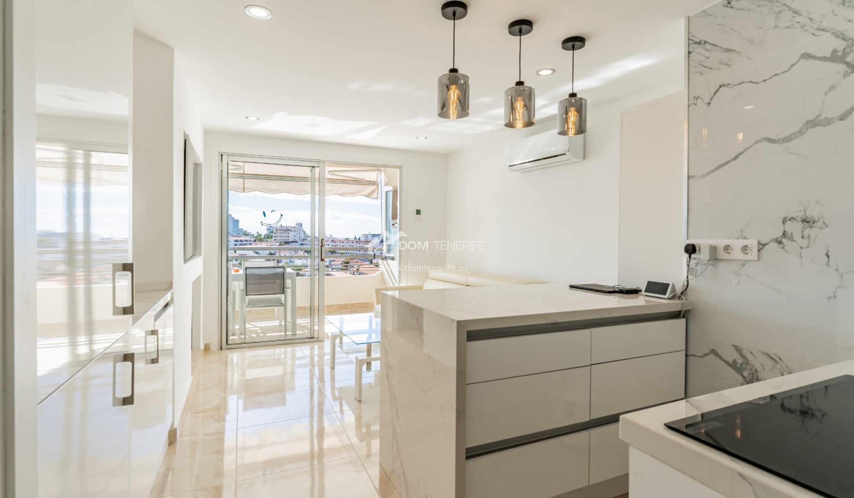 On-street parkingDom Tenerife Real Estate is pleased to present a stunning, fully renovated one-bedroom apartment, located in one of the most exclusive and sought-after areas of Costa Adeje Bajo, just a three-minute walk from the beach. Designed for comfort and elegance, the property offers a bright and spacious living area, a fully equipped modern kitchen, one stylish bedroom with built-in wardrobes, and a contemporary bathroom with a walk-in shower. Filled with natural light, terrace boasts spectacular ocean views, creating the perfect setting to relax and enjoy Tenerife’s exceptional climate. Ideally positioned just steps from Puerto Colón marina, La Pinta beach, Playa Torviscas, high-quality restaurants, boutiques, and the San Eugenio Shopping Centre, this apartment represents an excellent opportunity as a luxury holiday home, permanent residence, or as an investment. The exclusive complex features a heated communal swimming pool, lifts, tennis court, security, and reception services. Surrounded by all amenities and within walking distance of everything you may need, this property offers an unparalleled lifestyle in one of the most desirable locations in Tenerife South. This property can be yours, arrange a viewing now !