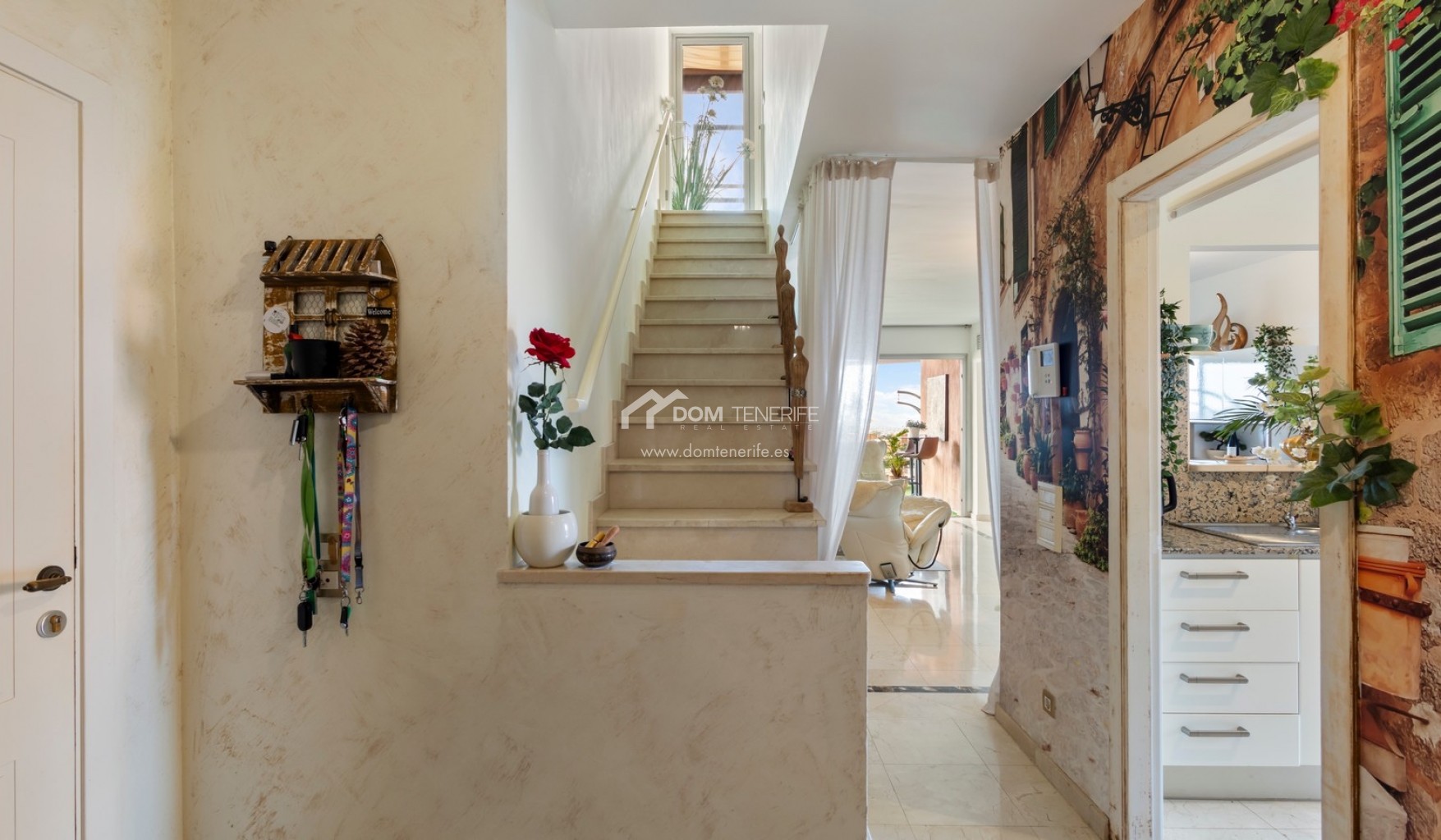 Community parkingThis exclusive penthouse for sale in Palm Mar is located in a prestigious residential complex built in 2004, positioned close to the sea, which allows for open panoramic ocean views and views towards Los Cristianos, as well as a high level of privacy. Situated on the top floor, the property enjoys abundant natural light and tranquillity, offering a built area of 242 m² and a total of 107 m² of outdoor space distributed across three generous terraces, including a main terrace directly connected to the living room and kitchen, and an impressive private rooftop solarium of 67 m², ideal for creating a lounge area, outdoor dining space or sunbathing zone to fully enjoy the year-round climate of south Tenerife. The interior layout is both comfortable and functional, featuring three bedrooms and three bathrooms, making the penthouse ideal as a primary residence, a high-end second home or a premium investment. Two underground parking spaces and a storage room are included in the price, adding significant value and convenience. The residential complex offers lift access, a communal swimming pool and beautifully maintained landscaped gardens, renowned for their quality and care, enhancing the sense of exclusivity. Located in one of the most desirable residential areas in the south of Tenerife, Palm Mar is appreciated for its peaceful atmosphere, proximity to the seafront promenade and beach, and easy access to restaurants, supermarkets, pharmacies and essential services, with Tenerife South Airport reachable in approximately 15 minutes by car. Community fees are €470 per month and the annual property tax (IBI) is €485. A truly outstanding penthouse for discerning buyers seeking sea views, privacy, generous outdoor spaces and a prime coastal location in Tenerife South. DOM Tenerife Real Estate – Buy safely!