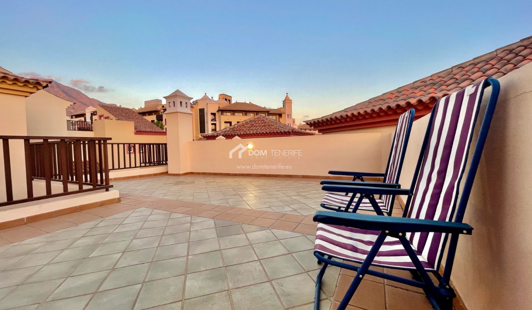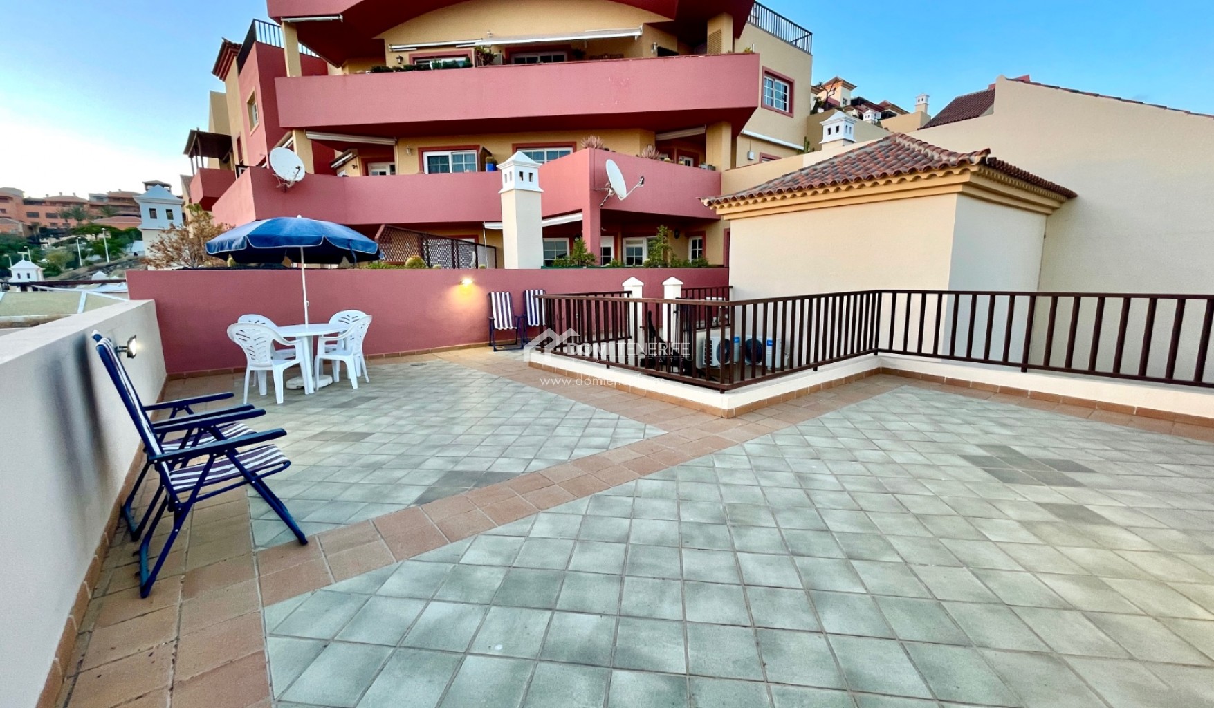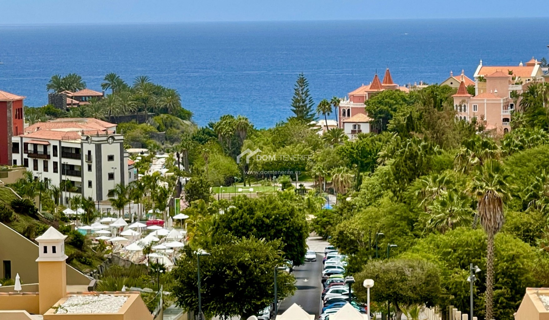 We are pleased to present this exclusive apartment in one of the most demanded areas in the South of Tenerife - El Duque. The apartment is located in the "Terrazas del Duque" complex, just a few minutes walk from the famous "Playa del Duque". It is a very spacious property, it has 99 meters of interior surface, distributed in 2 bedrooms, 2 bathrooms (one en suite), separate kitchen with a small laundry room and an interior patio to have natural light during all day. From the patio we find the access to the 96 meters of upper terrace, which as well opens a fantastic view of the ocean and the coast. The building has two heated communal swimming pools, one of them for children, and also inside the complex we can find an exclusive massage/spa center exclusively destinated for the neighbors. In the vicinity of the complex at a distance of a few minutes are all the amenities, such as pharmacy, large supermarket, shopping centers "The Duke Shops" and "Plaza del Duque", the beach promenade, etc. The apartment does not have private parking ( there are owners selling spots privately, in case needed!), but a few minutes walk away there is a large free public outdoor parking, in addition to the spaces available around the building.