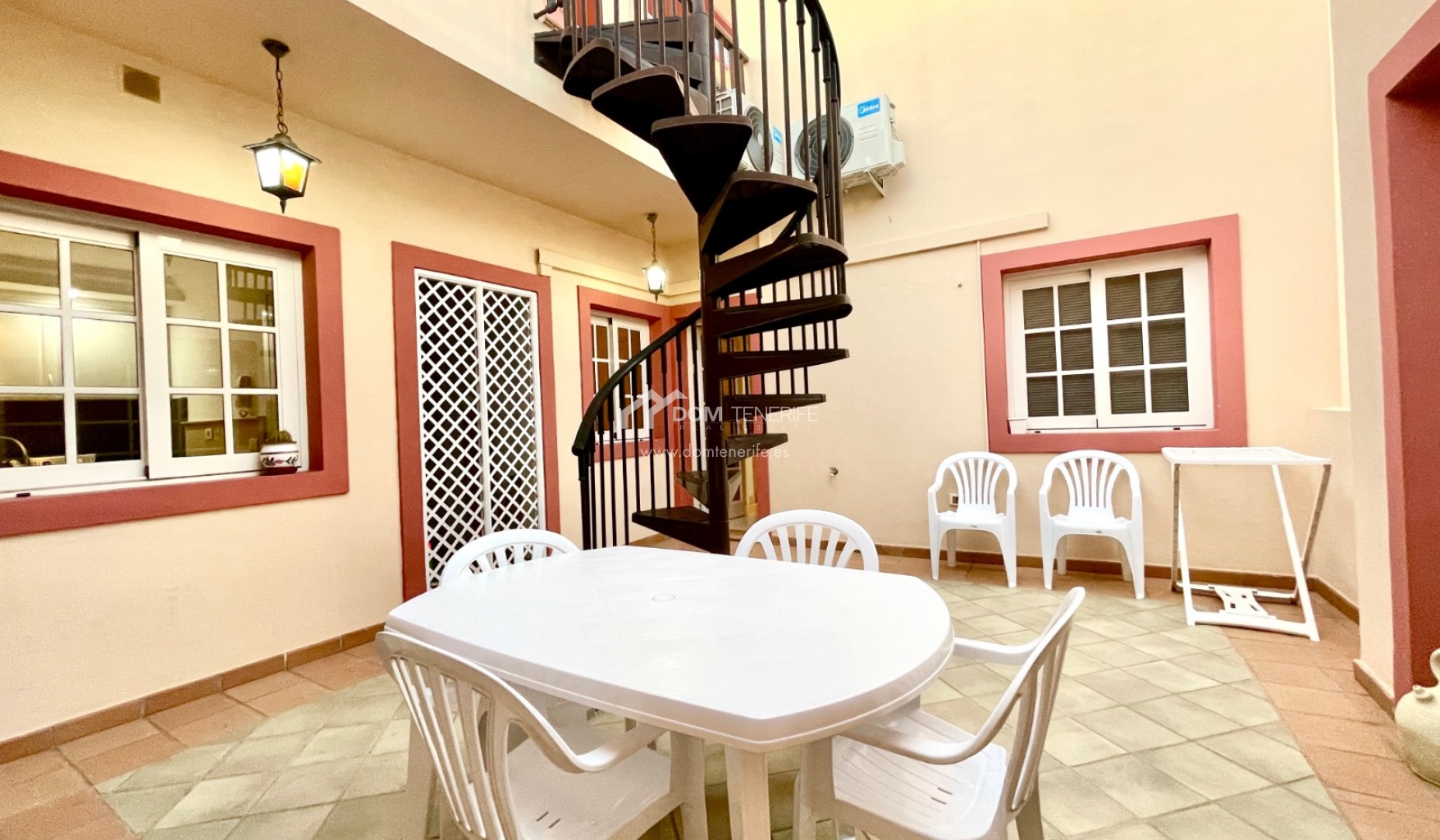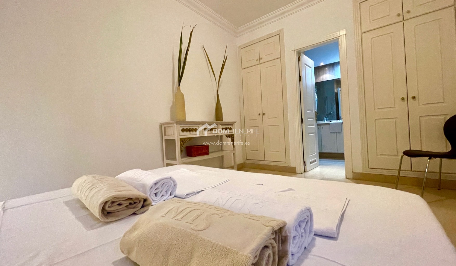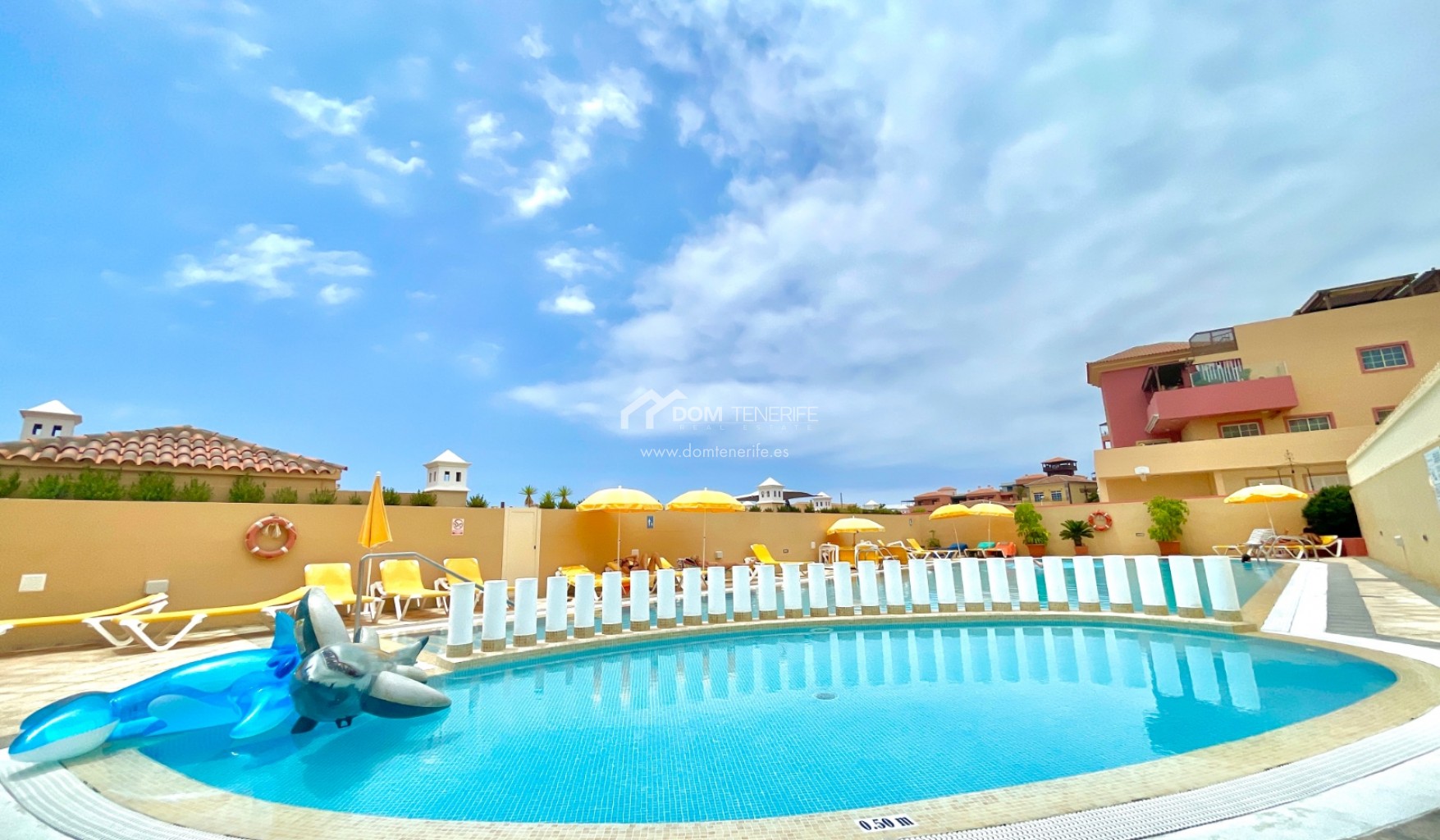 We are pleased to present this exclusive apartment in one of the most demanded areas in the South of Tenerife - El Duque. The apartment is located in the "Terrazas del Duque" complex, just a few minutes walk from the famous "Playa del Duque". It is a very spacious property, it has 99 meters of interior surface, distributed in 2 bedrooms, 2 bathrooms (one en suite), separate kitchen with a small laundry room and an interior patio to have natural light during all day. From the patio we find the access to the 96 meters of upper terrace, which as well opens a fantastic view of the ocean and the coast. The building has two heated communal swimming pools, one of them for children, and also inside the complex we can find an exclusive massage/spa center exclusively destinated for the neighbors. In the vicinity of the complex at a distance of a few minutes are all the amenities, such as pharmacy, large supermarket, shopping centers "The Duke Shops" and "Plaza del Duque", the beach promenade, etc. The apartment does not have private parking ( there are owners selling spots privately, in case needed!), but a few minutes walk away there is a large free public outdoor parking, in addition to the spaces available around the building.