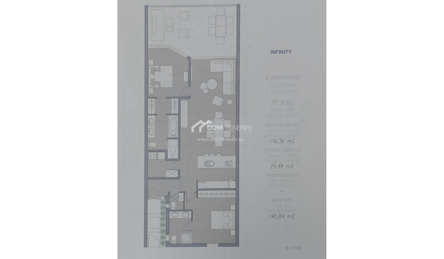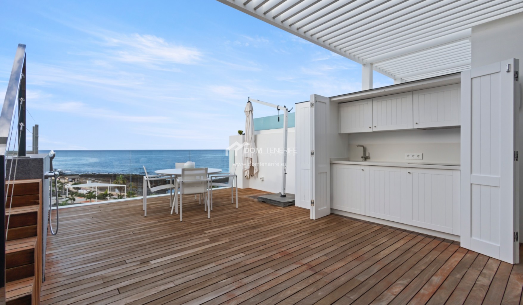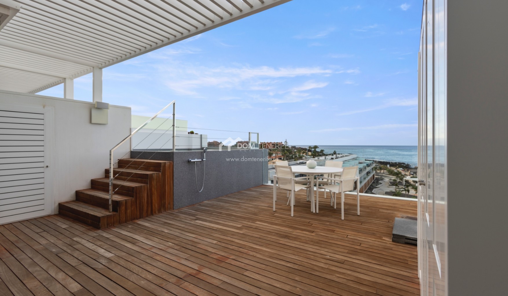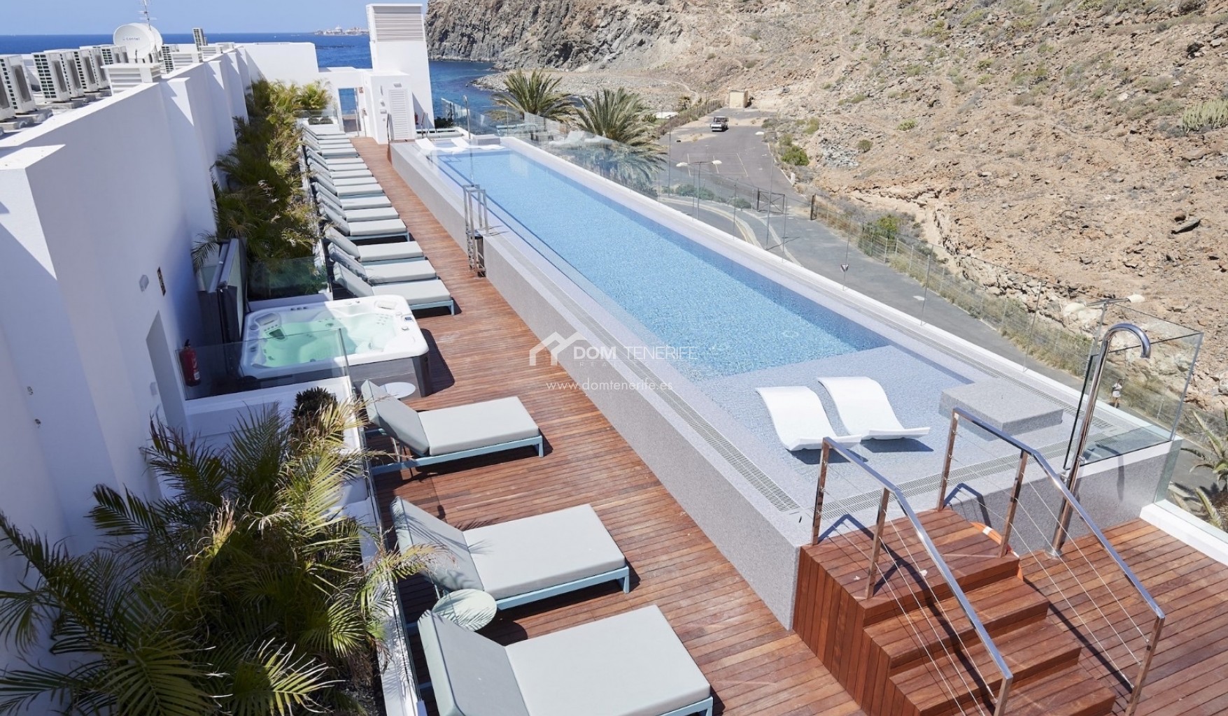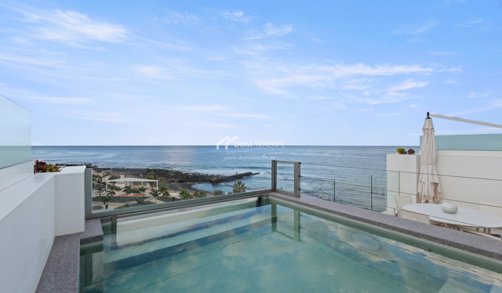 Place de parking privéeÀ vendre un penthouse duplex d’exception en première ligne de mer dans le prestigieux complexe résidentiel Infinity à Palm Mar, considéré comme l’un des biens les plus exclusifs du complexe. Construit en 2020 et situé en première ligne, ce penthouse offre des vues panoramiques spectaculaires sur l’océan Atlantique et l’île de La Gomera, avec des couchers de soleil inoubliables et la possibilité d’apercevoir dauphins et baleines au quotidien. D’une surface construite de 156 m² et disposant de plus de 73 m² de terrasses, la propriété a été conçue pour un art de vivre haut de gamme, alliant élégance architecturale et parfaite continuité entre intérieur et extérieur. Dès l’entrée, la vue sur l’océan impressionne, accompagnée d’un vaste séjour avec cuisine ouverte équipée d’appareils NEFF haut de gamme et de grandes baies vitrées donnant accès à une terrasse de 27 m². Ce niveau comprend également deux grandes chambres en suite avec placards intégrés, dont une avec accès direct à la terrasse et vue mer, des toilettes invités et un espace de rangement avec buanderie. Un escalier intérieur mène à l’étage supérieur, dédié à l’intimité, où se trouve la somptueuse suite parentale avec placards intégrés et accès direct à une seconde terrasse de 46,44 m². Cette terrasse accueille une piscine privée chauffée et une cuisine extérieure entièrement équipée avec électroménagers NEFF, idéale pour se détendre ou recevoir. Le penthouse bénéficie également d’un accès privé au rooftop commun avec piscine chauffée, jacuzzi et salle de sport Technogym. Un garage privé fermé de 24 m² avec espace de rangement est inclus dans le prix. Une opportunité rare pour les acquéreurs recherchant un bien d’exception en bord de mer dans le sud de Tenerife. DOM Tenerife Real Estate – Buy safely.