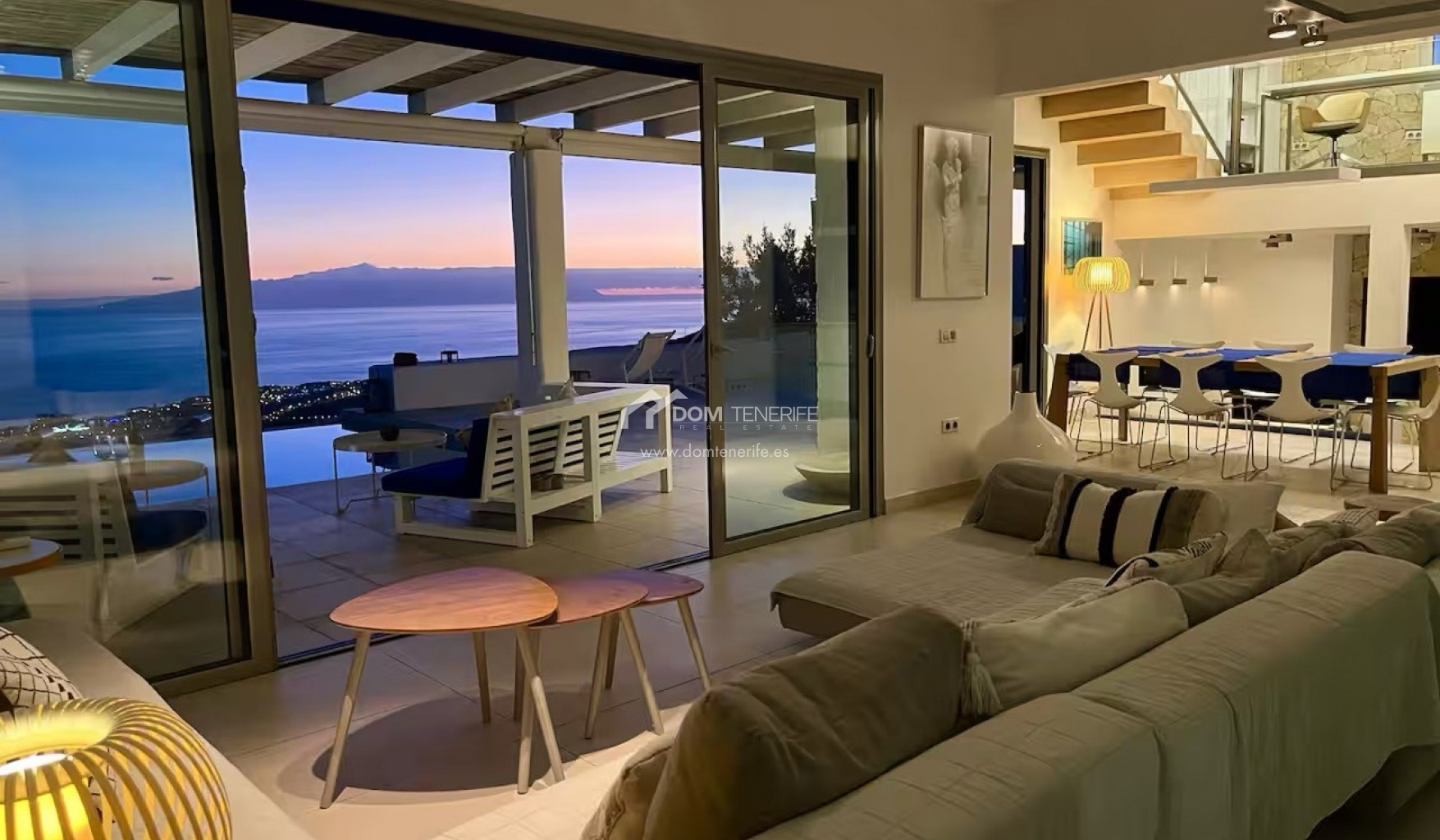 Plaza de aparcamiento privadaEsta magnífica propiedad de arquitectura moderna se asienta sobre una parcela de 759 m² y se distribuye en tres niveles, ofreciendo una superficie construida total de más de 361 m². Diseñada con materiales de alta calidad y amplios ventanales que maximizan la luz natural, esta villa combina elegancia, funcionalidad y confort en un entorno residencial privilegiado del sur de Tenerife. En la planta principal, con una superficie útil de aproximadamente 170 – 175 m², se encuentra un amplio salón-comedor con acceso directo al jardín y la piscina, una sala de TV, un patio interior con olivo central que aporta un toque natural y luminosidad, una cocina moderna totalmente equipada, un baño de cortesía y una zona de lavandería. Dispone además de un dormitorio principal con baño en suite y salida a la piscina, así como de un dormitorio doble convertible en dos estancias independientes, cada una con baño en suite. En el exterior, la propiedad ofrece un jardín cuidadosamente diseñado, piscina privada y aparcamiento para dos vehículos. La planta intermedia alberga un despacho con excelentes vistas, ideal para trabajar desde casa en un entorno tranquilo. En la planta alta, de 60 m², se encuentra una elegante biblioteca y un dormitorio principal adicional con baño en suite, todo ello con acabados de gran nivel y acceso a una terraza con vistas parciales al mar. El sótano, de 202 m², cuenta con dos amplios salones polivalentes, un gimnasio totalmente equipado, dos baños, un dormitorio adicional y una terraza exterior con vistas al océano, ideal para disfrutar de la privacidad y el clima excepcional de Tenerife. Esta propiedad representa una oportunidad única para quienes buscan una residencia de lujo con amplios espacios, diseño contemporáneo y una ubicación privilegiada en Costa Adeje, una de las zonas más exclusivas del sur de la isla.
