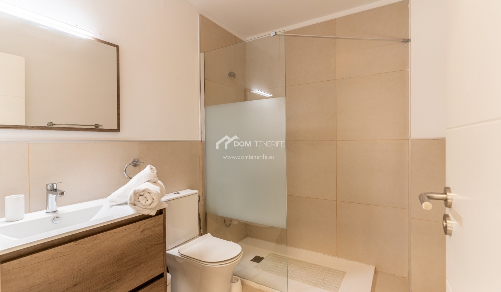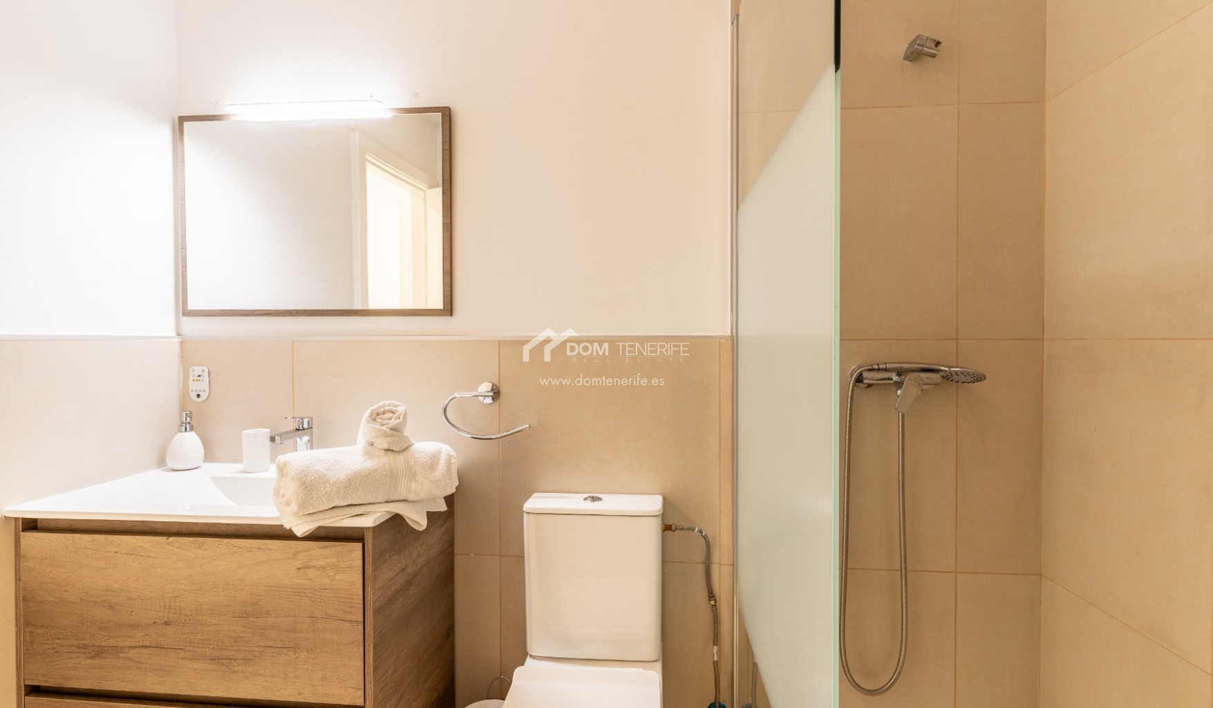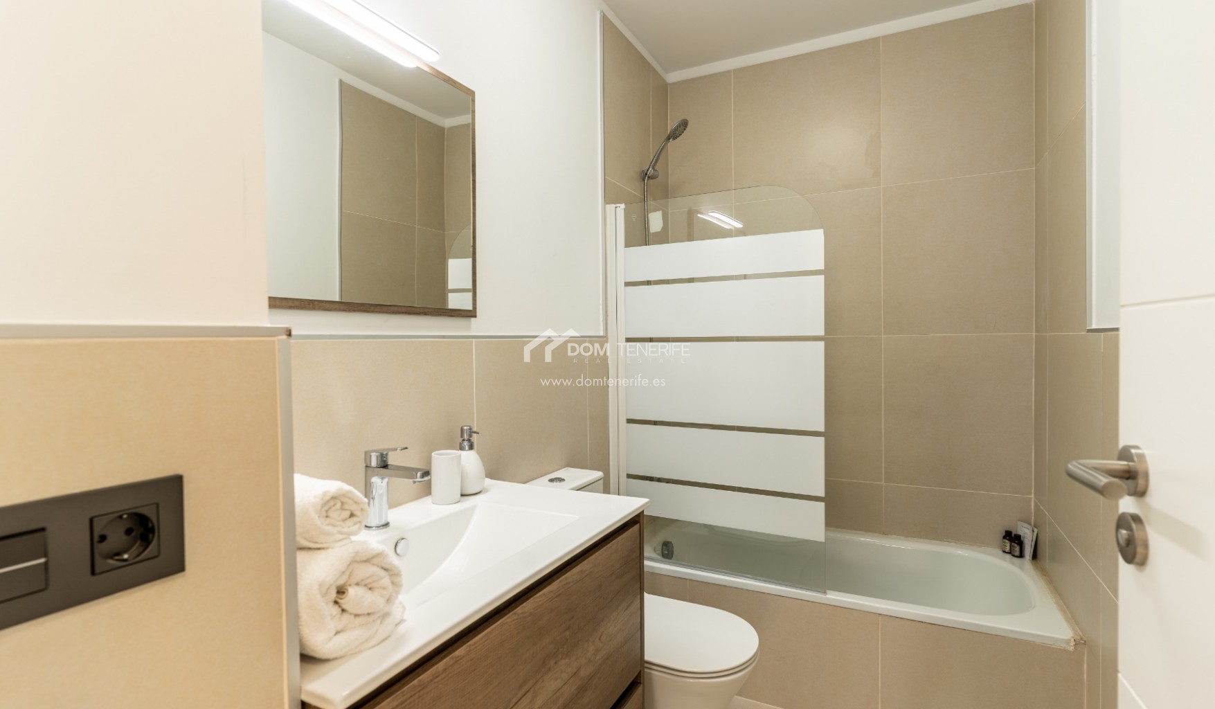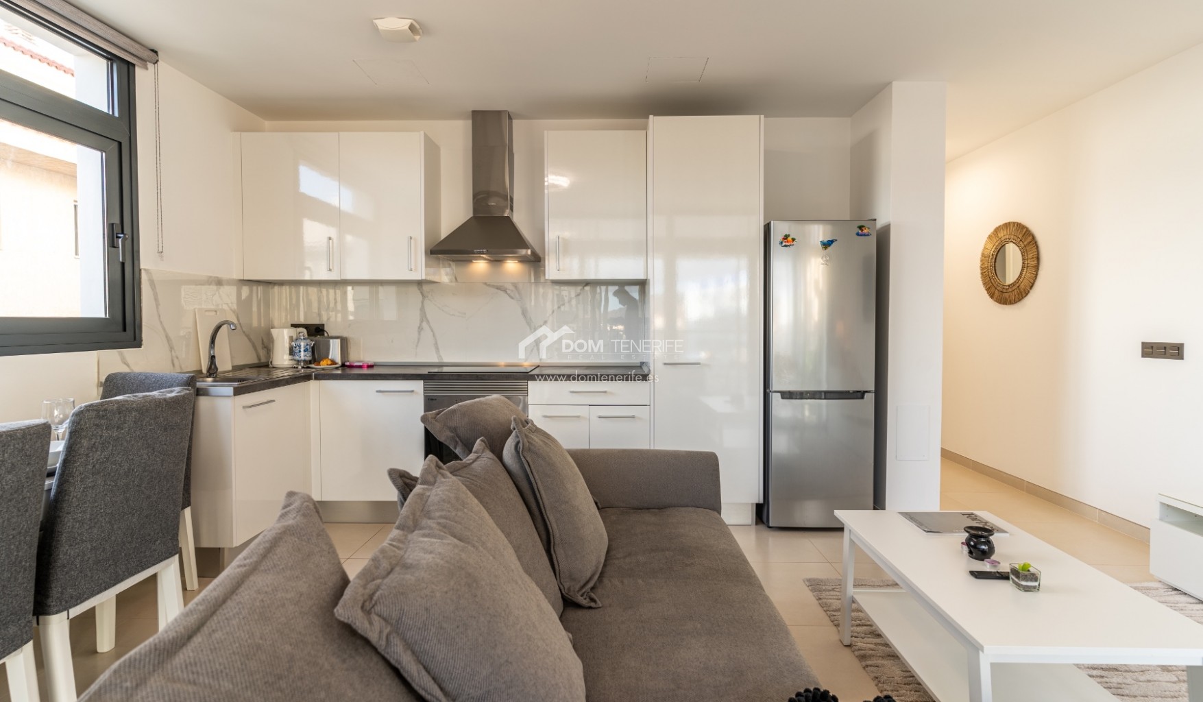 Parking comunitarioSe vende este elegante apartamento de 71 m², ubicado en el moderno residencial “The Korner”, una excelente oportunidad en pleno corazón de Adeje. El edificio es de construcción reciente y ofrece magníficas instalaciones, como piscina comunitaria, ascensor y una azotea común distribuida en cuartos de lavado privados para cada vivienda. El apartamento ha sido completamente reformado y se entrega totalmente amueblado y equipado, con ventiladores en todas las estancias, persianas eléctricas y armarios empotrados. La vivienda dispone de dos dormitorios amplios, dos baños completos y un salón luminoso diseñado para ofrecer confort y funcionalidad. La terraza privada con vistas al océano y a la montaña aporta un ambiente tranquilo en una de las zonas más demandadas del sur de Tenerife. Su ubicación es inmejorable, con supermercados, tiendas, cafeterías y restaurantes a pocos pasos, y a solo 10 minutos en coche de las playas de Costa Adeje. Próximo también al centro deportivo El Galeón Nex Sport Club, resulta ideal para quienes buscan servicios y actividades de calidad. En el precio se incluye una plaza de garaje y un trastero, un valor añadido muy apreciado en esta zona. La vivienda cuenta además con una licencia de vivienda vacacional en vigor y con permiso expreso para su explotación según los estatutos de la comunidad. Con excelentes conexiones a la autopista sur, esta propiedad combina modernidad, comodidad y una ubicación estratégica, presentándose como una opción ideal tanto para residencia habitual como para inversión. DOM Tenerife – compre con seguridad.