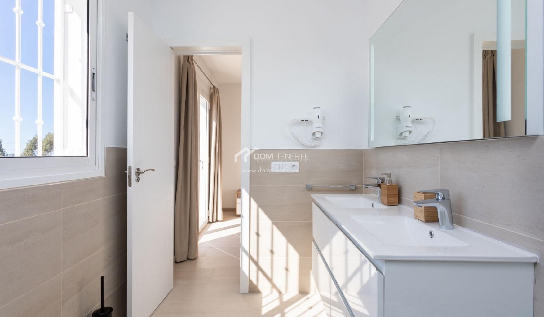Частный гаражDOM Tenerife представляет высококлассную виллу, расположенную в престижном районе El Madroñal — это исключительная недвижимость, предлагающая высокий уровень жизни и превосходный инвестиционный потенциал. Дом выделяется просторной планировкой, приватными открытыми зонами, видом на море и уникальной близостью к лучшим удобствам, международным школам, торговым центрам и популярным пляжам острова. Эта роскошная вилла включает четыре просторные спальни и четыре современных ванных комнаты, обеспечивая идеальное распределение пространства для семейного проживания, отдыха или высокорентабельной аренды. На главном этаже располагается светлый и гостеприимный входной холл, ведущий в большую отдельную кухню с прямым выходом на террасу позади дома и к частному бассейну — идеальному месту для обедов на свежем воздухе, отдыха и круглогодичного наслаждения климатом Тенерифе. Гостиная открывается на большую террасу с крытым портиком и приятным видом на море, подчеркивая премиальный характер недвижимости. На верхнем этаже находятся три уютные спальни, включая элегантную главную спальню с собственной ванной комнатой, и каждая из них имеет свою приватную террасу. Одна из террас предлагает захватывающий панорамный вид на Атлантический океан и соседний остров Ла Гомера, добавляя дому эксклюзивности. Особым преимуществом является полностью оборудованная студия с отдельным входом, идеально подходящая для гостей, родственников или получения дополнительного арендного дохода. На нижнем уровне расположен просторный гараж на два автомобиля с прямым доступом в дом, обеспечивающий комфорт и безопасность. Благодаря своему исключительному расположению, частному бассейну, многочисленным террасам, видам на море и универсальным жилым зонам, эта вилла представляет собой первоклассную возможность на рынке недвижимости Тенерифе. Сочетание роскошных характеристик, высокого арендного потенциала и выгодной локации делает её идеальным выбором для покупателей или инвесторов, ищущих качественную недвижимость на юге Тенерифе.